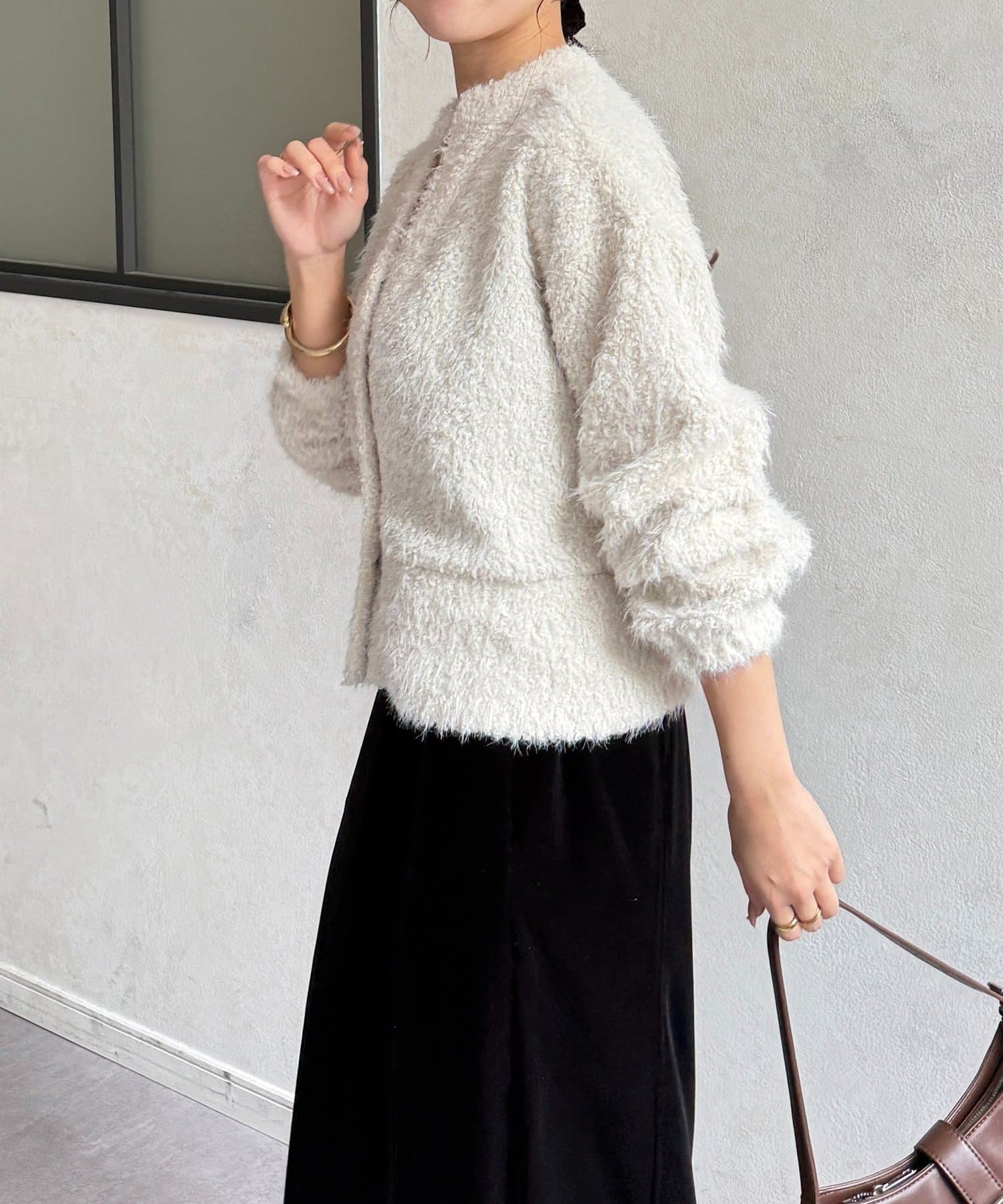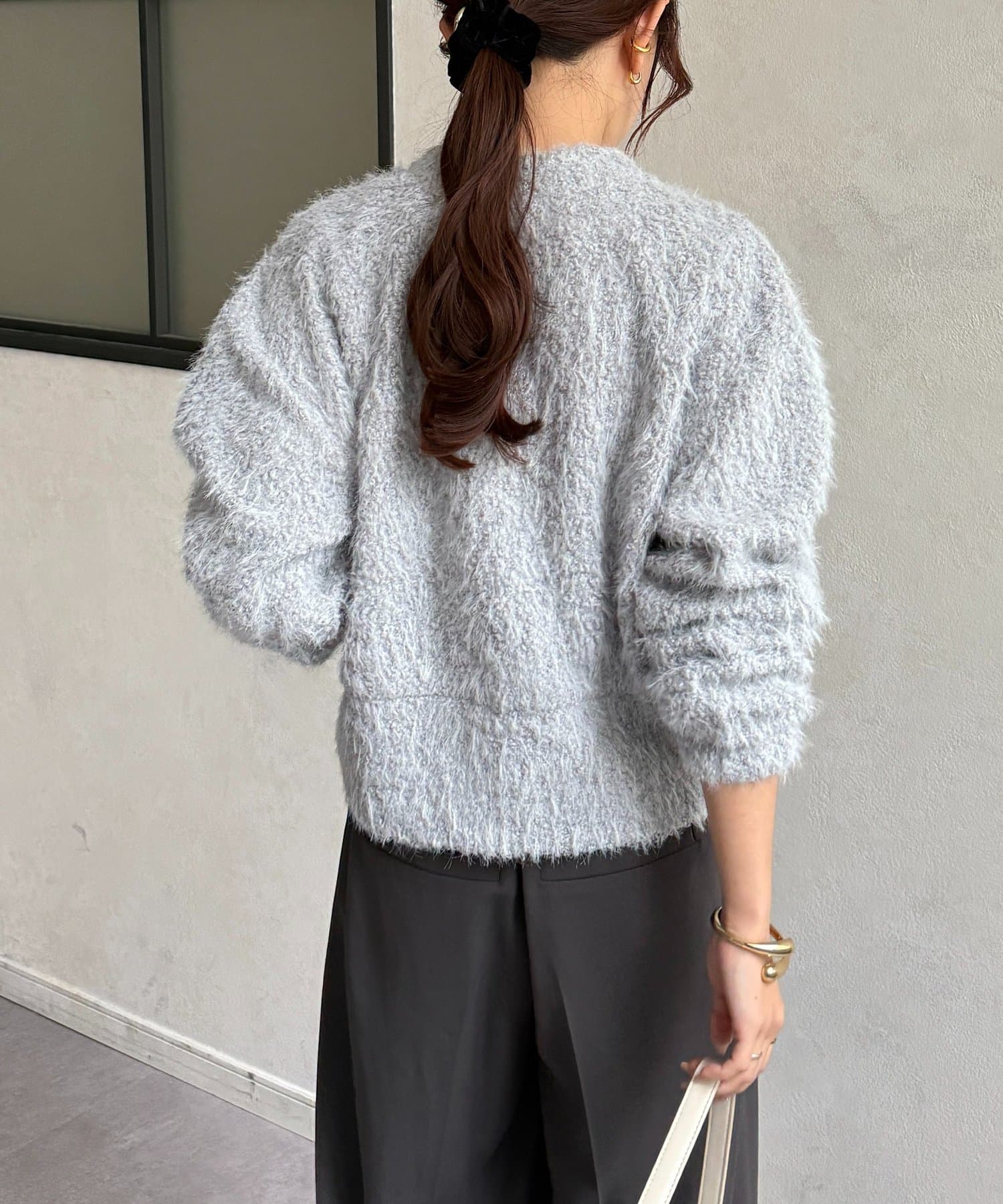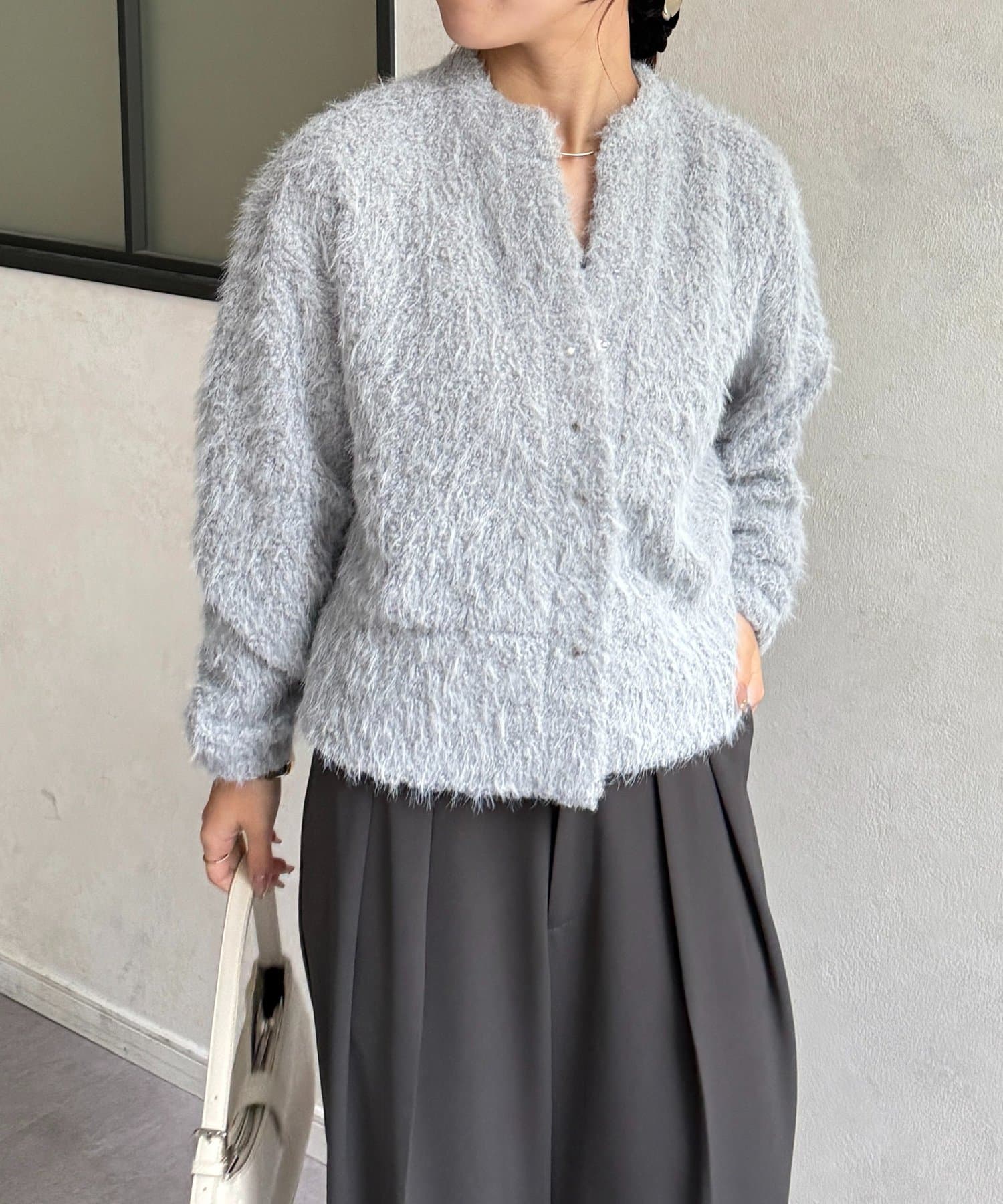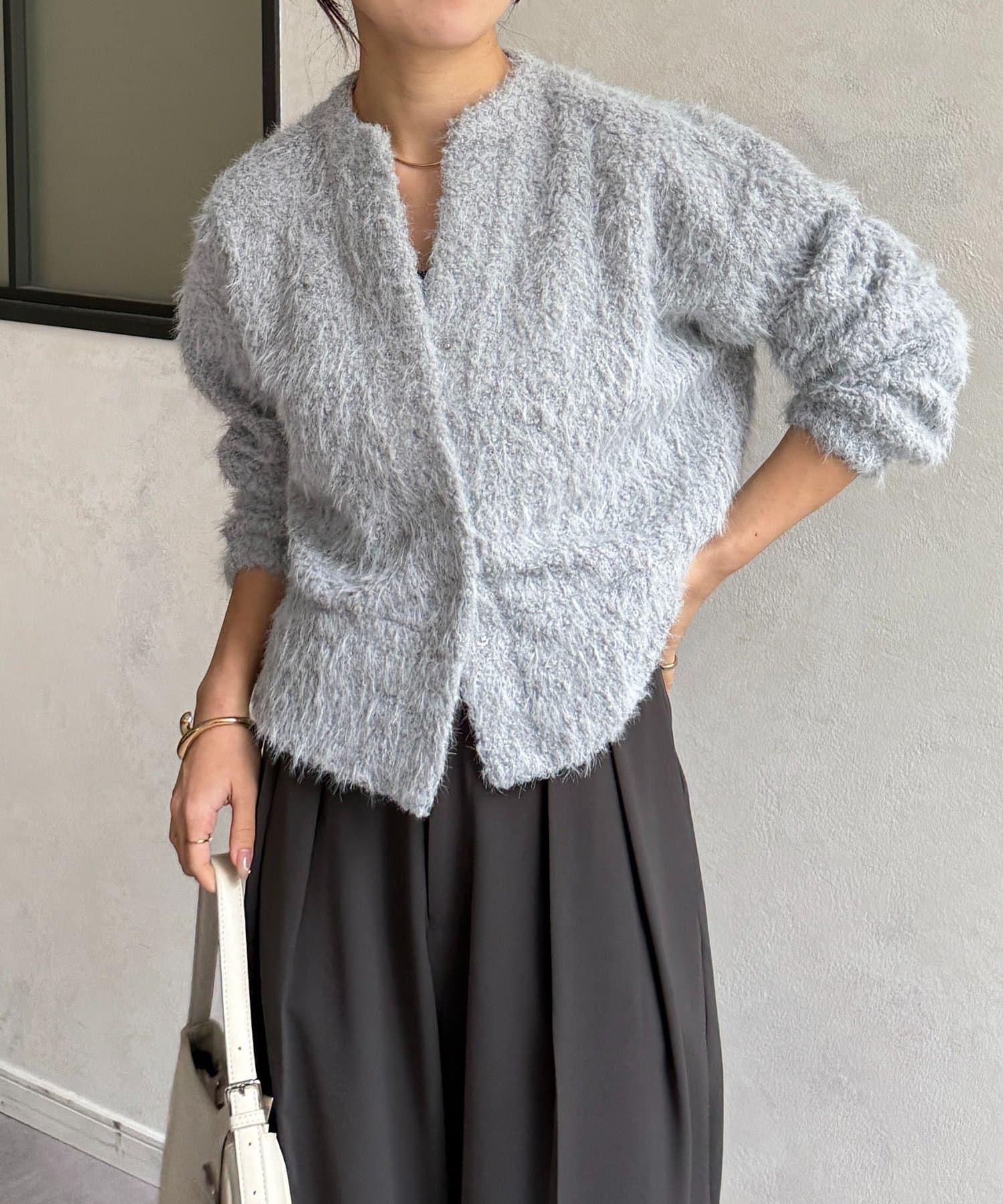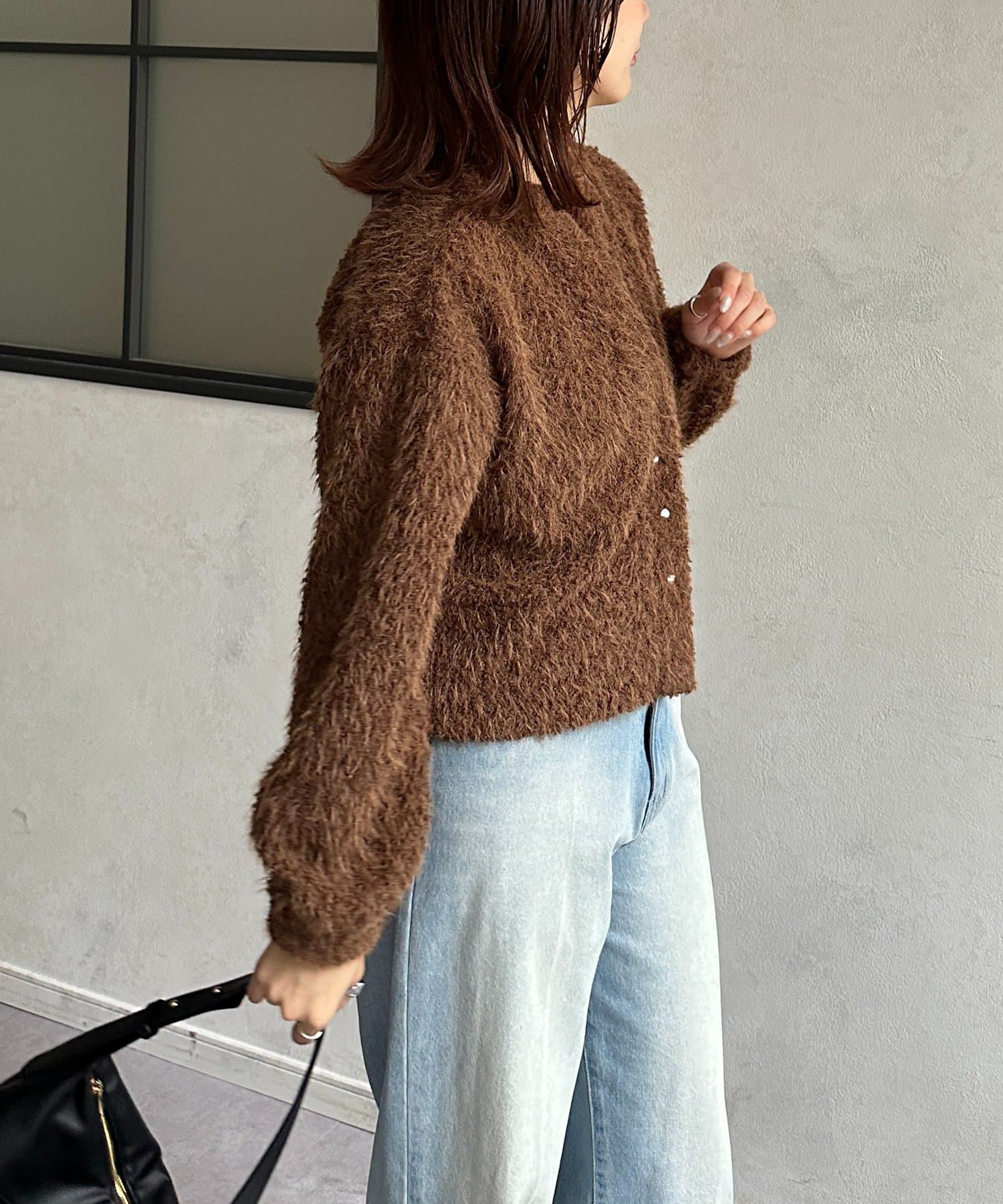 抜け感をプラスする華奢見えシャギーカーディガン