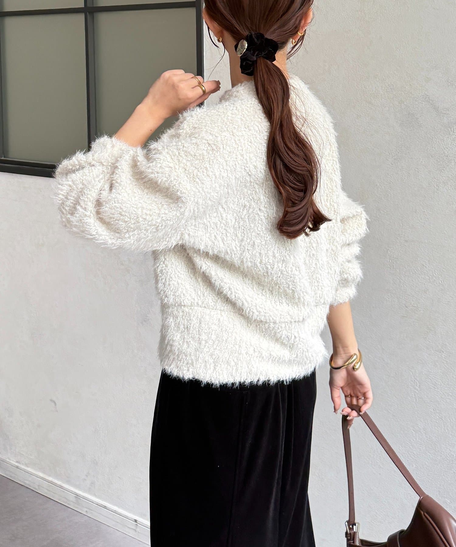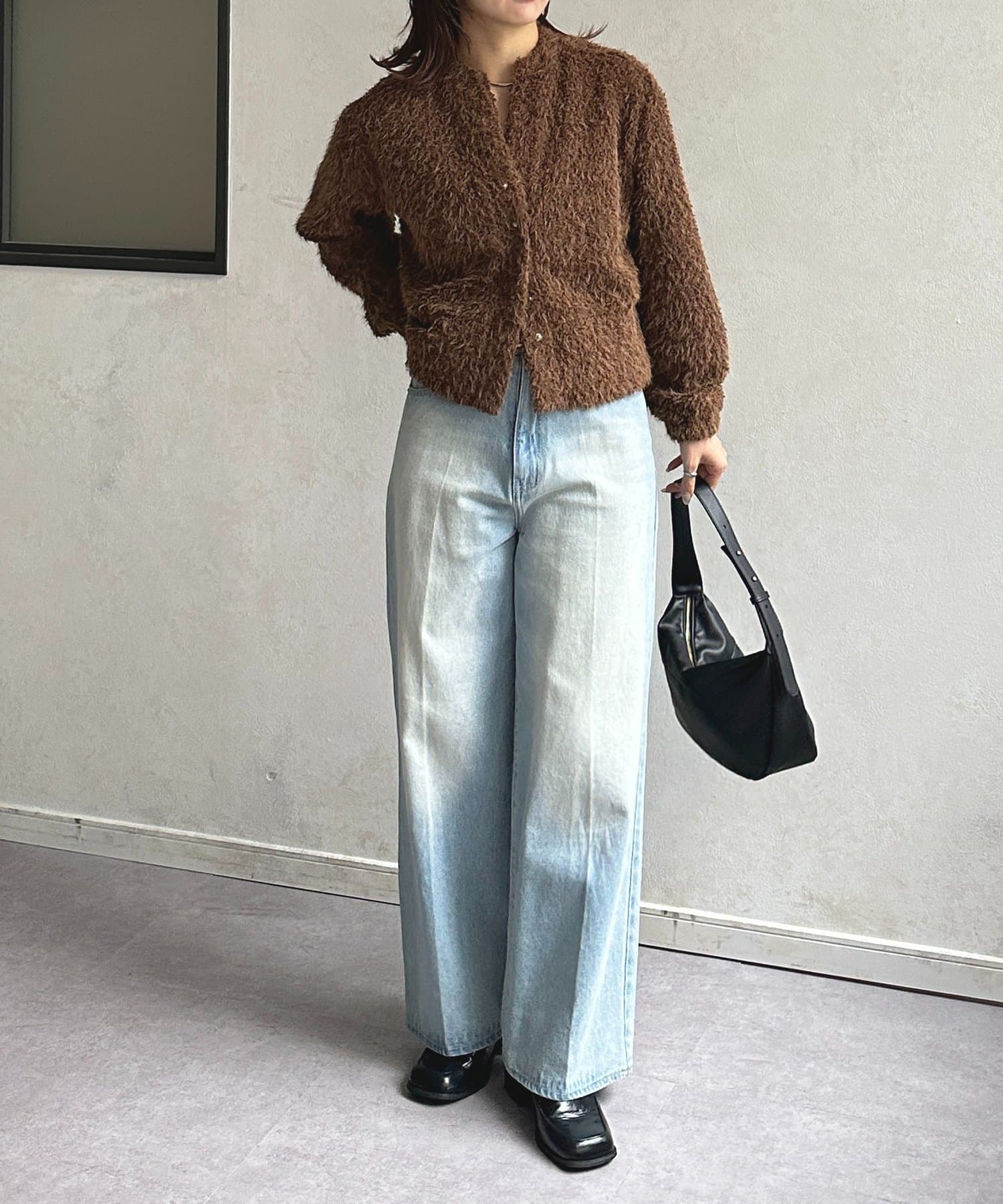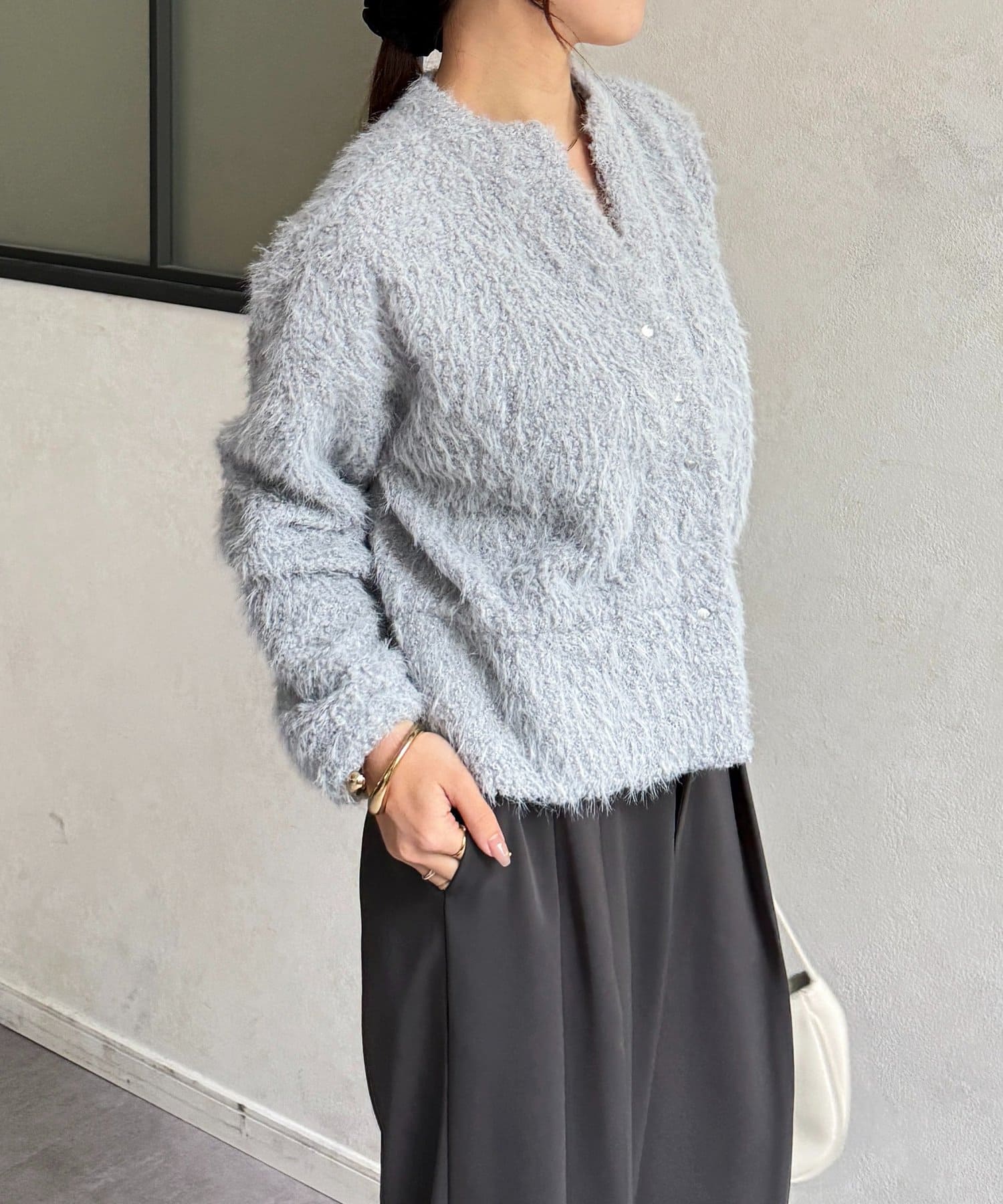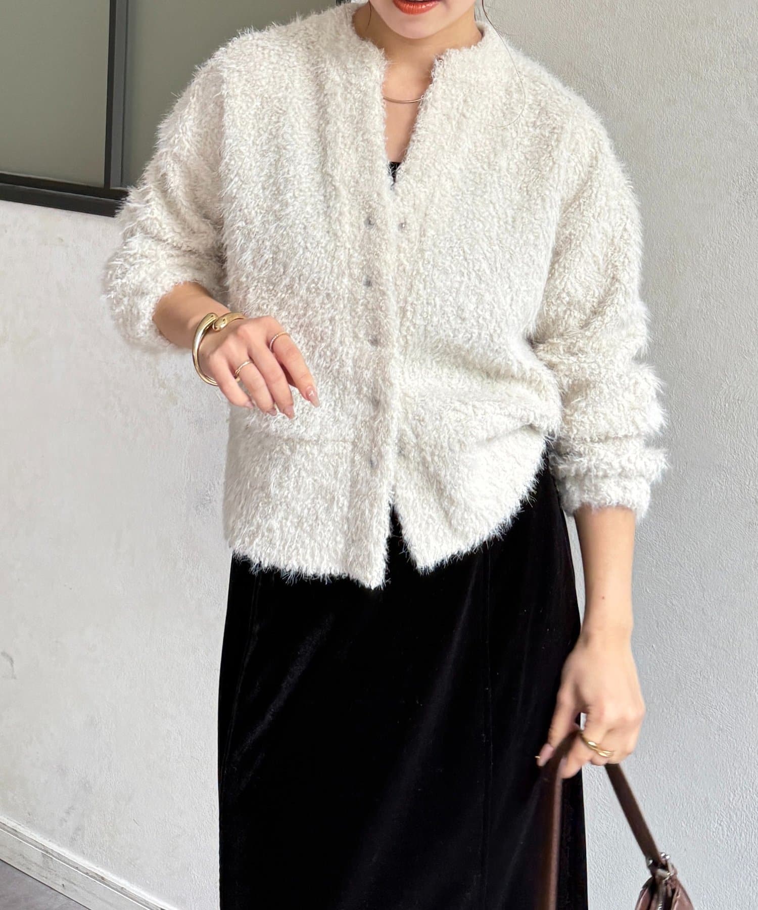 抜け感をプラスする華奢見えシャギーカーディガン
