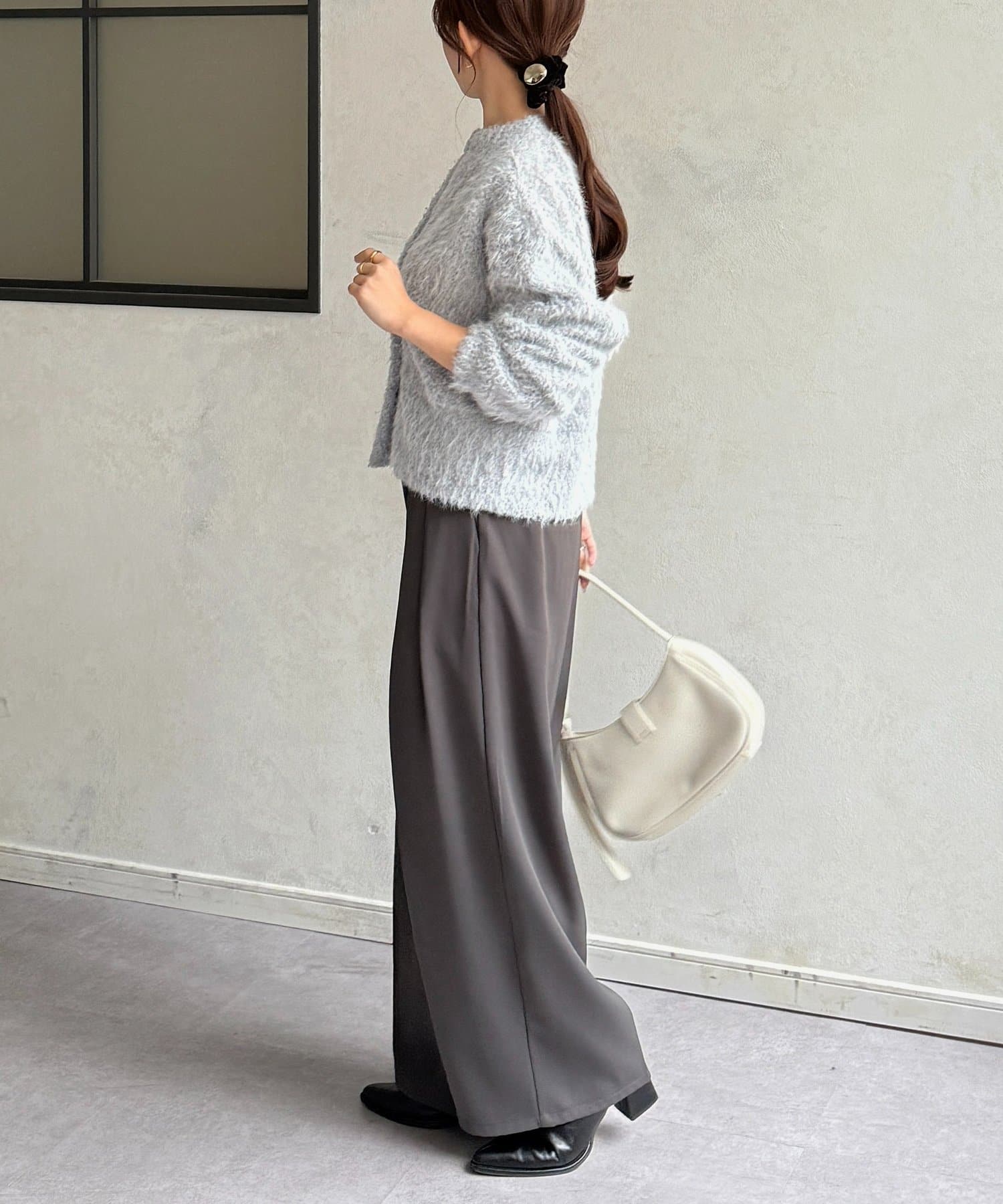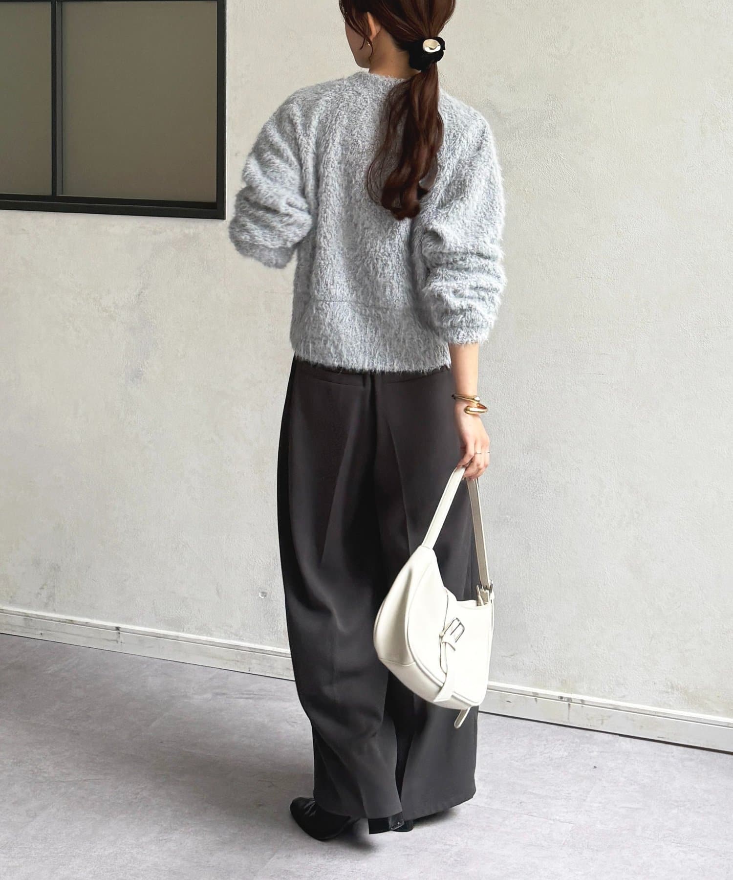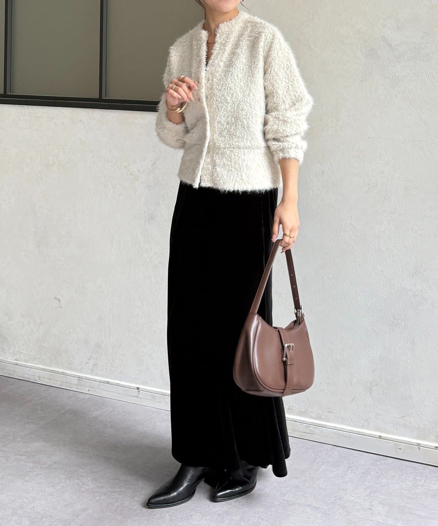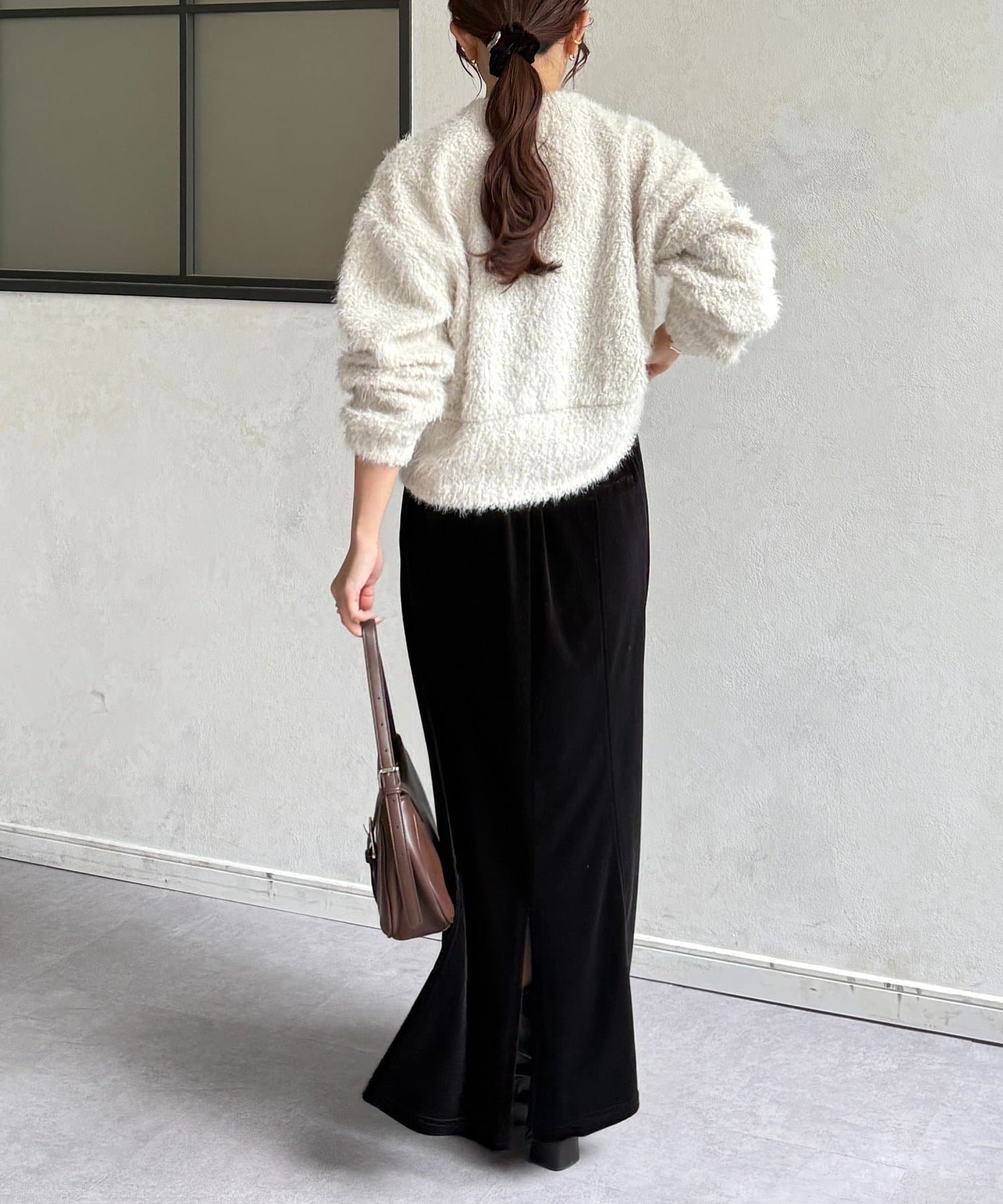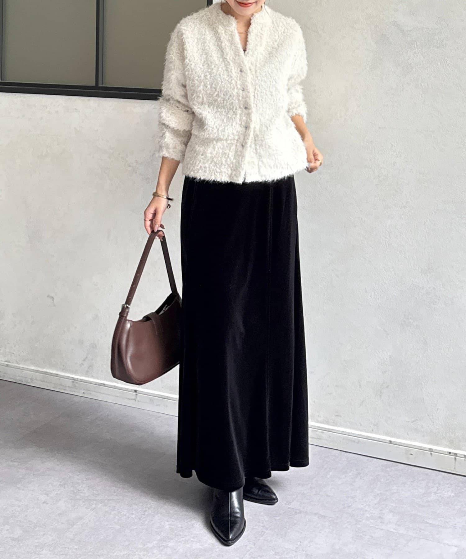 抜け感をプラスする華奢見えシャギーカーディガン