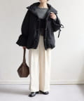 ・ゆとりのあるサイズ感なので、トップスはニットやスウェットが