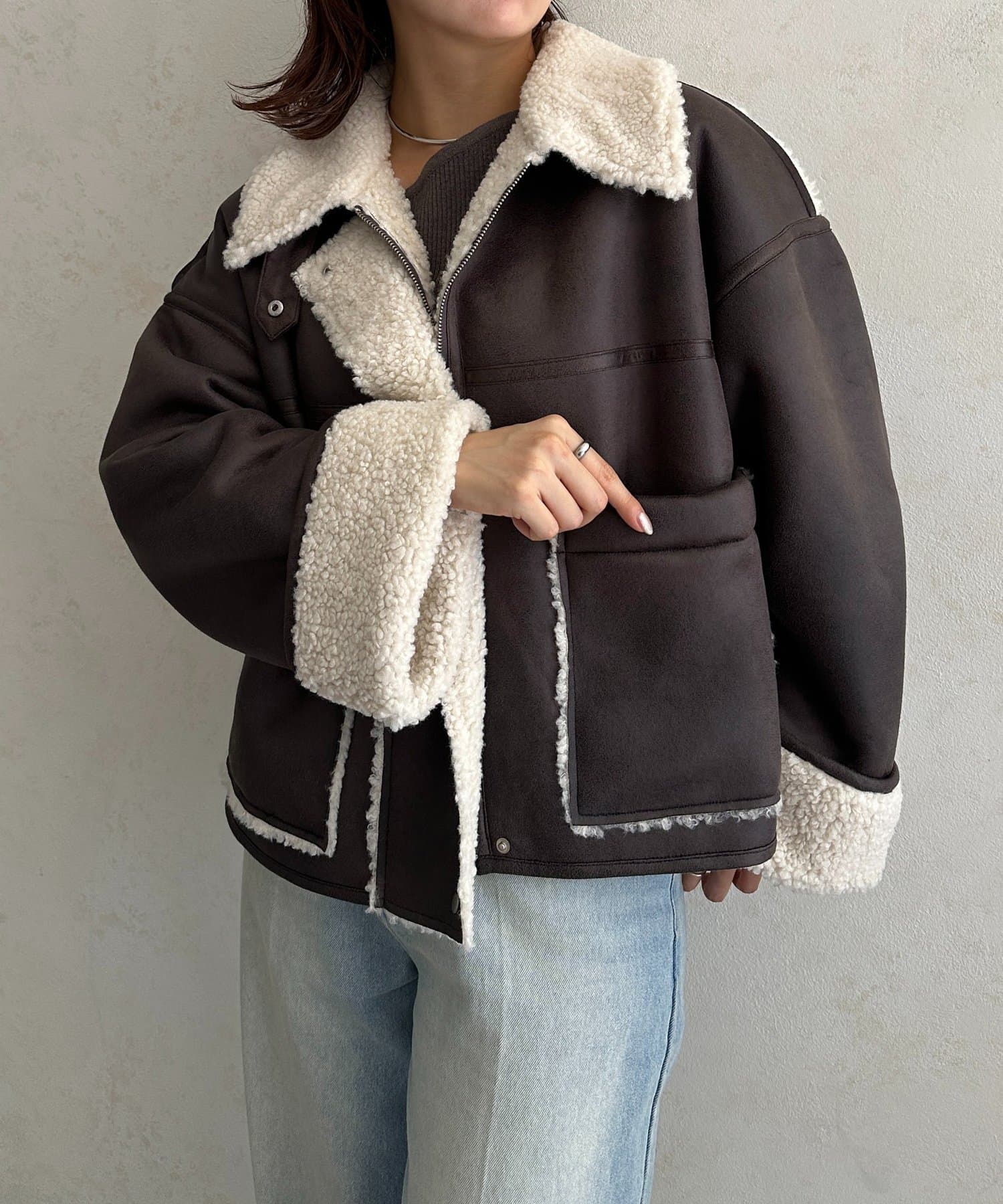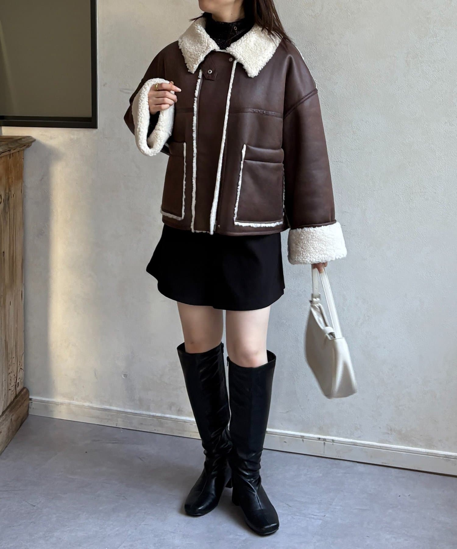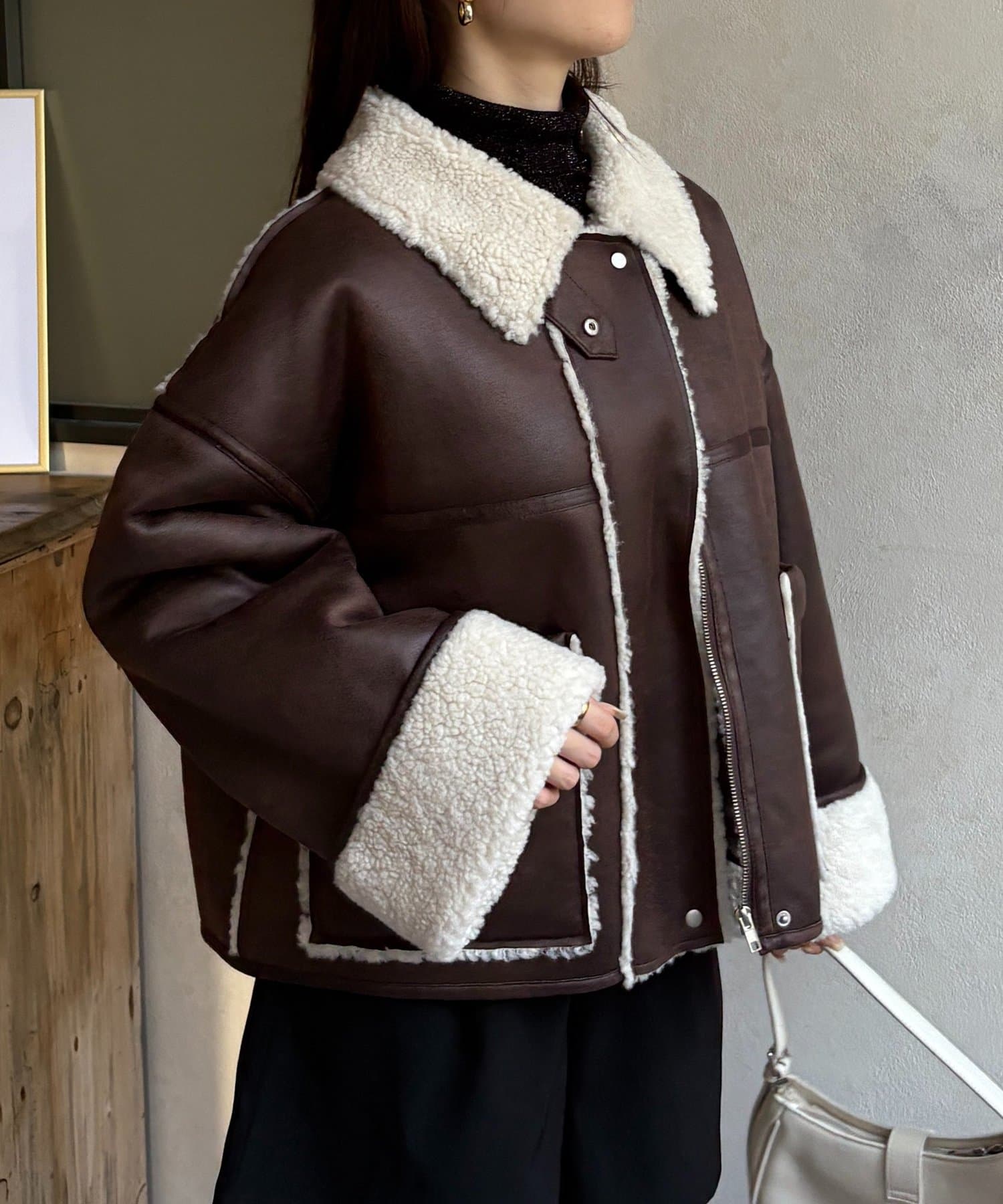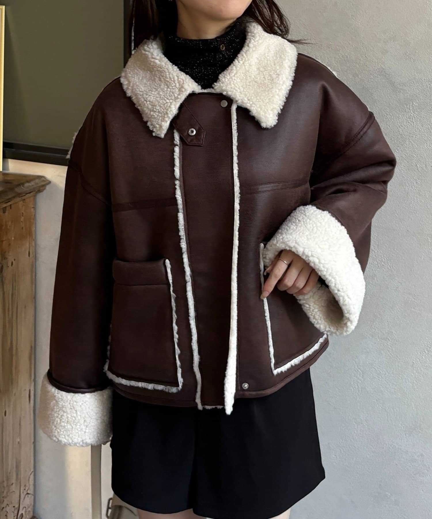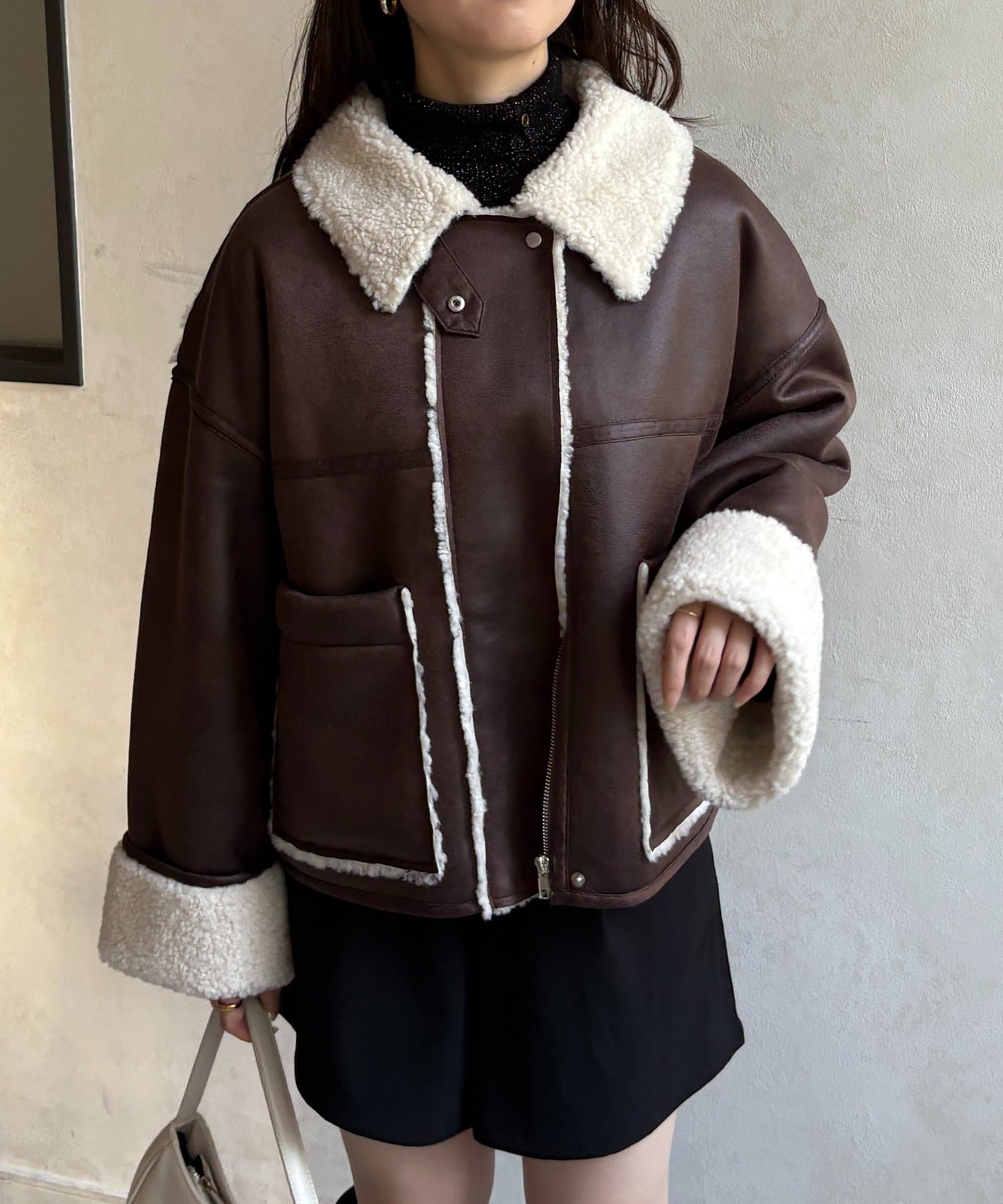 Fムートンショートブルゾン