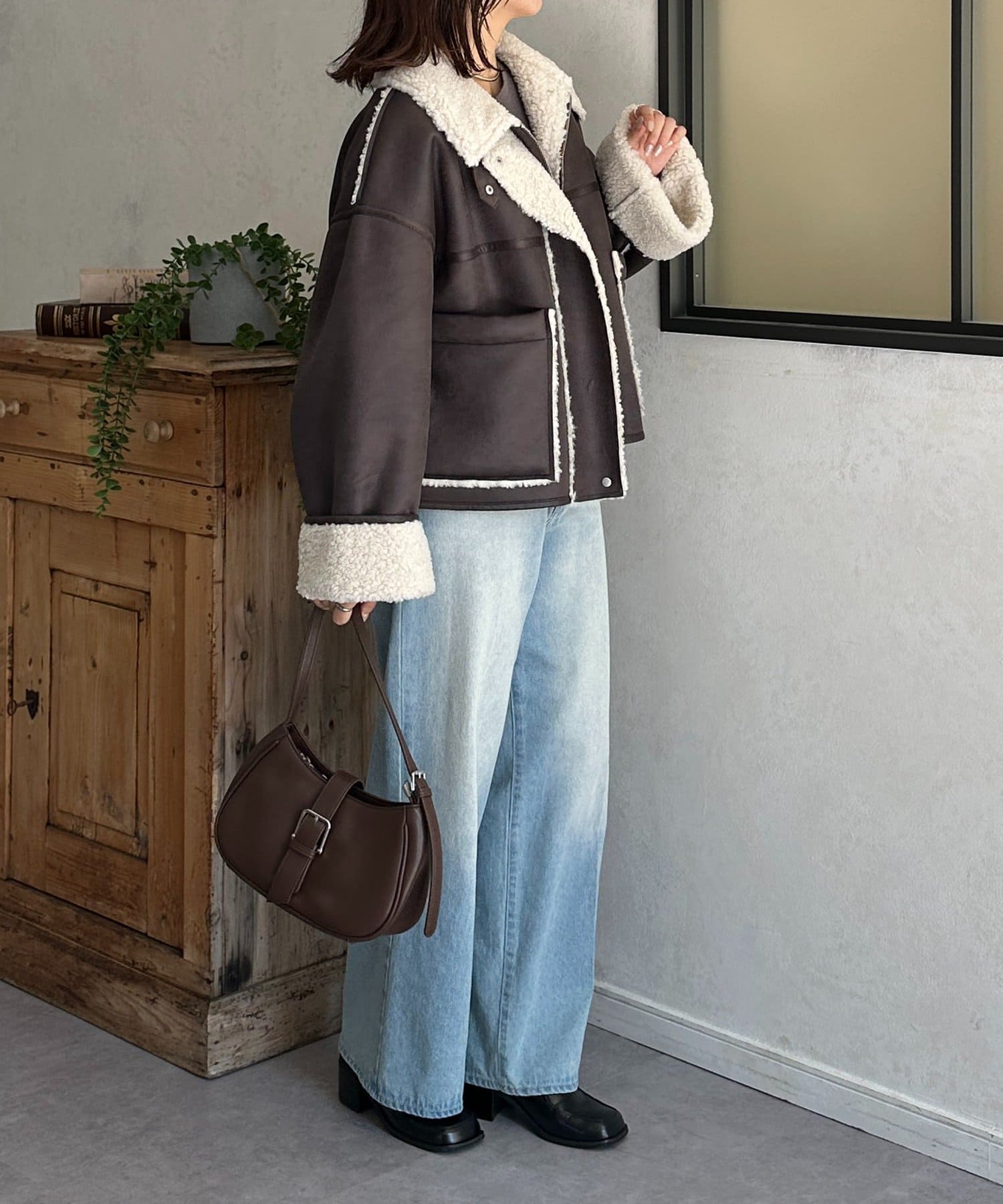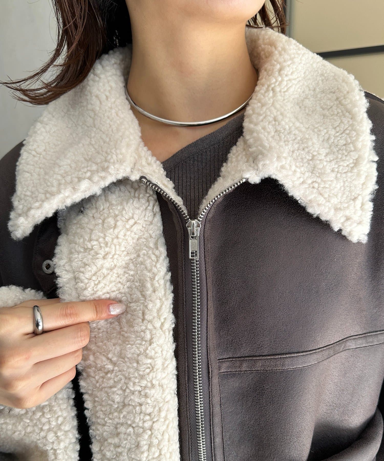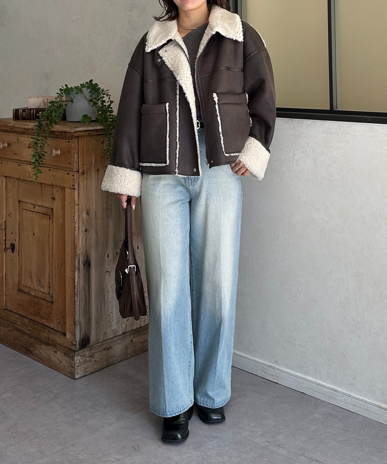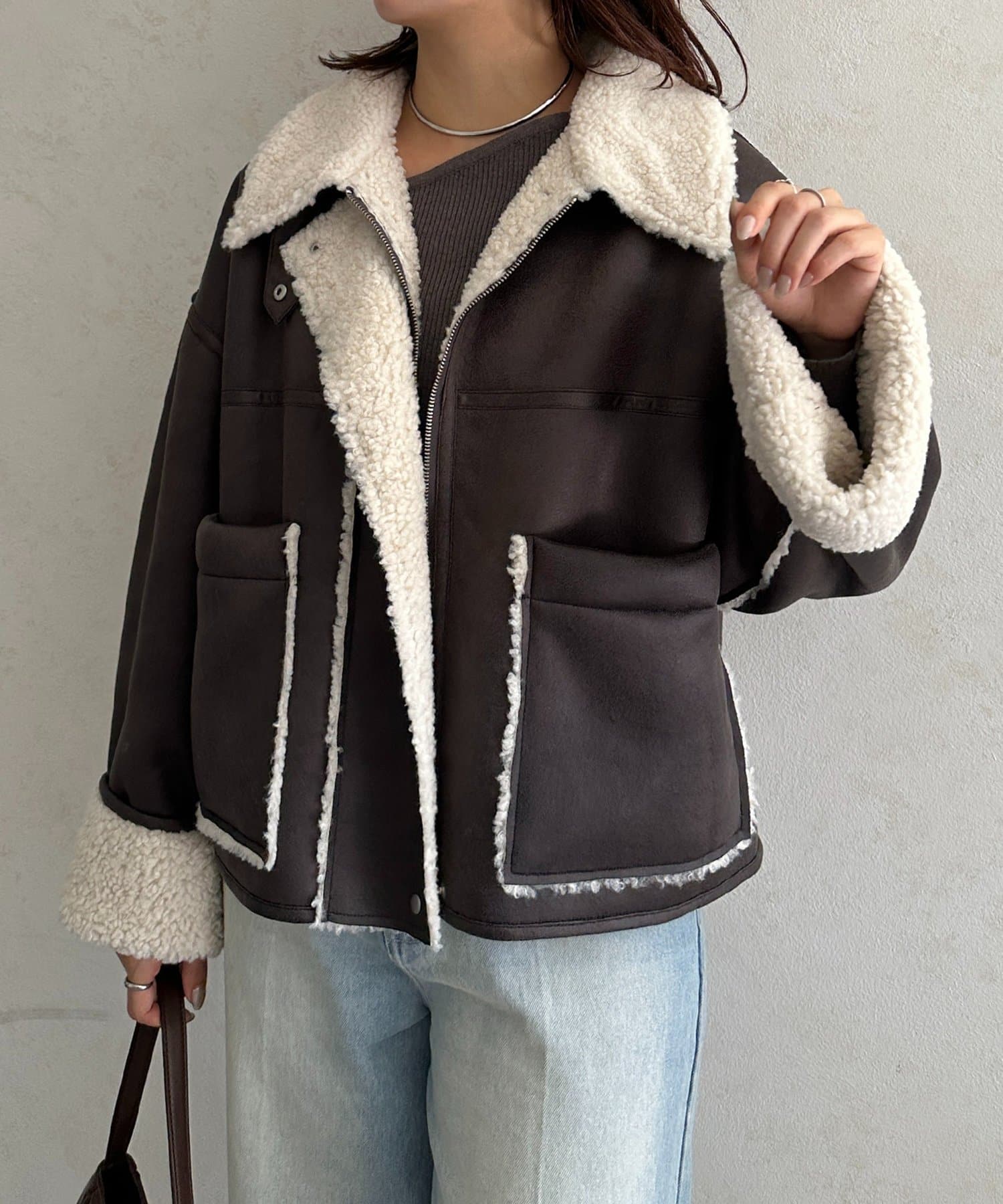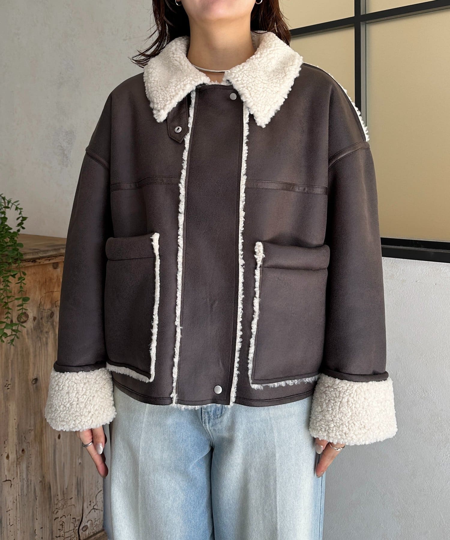 Fムートンショートブルゾン
