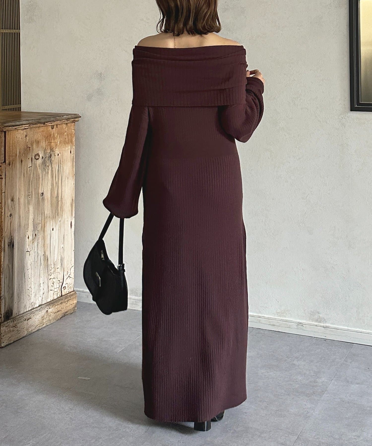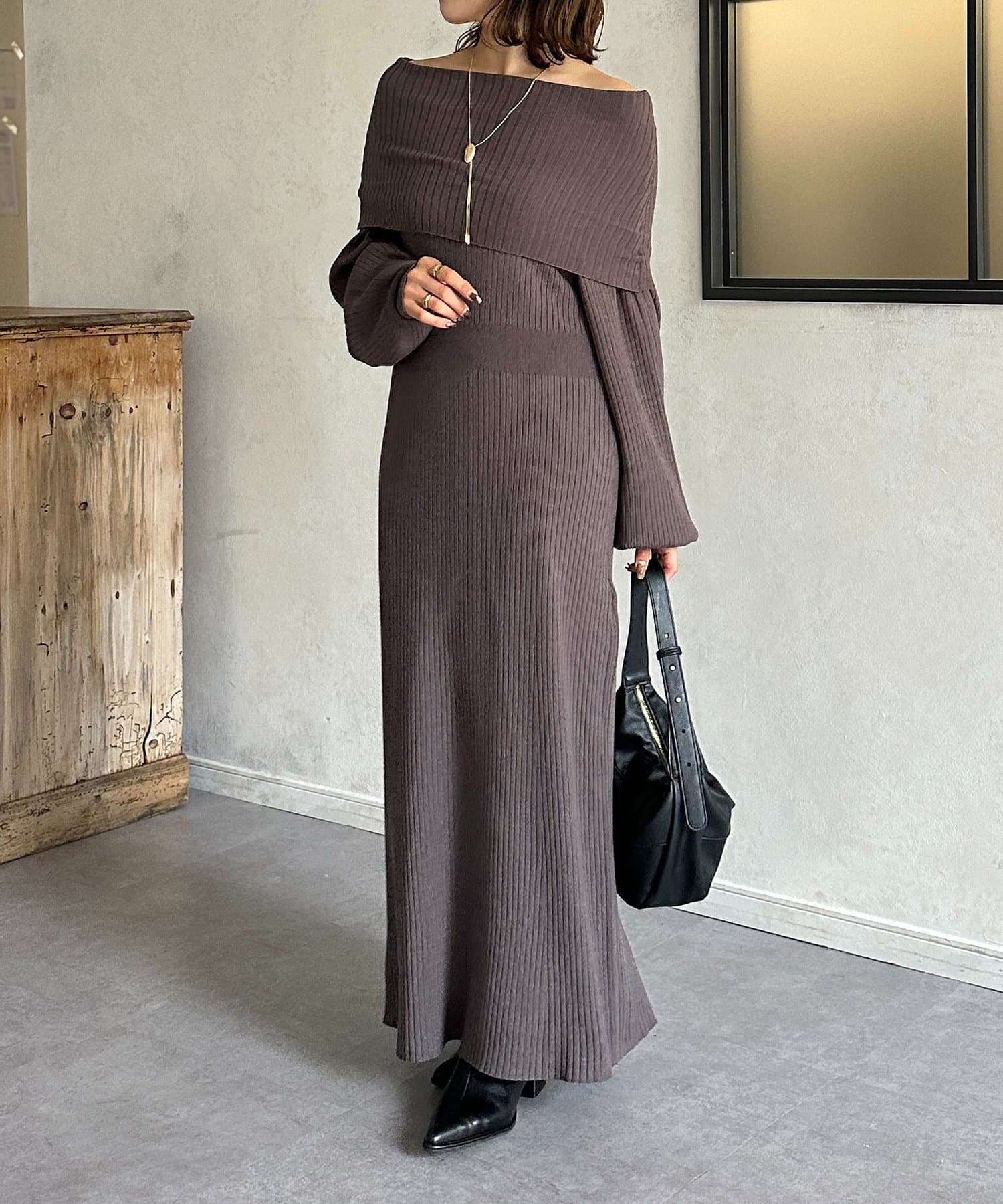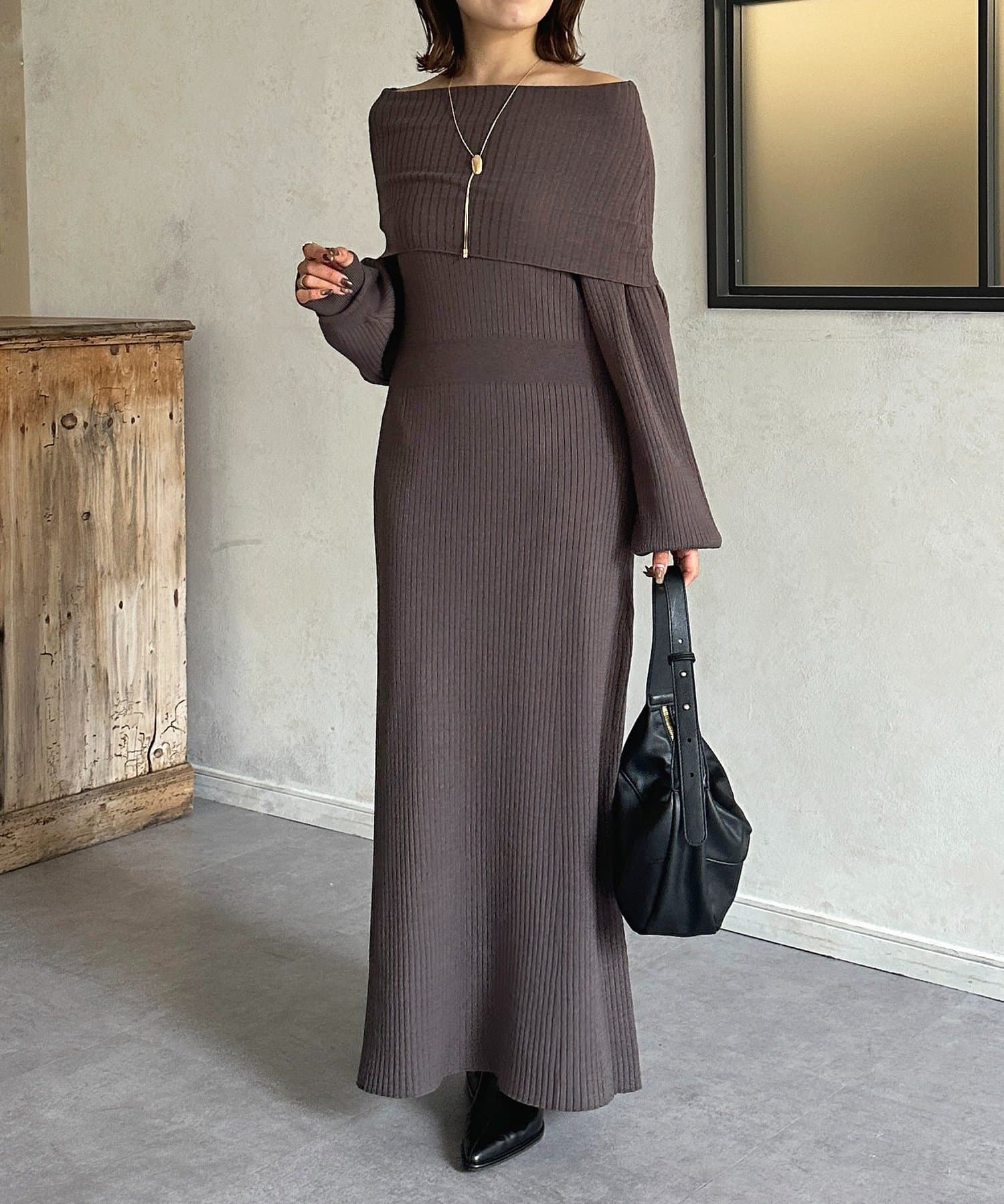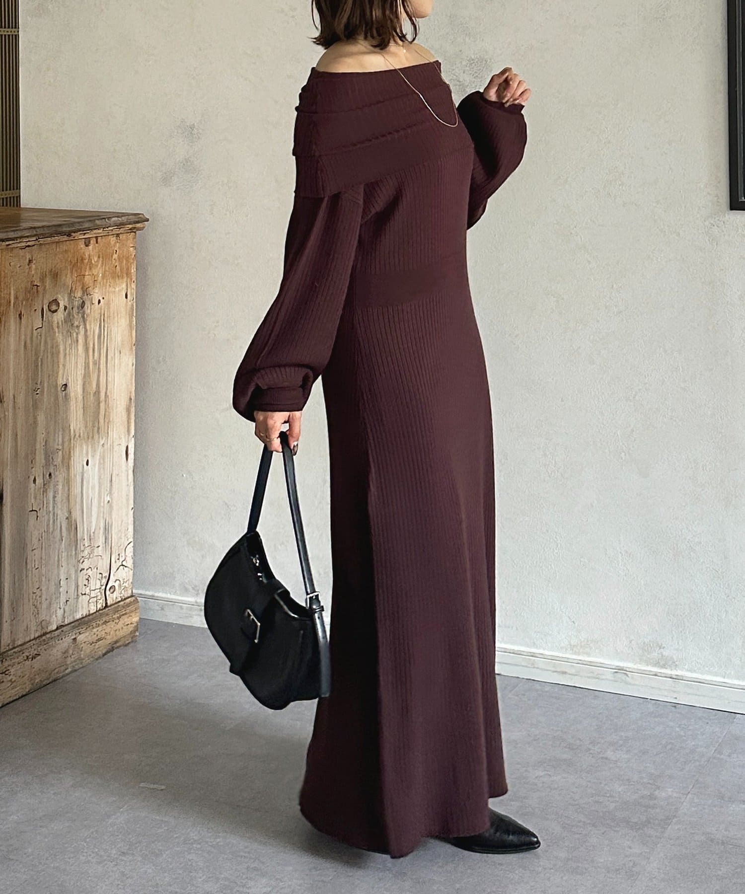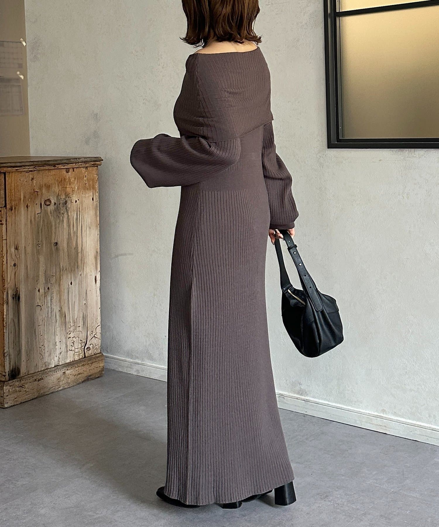 ・ざっくりニットカーディガンを羽織って、カジュアルダウン。