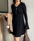 Thevon.(ゼヴォン) 袖フレアリブニットチュニックワンピース