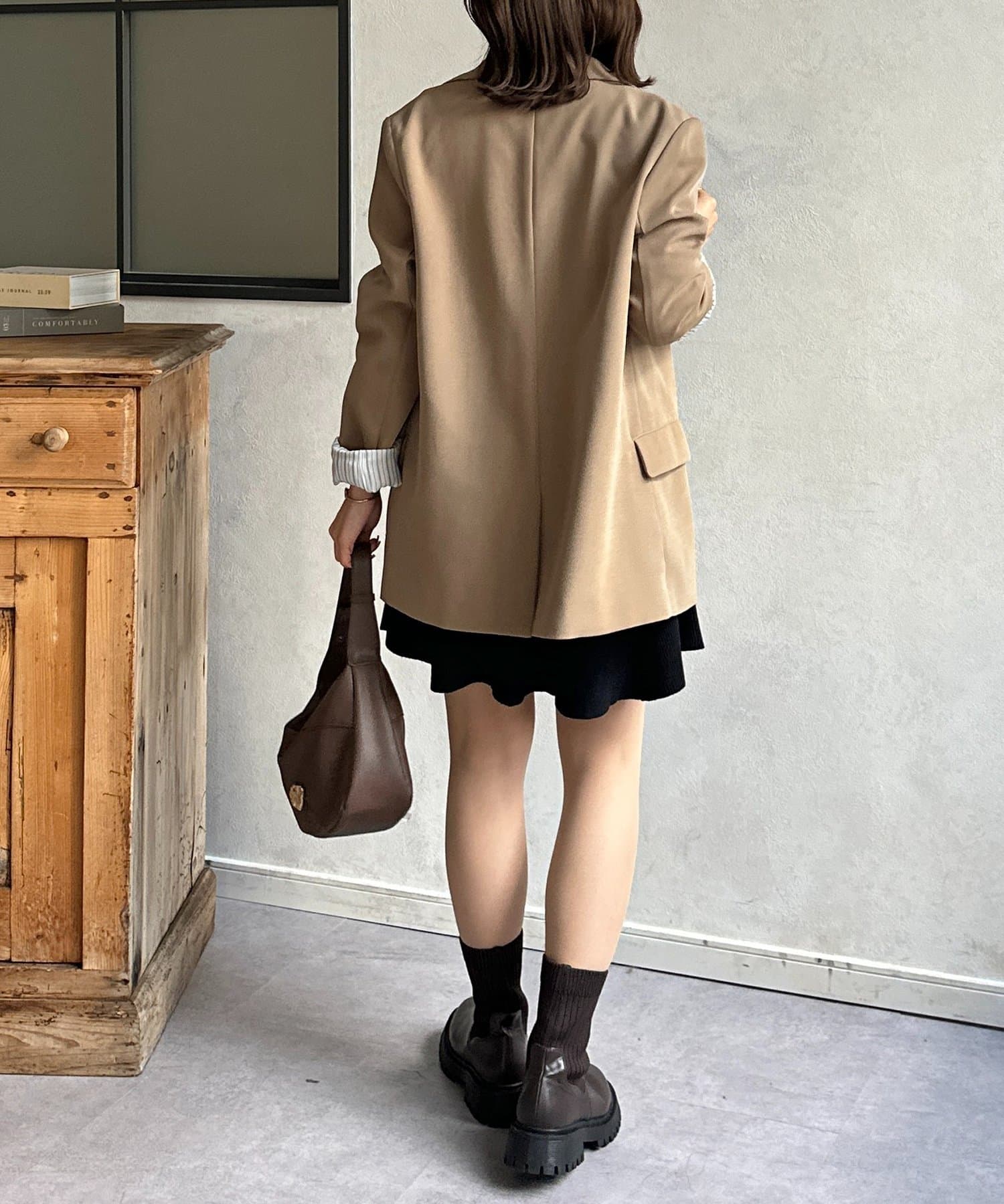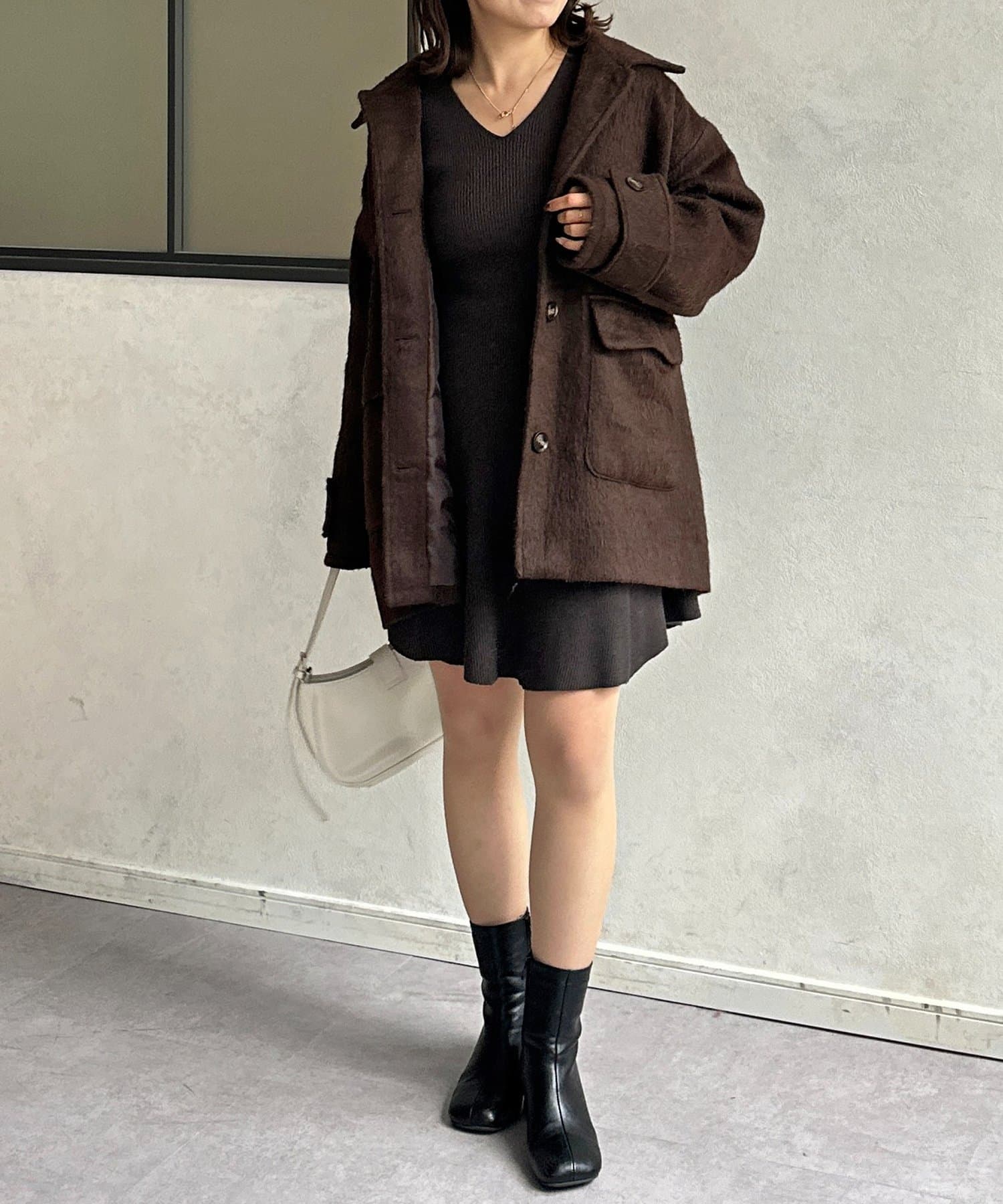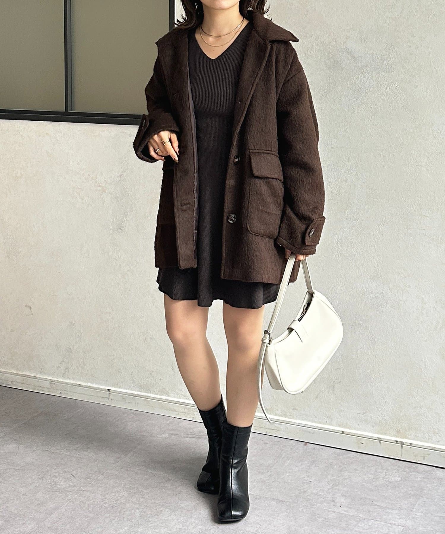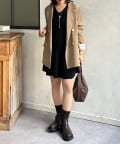足元はブーツで大人っぽくまとめて季節感ある着こなしにも。