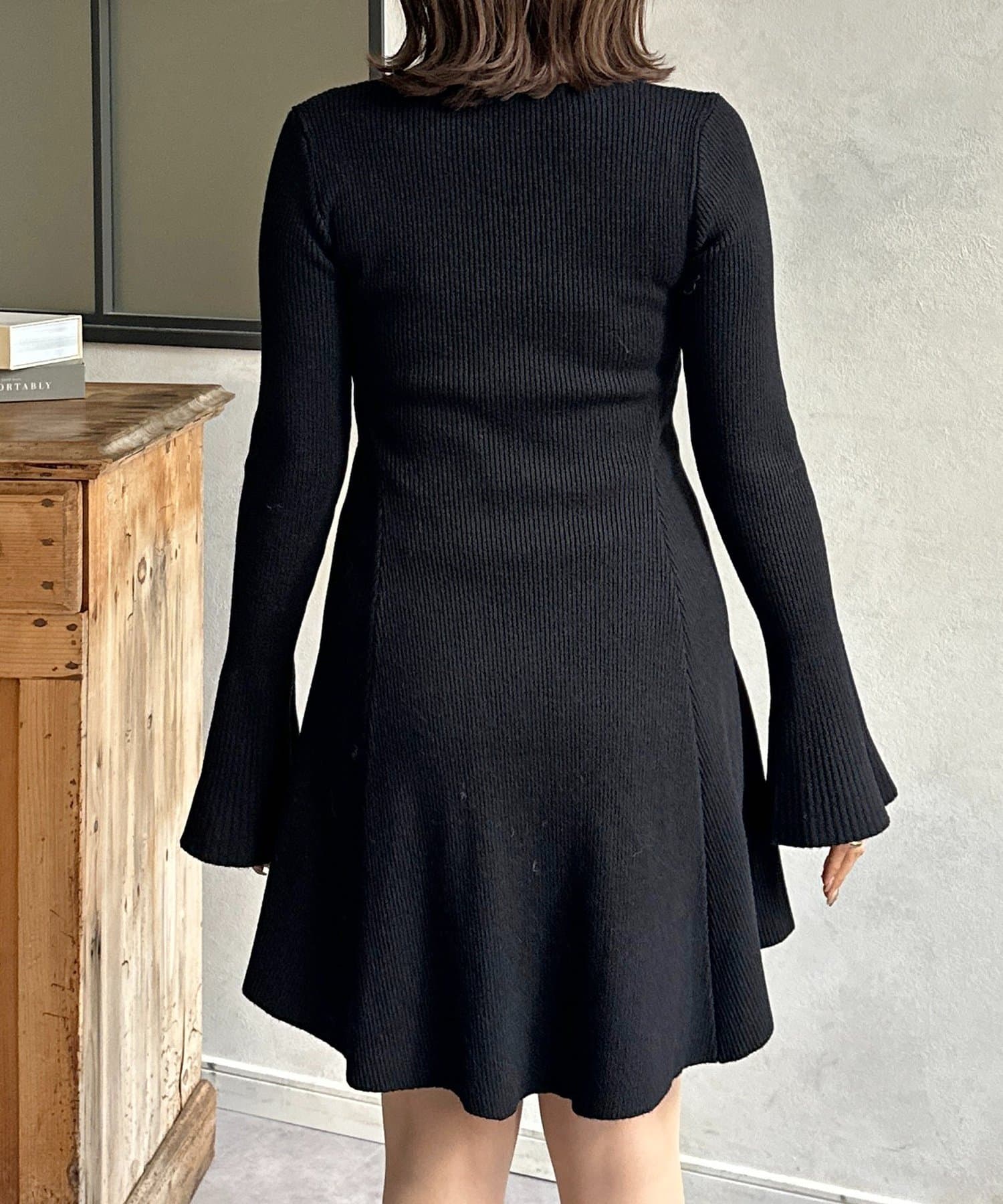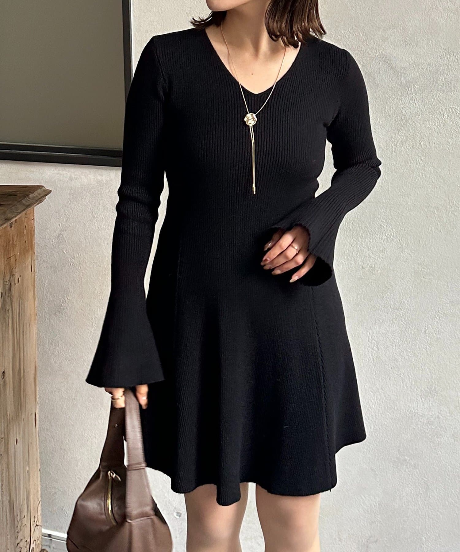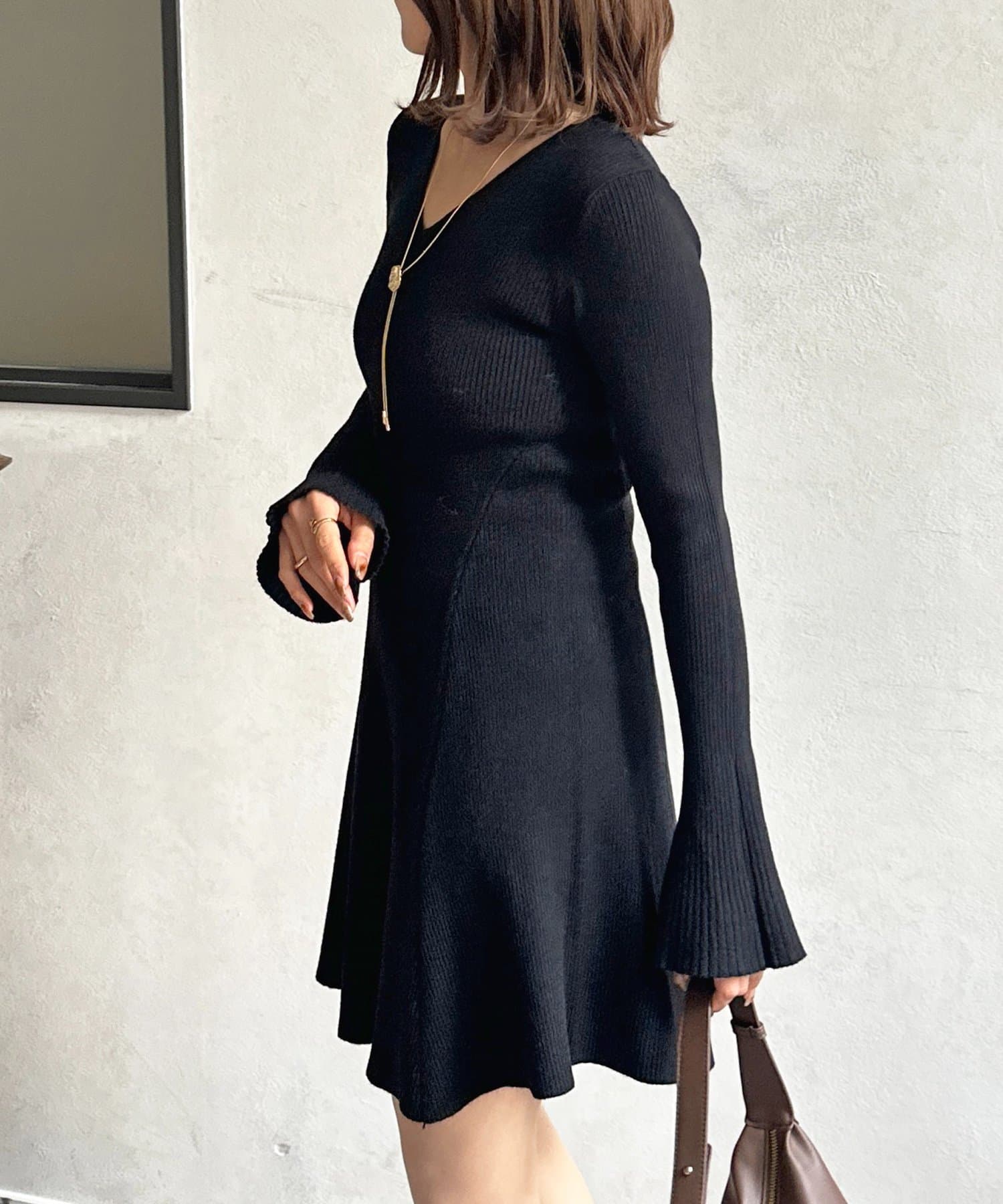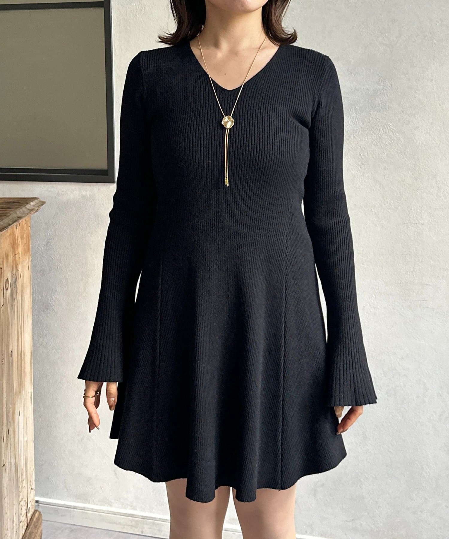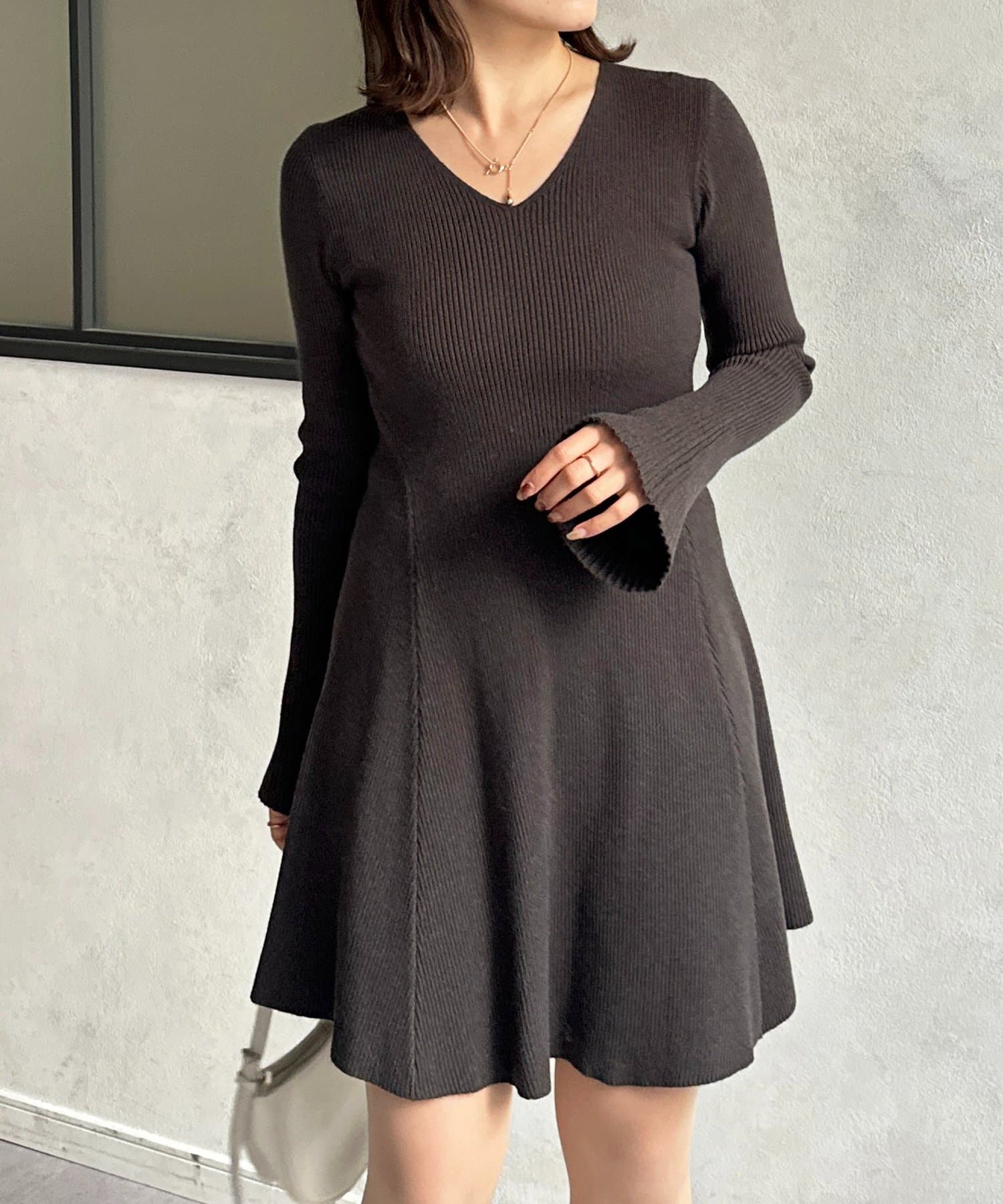 • Thevon.(ゼヴォン) 袖フレアリブニットチュニックワンピース