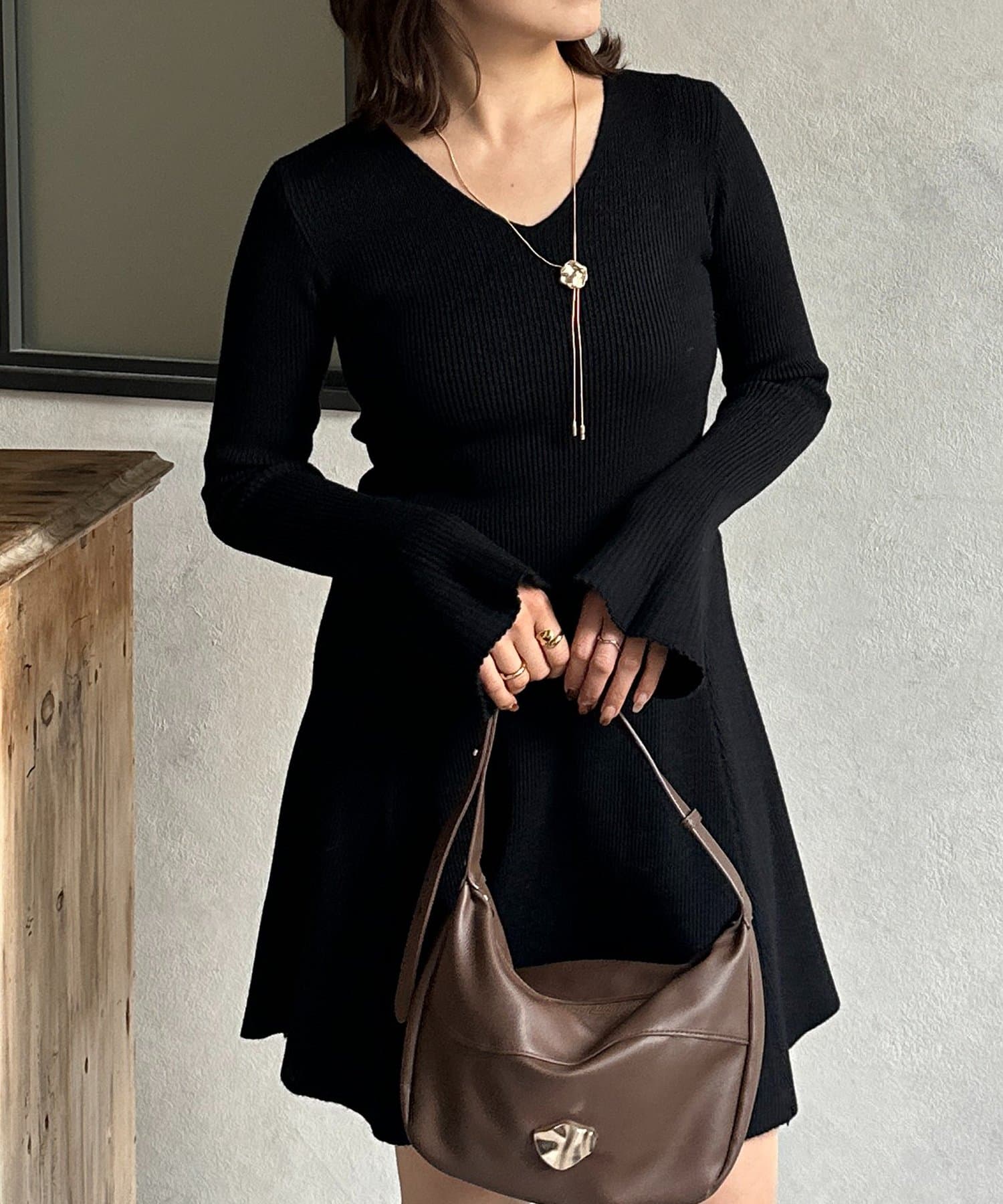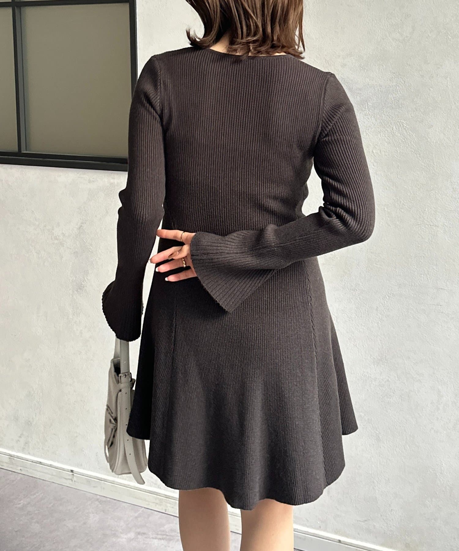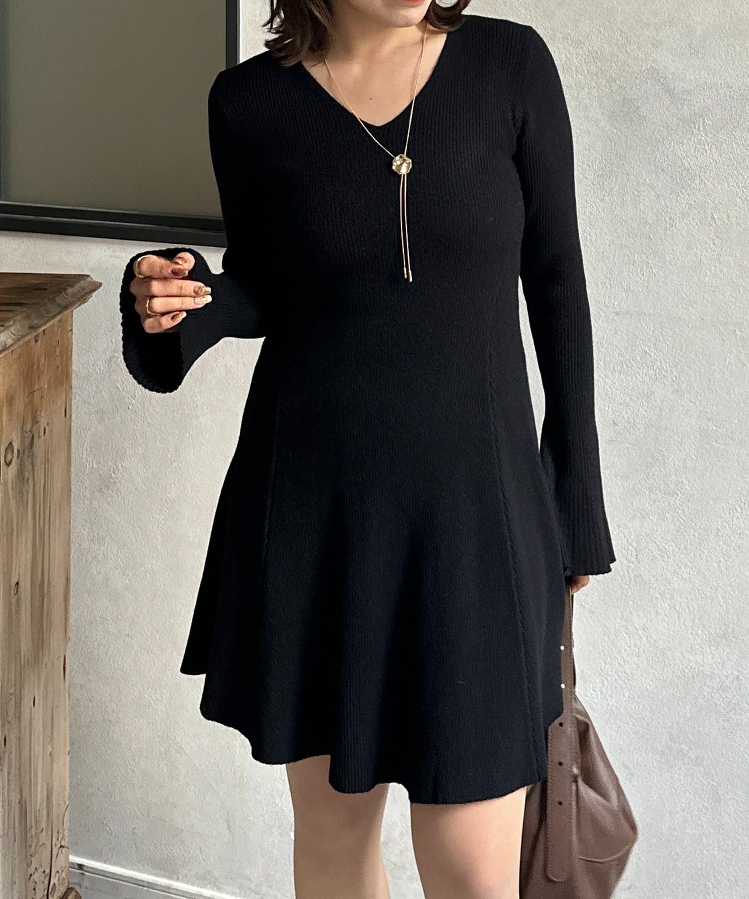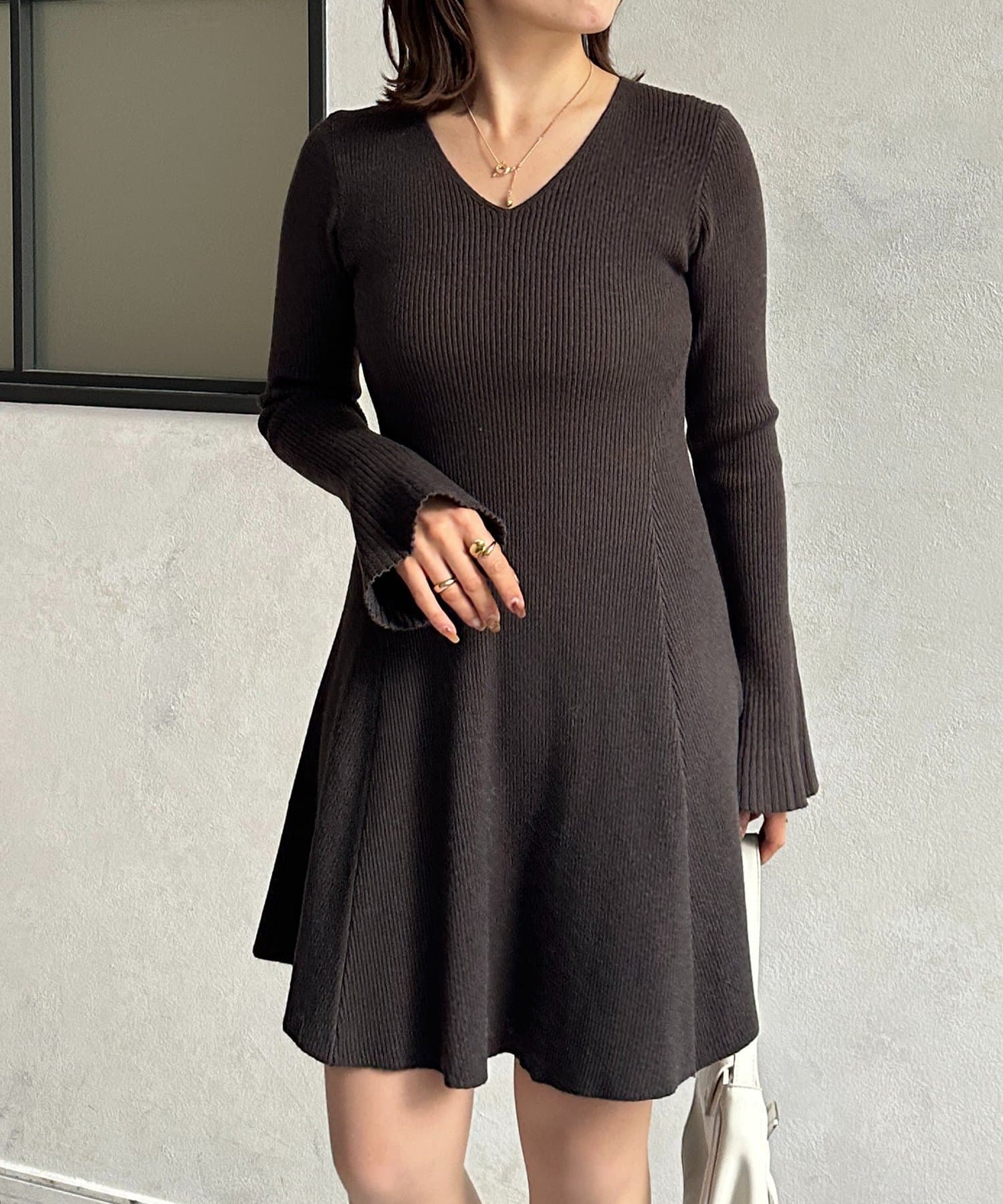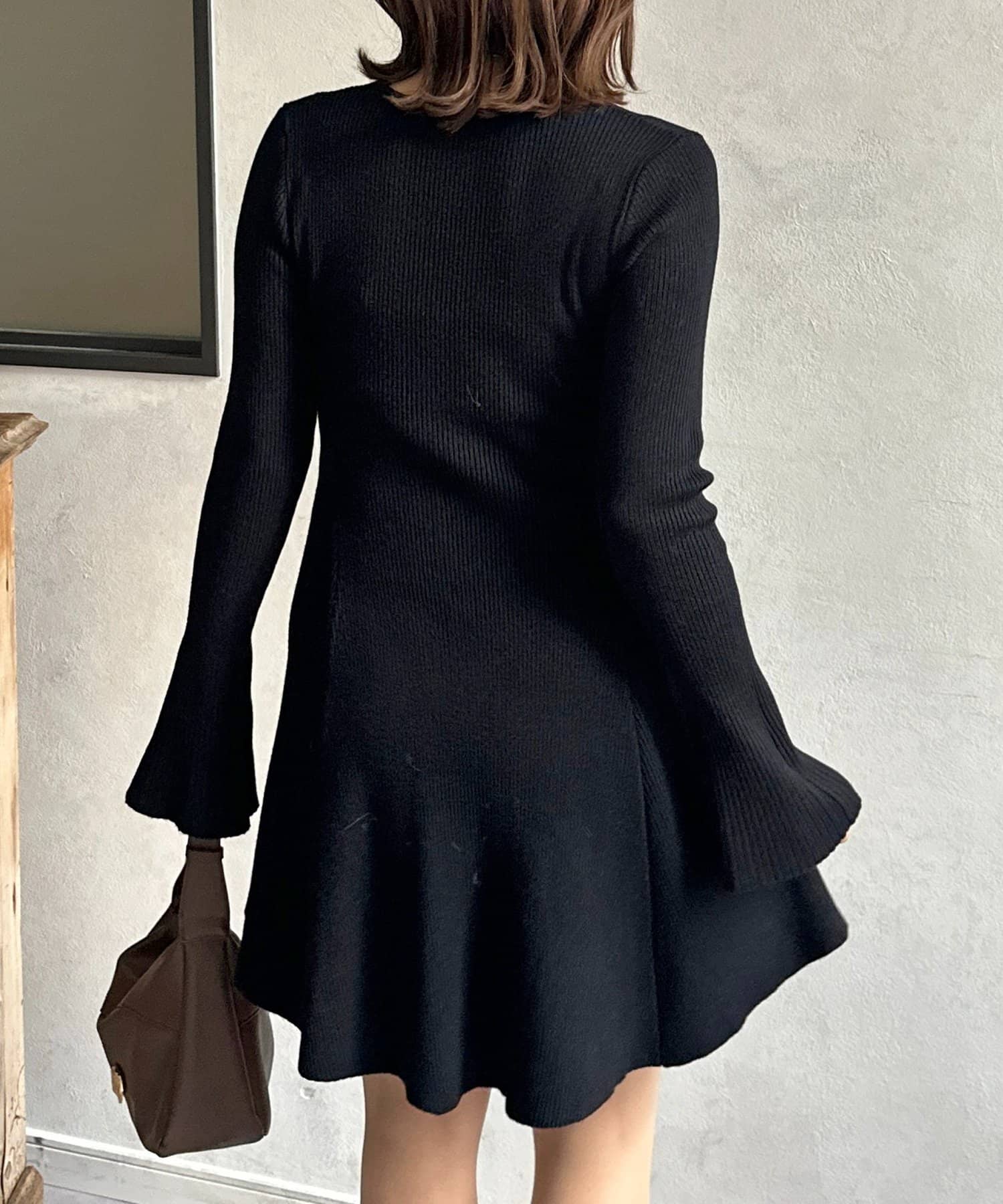 • Thevon.(ゼヴォン) 袖フレアリブニットチュニックワンピース