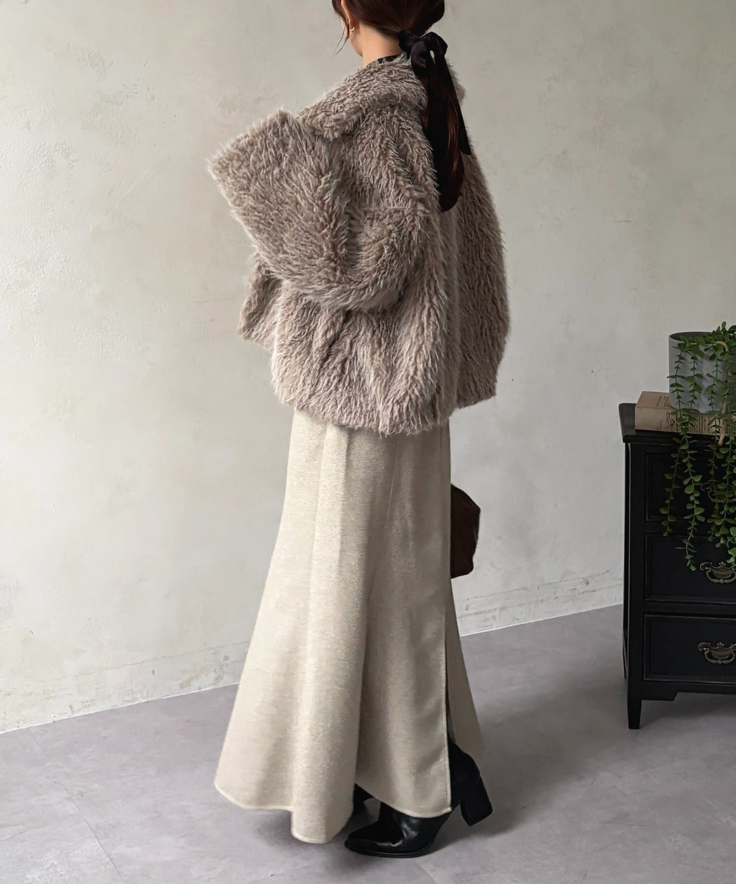 ・シンプルなニットやブラウスと合わせても着映えする主役級スカート。