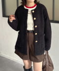 TOP > Thevon. > レディース > ジャケット/アウター > ノーカラージャケット > GOLDボタンノーカラーボアジャケット