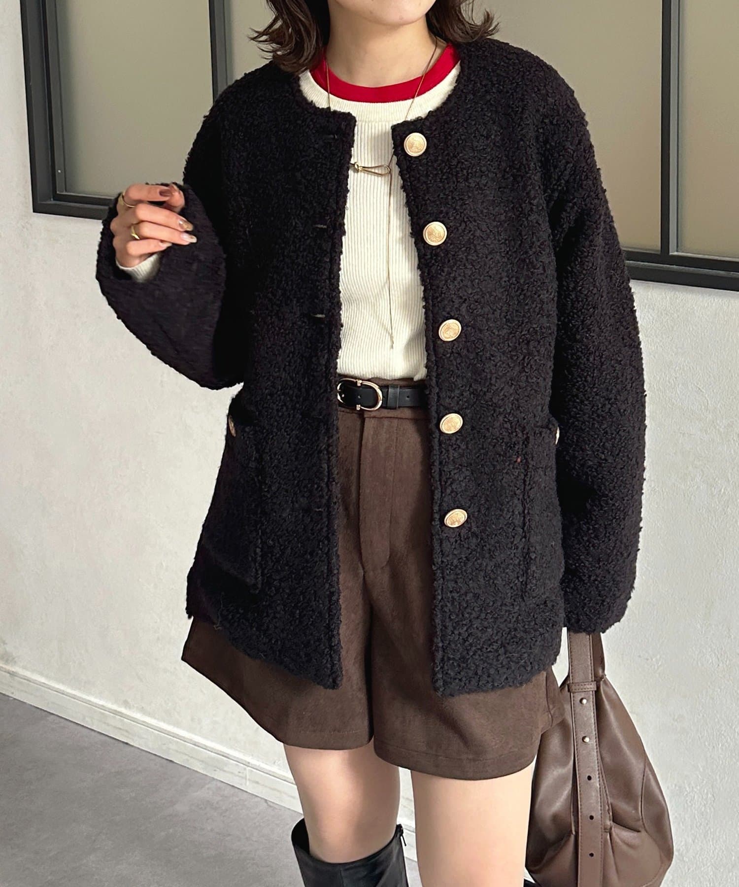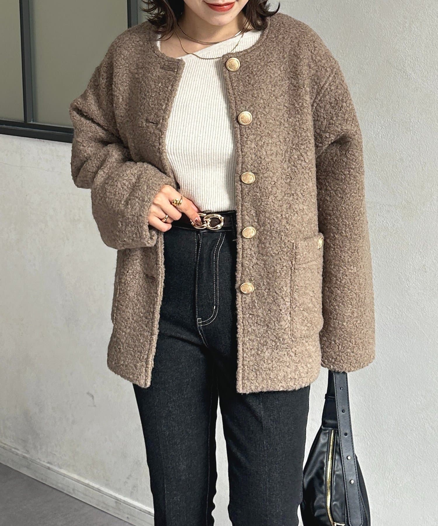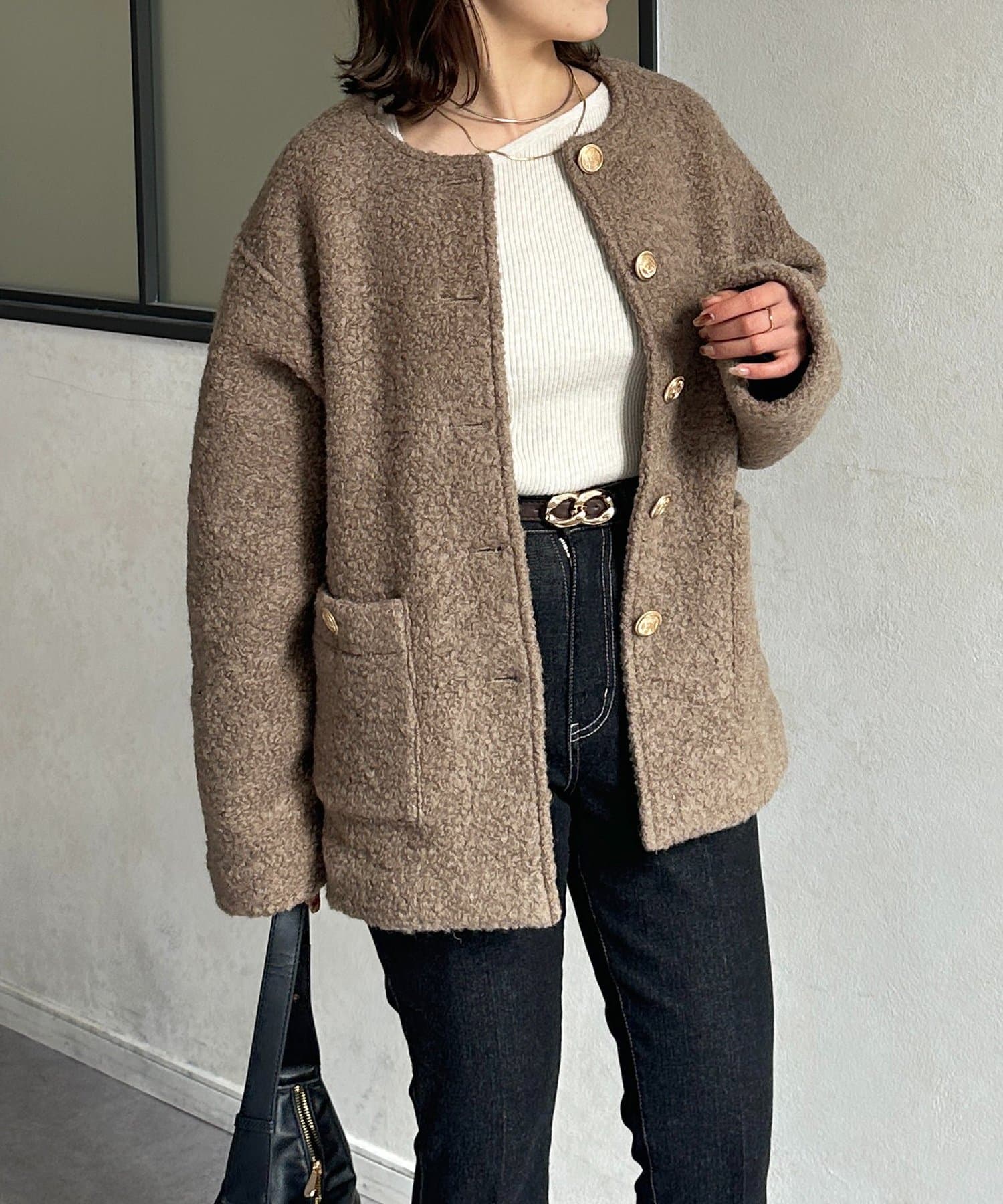 GOLDボタンノーカラーボアジャケット