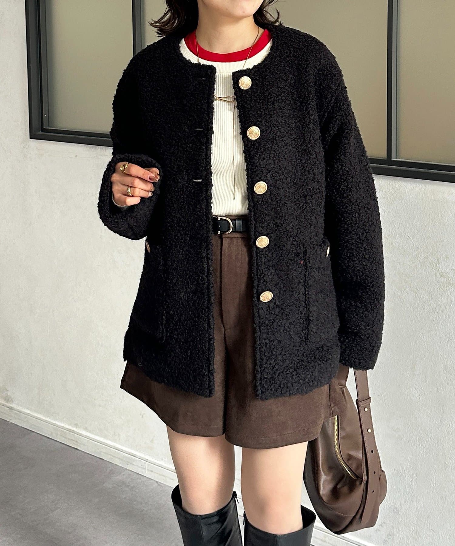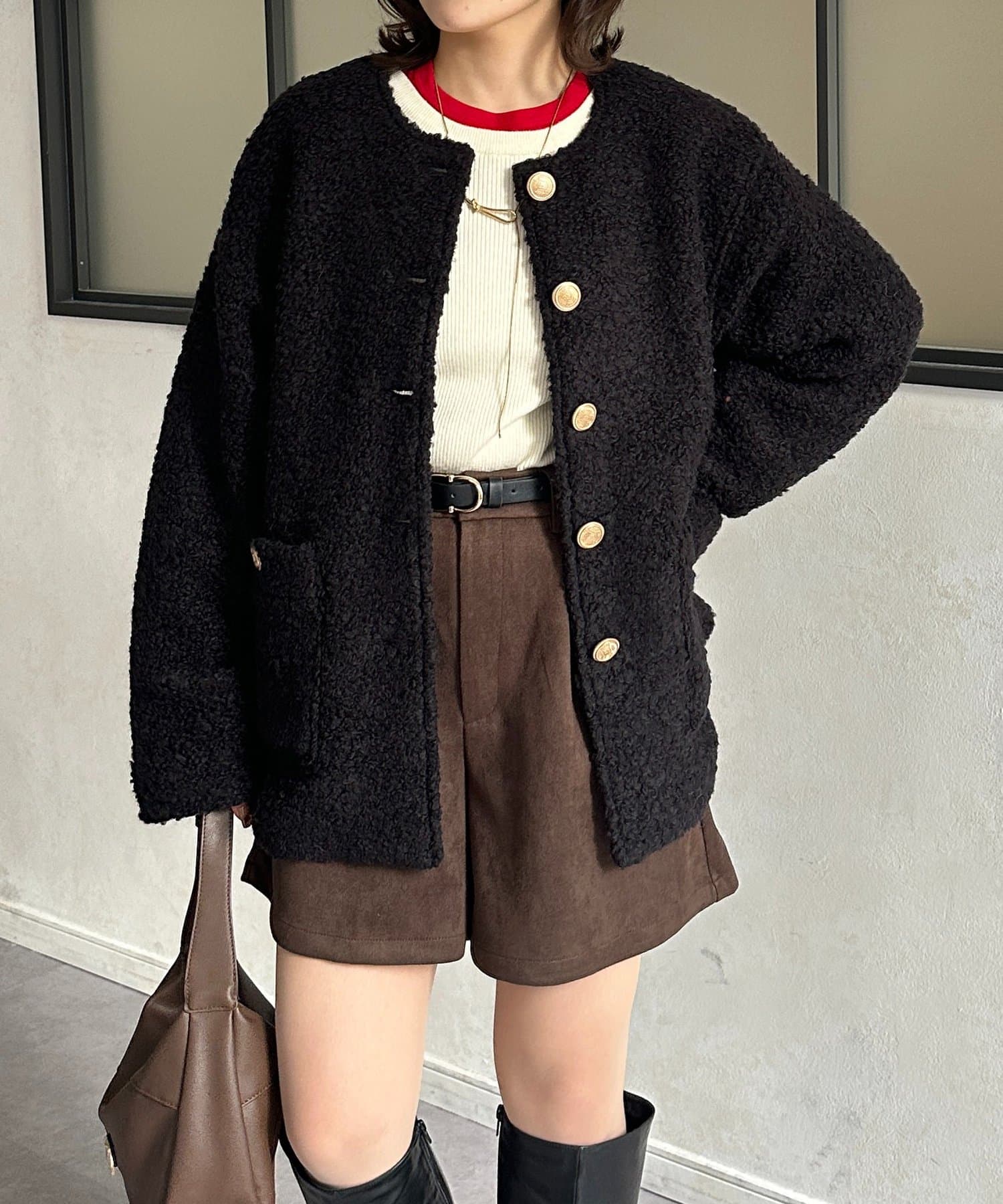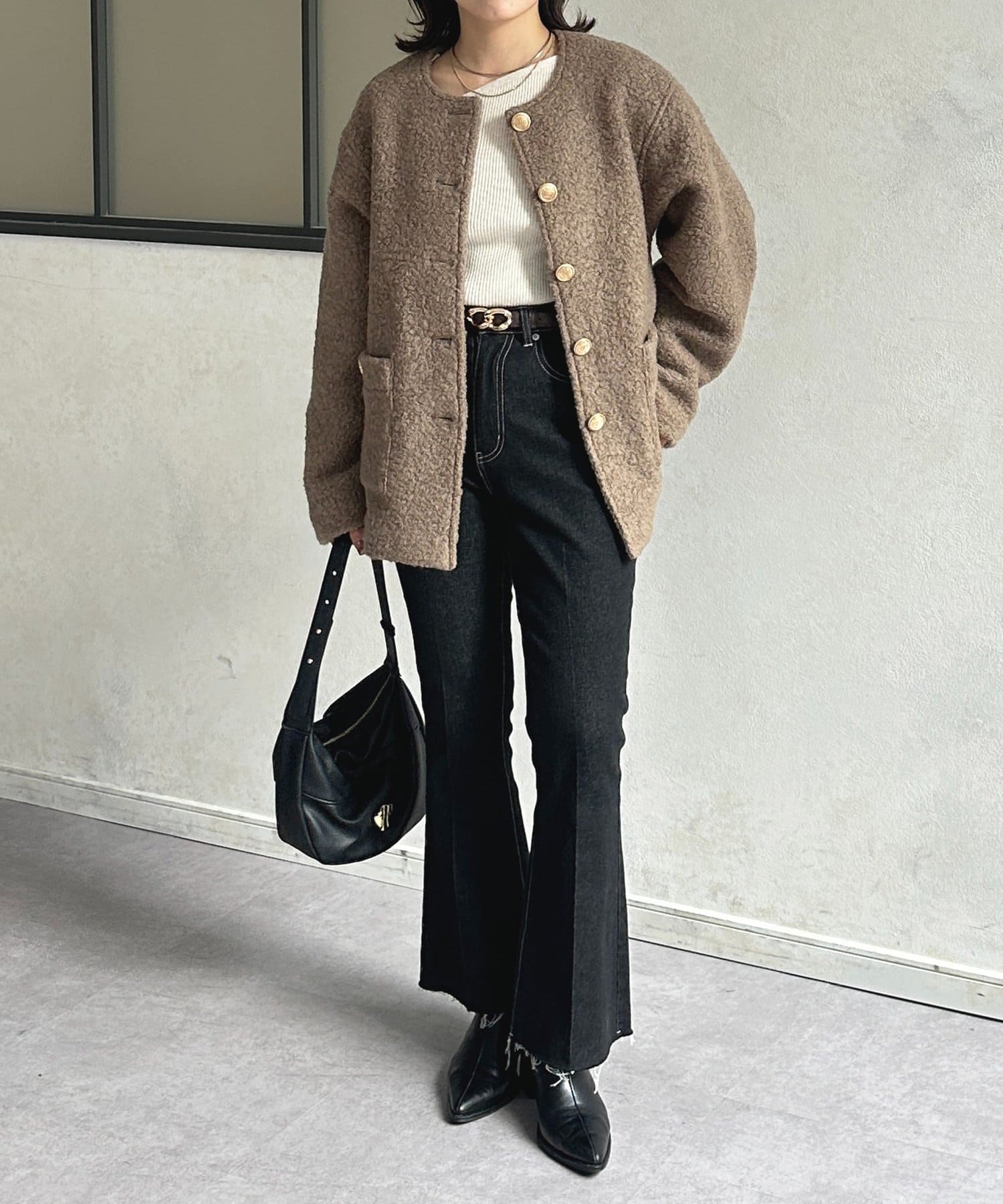 GOLDボタンノーカラーボアジャケット