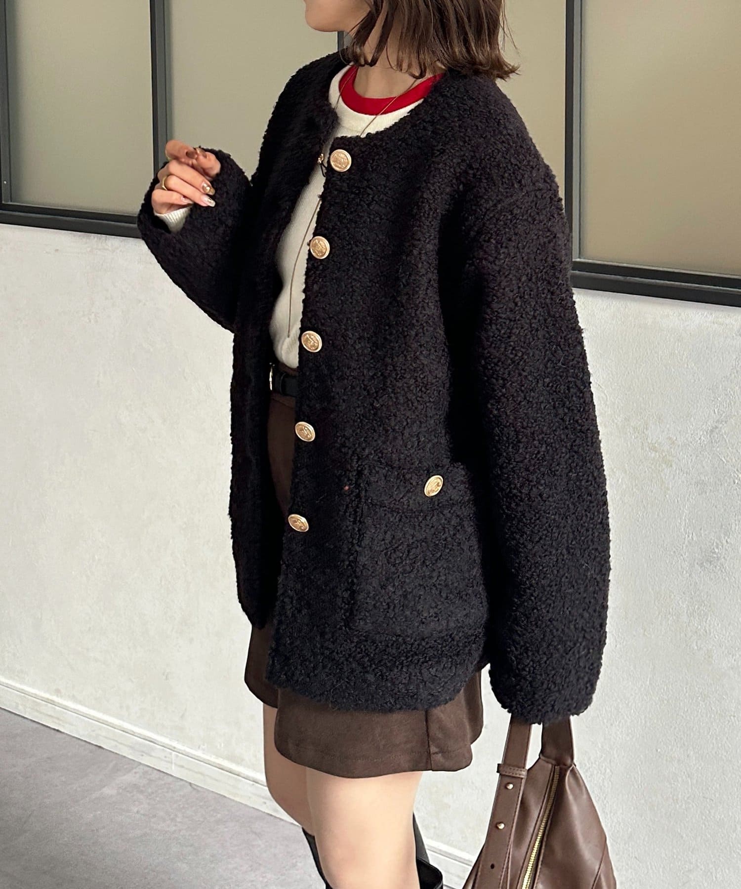 • Thevon.(ゼヴォン) GOLDボタンノーカラーボアジャケット