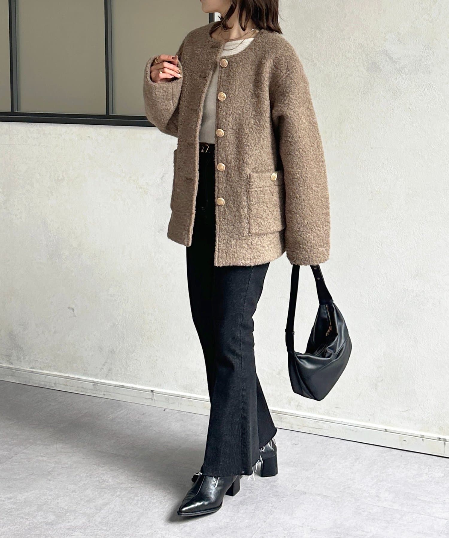 Thevon.(ゼヴォン) GOLDボタンノーカラーボアジャケット
