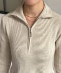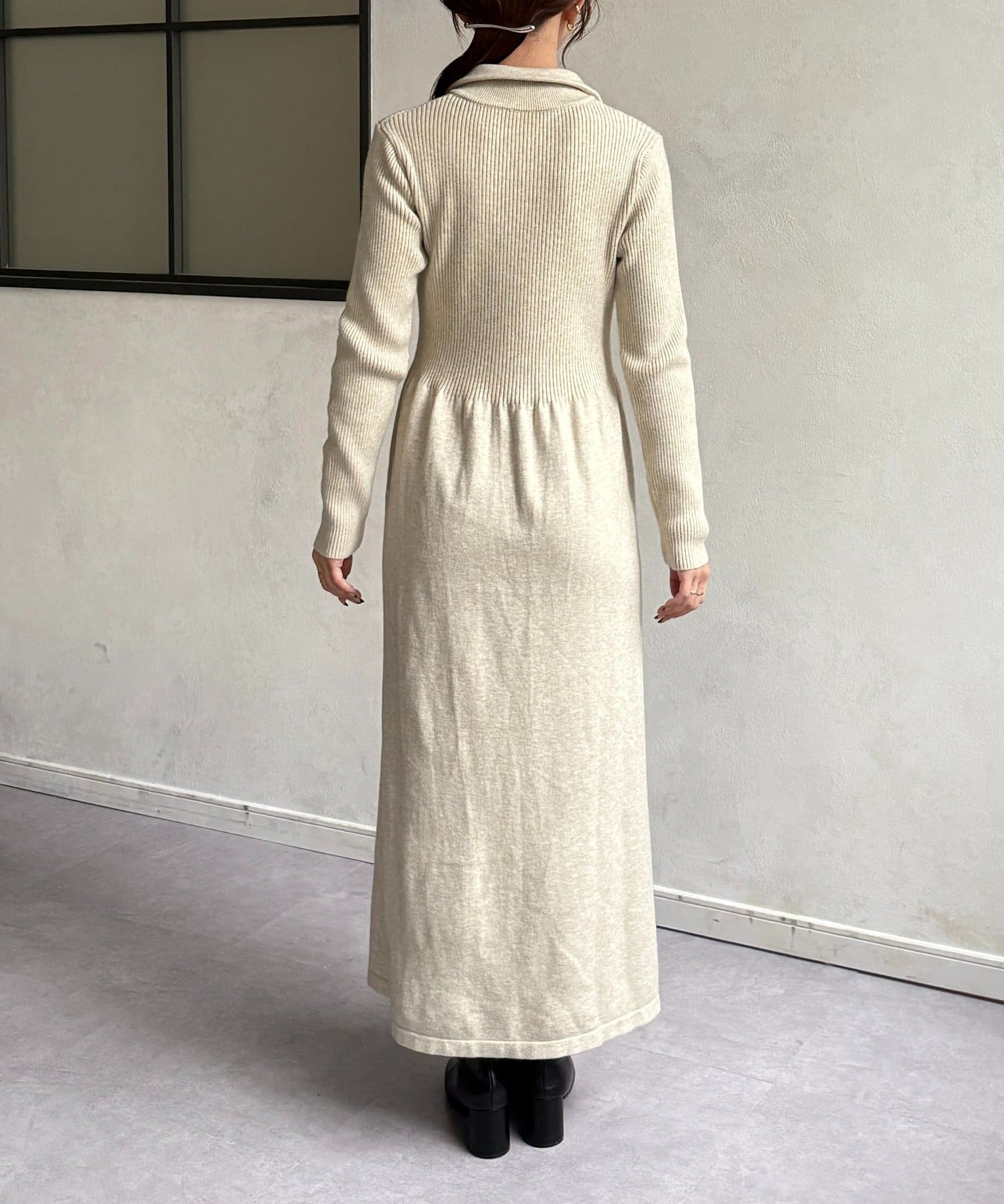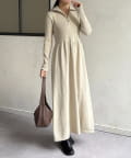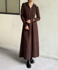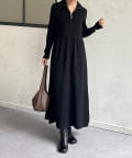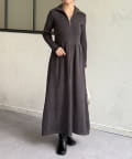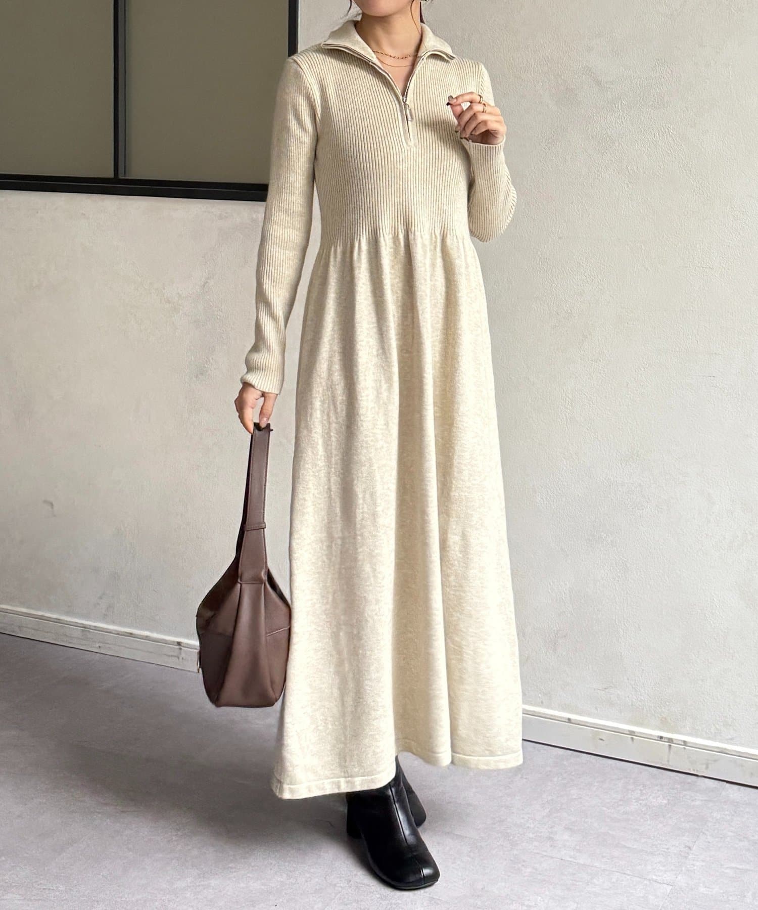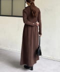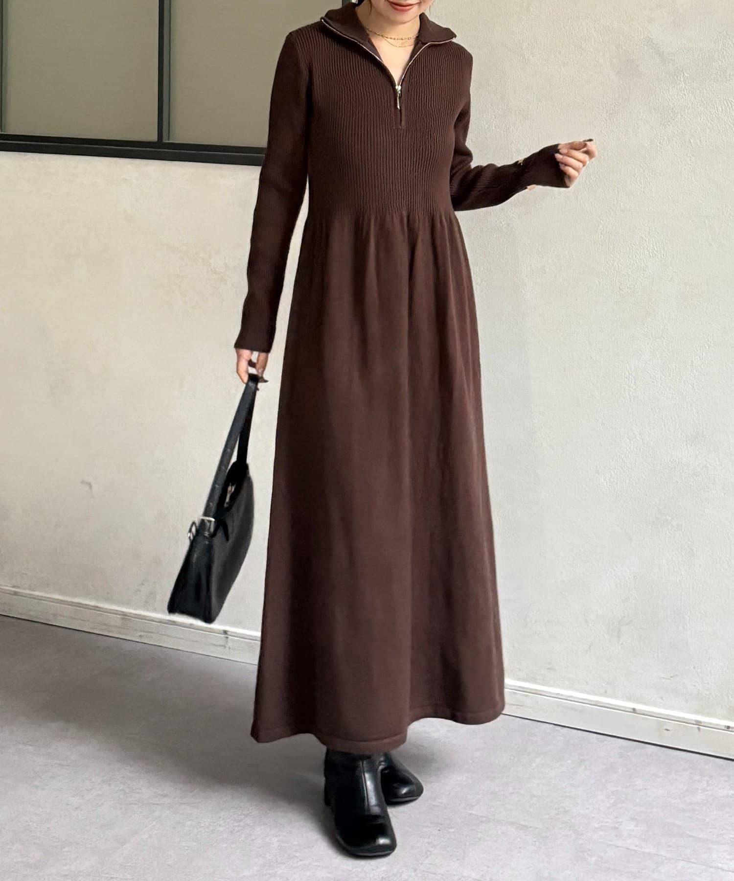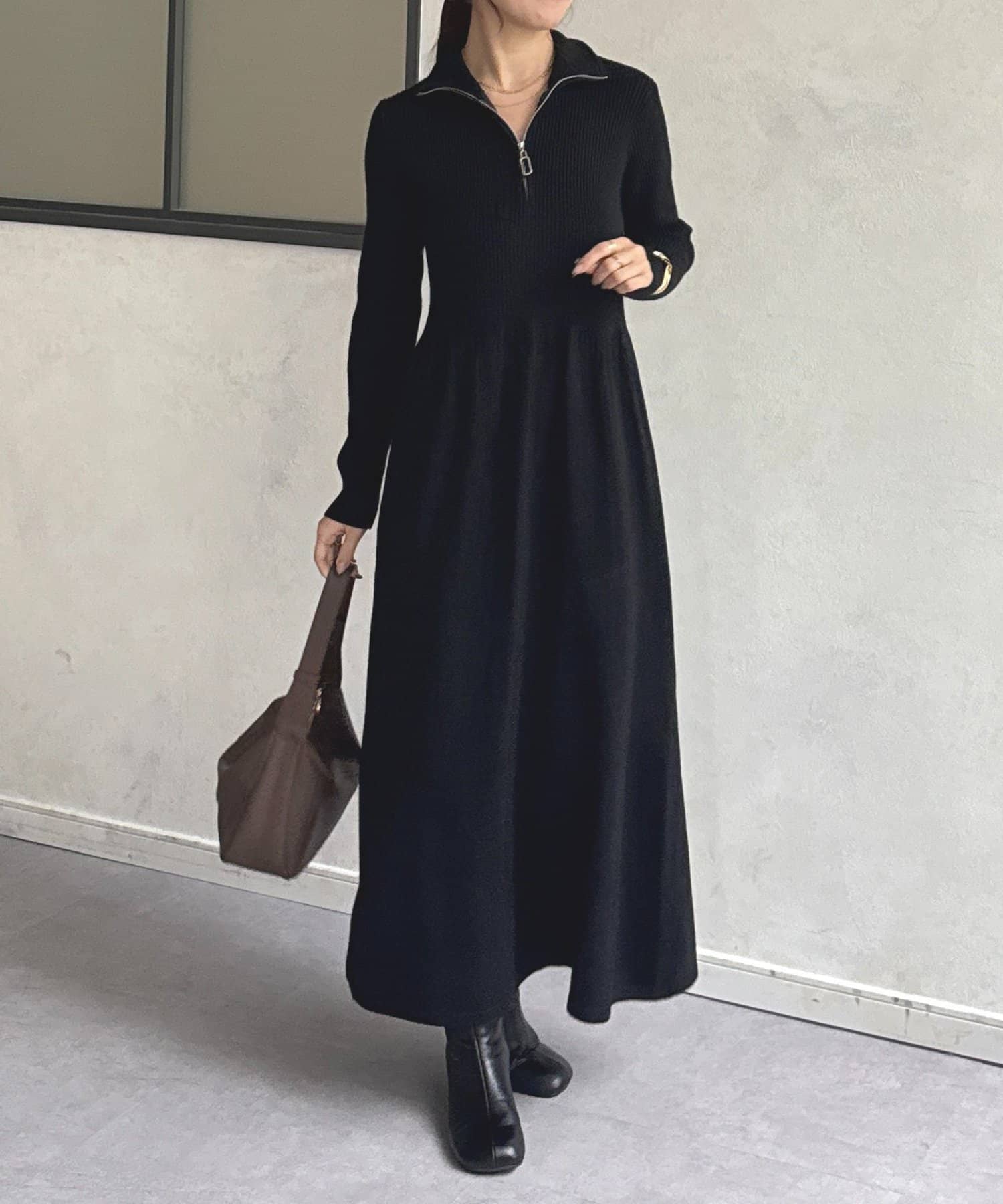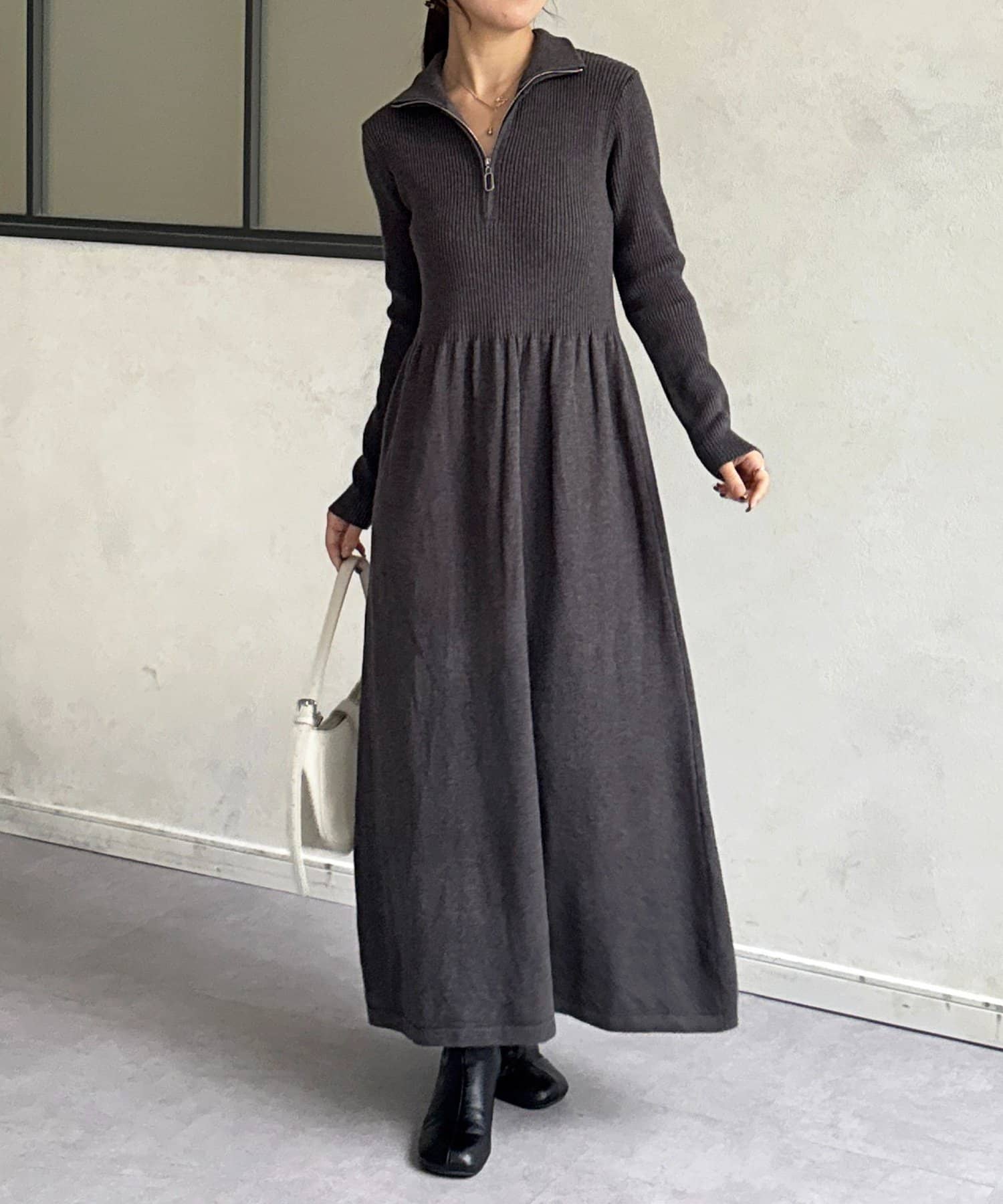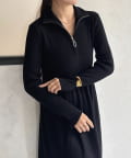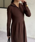 ハーフジップリブニットフレアワンピース