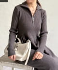 トレンド感満載のハーフジップニットワンピ