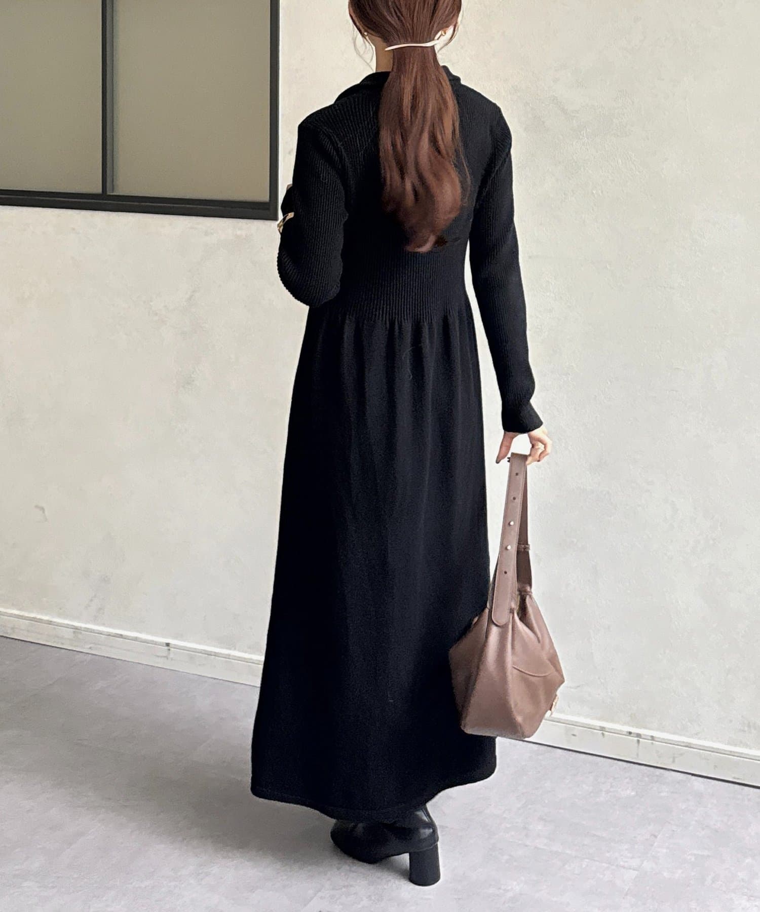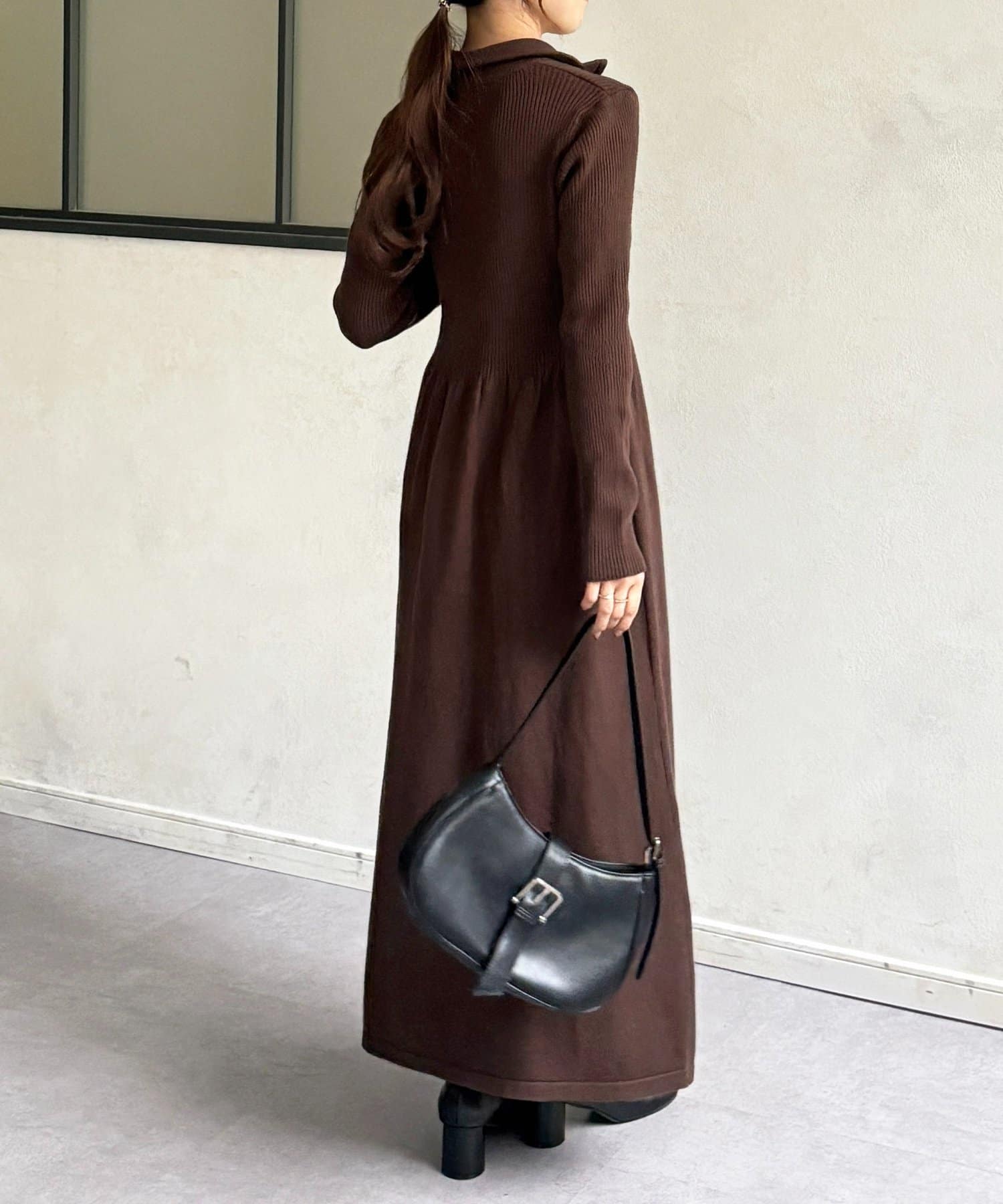 冬はコートやダウンなど、色んなアウターとも合わせやすいワンピースです。
