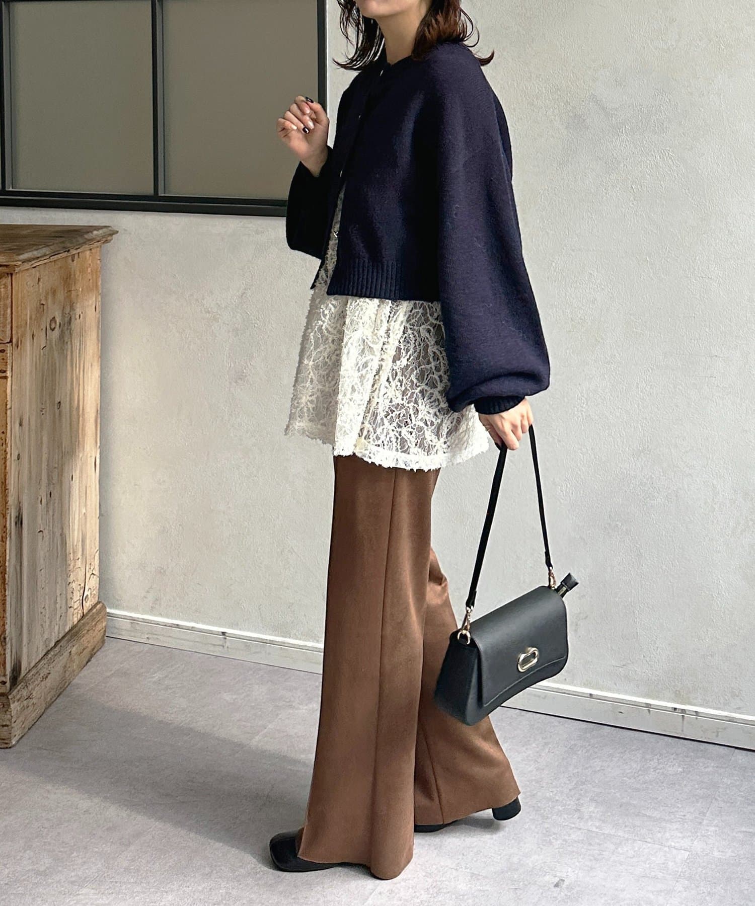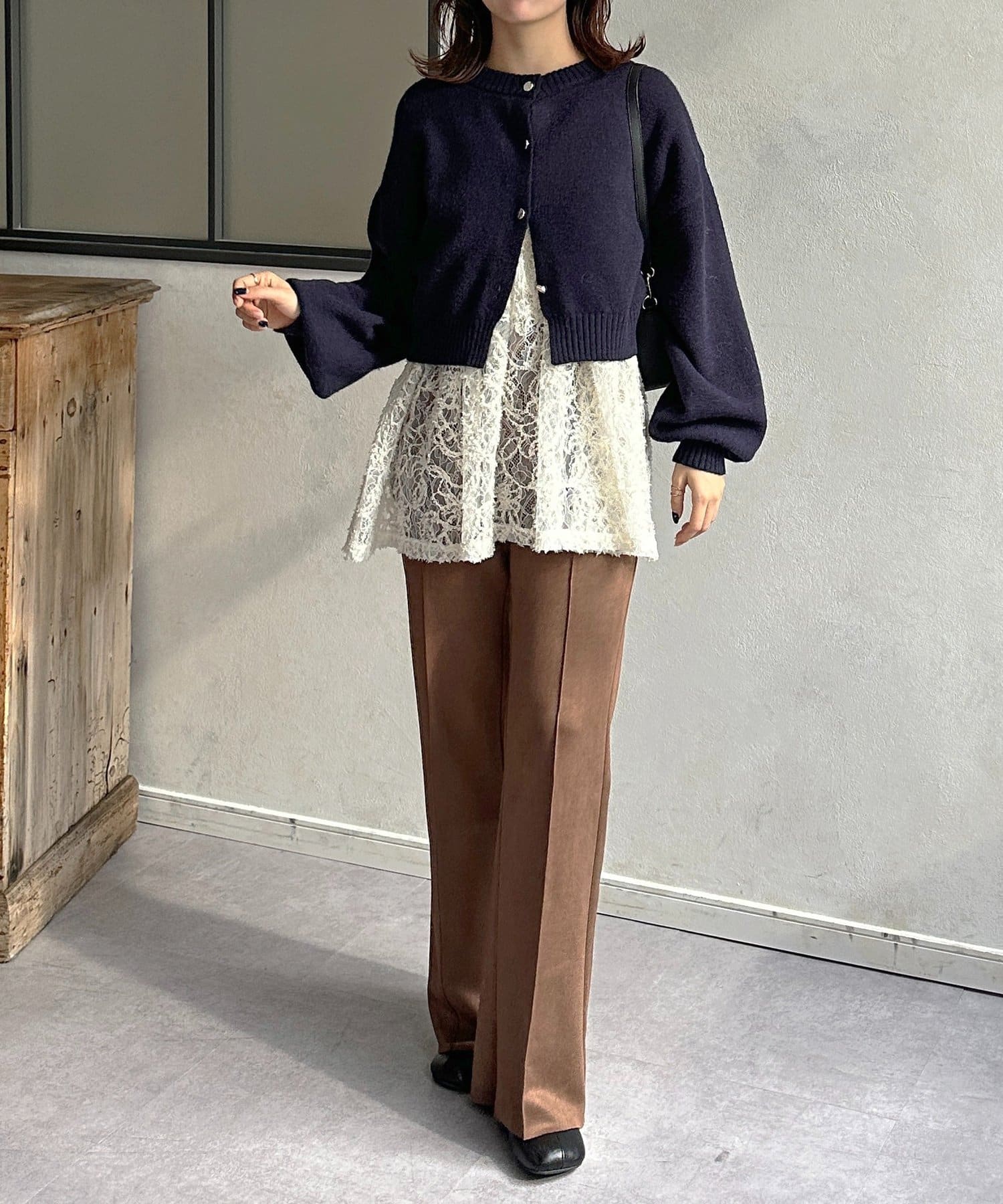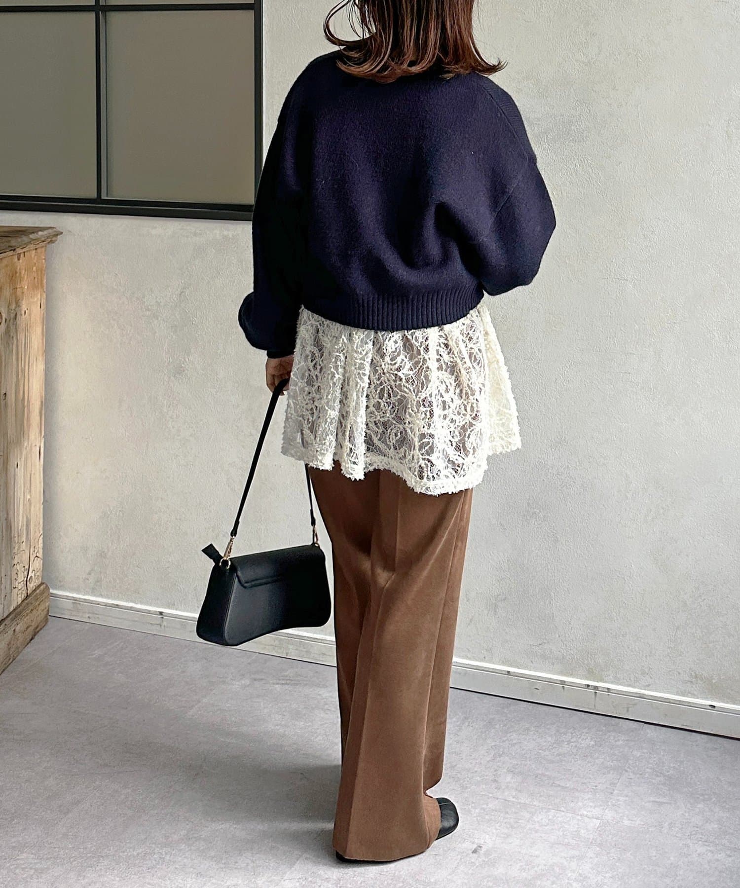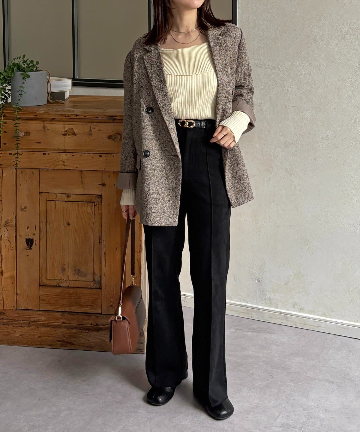 チュニック丈のトップスと合わせると体型カバーもでき、バランスよく着こなせます。