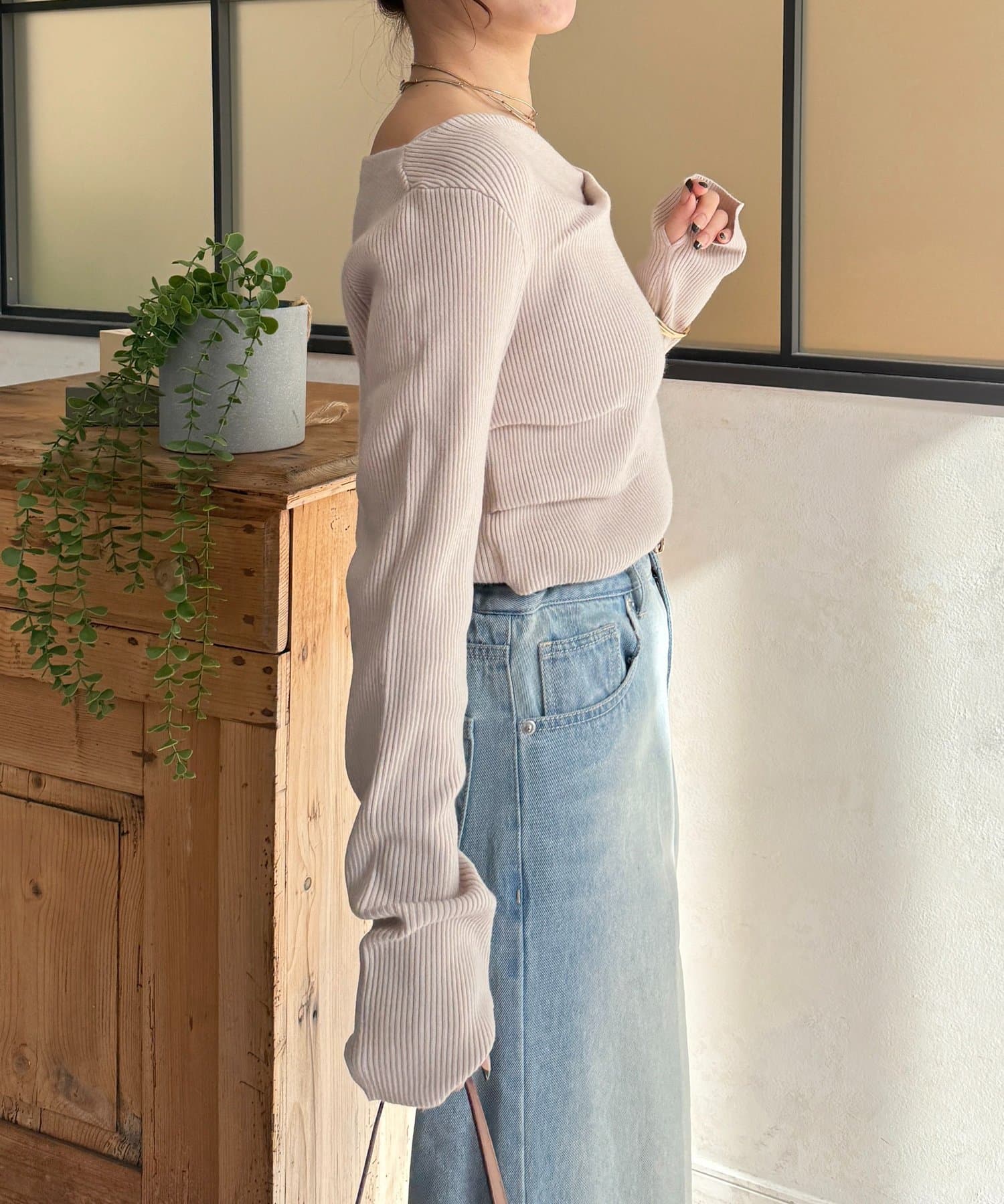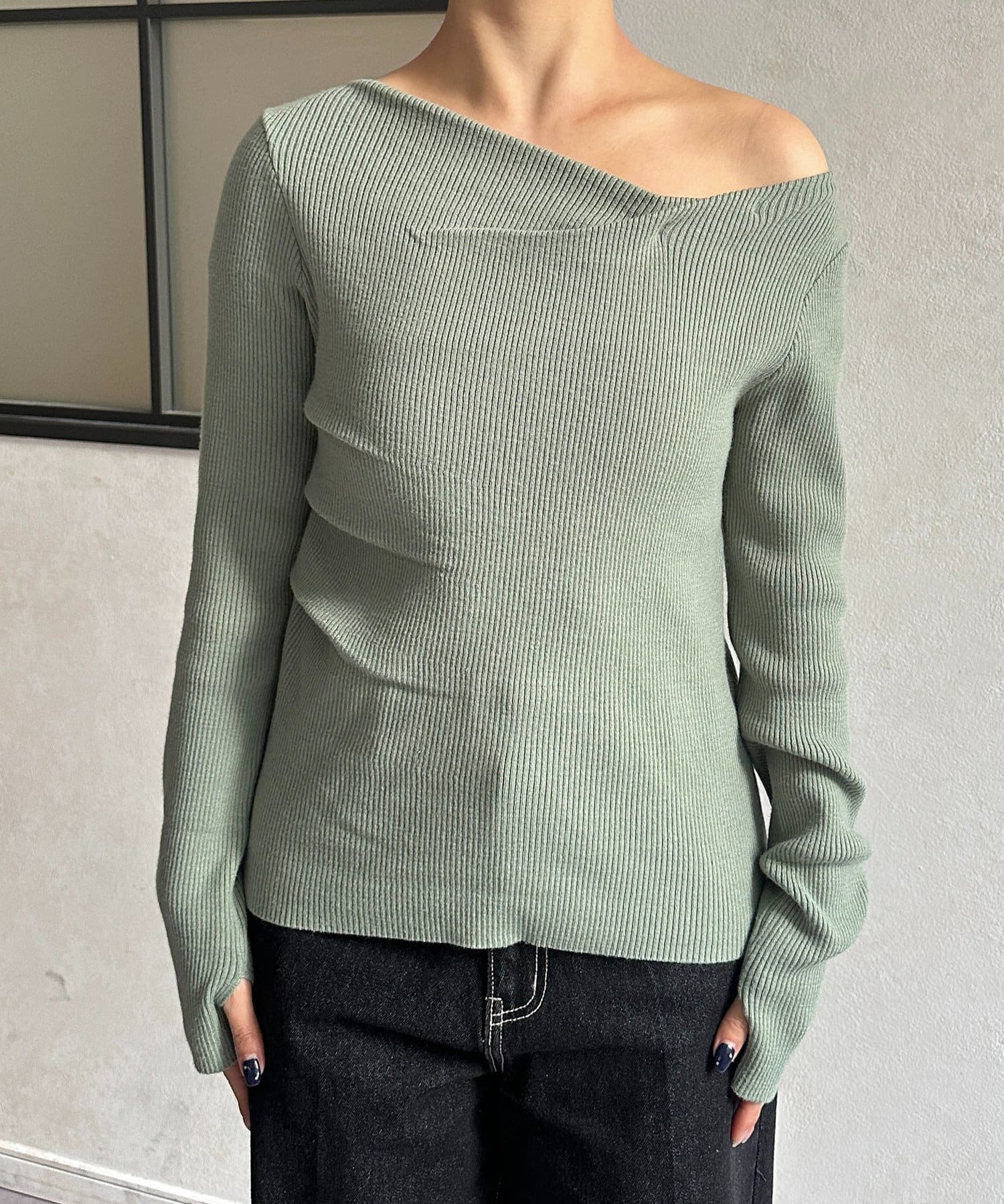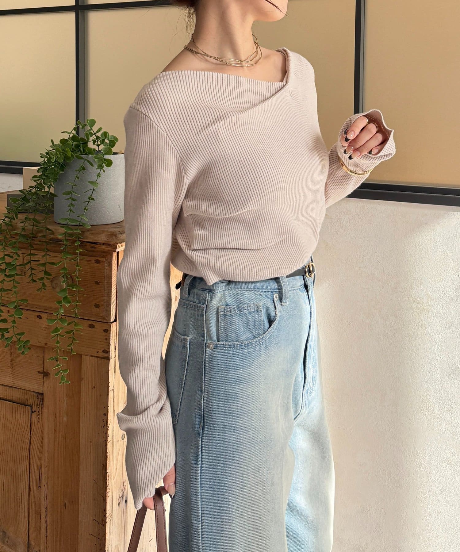 #ドレープネックニット #プルオーバー #ドレープ #リブニット