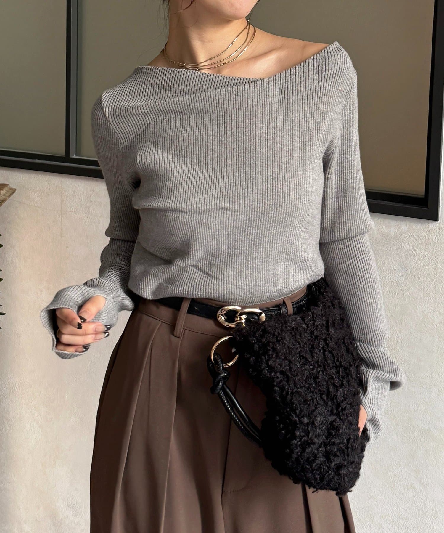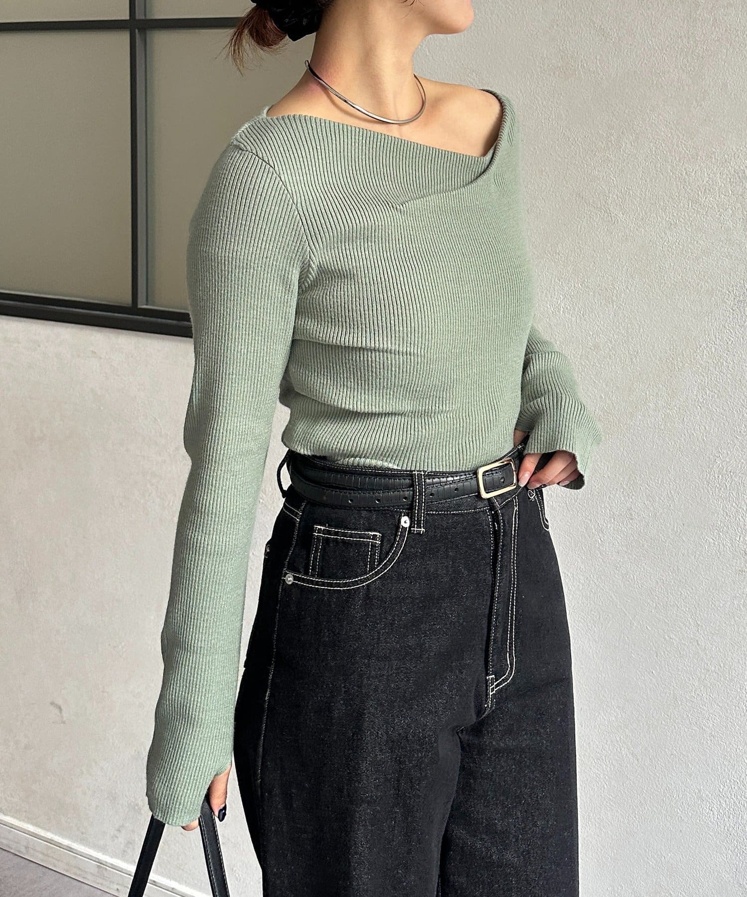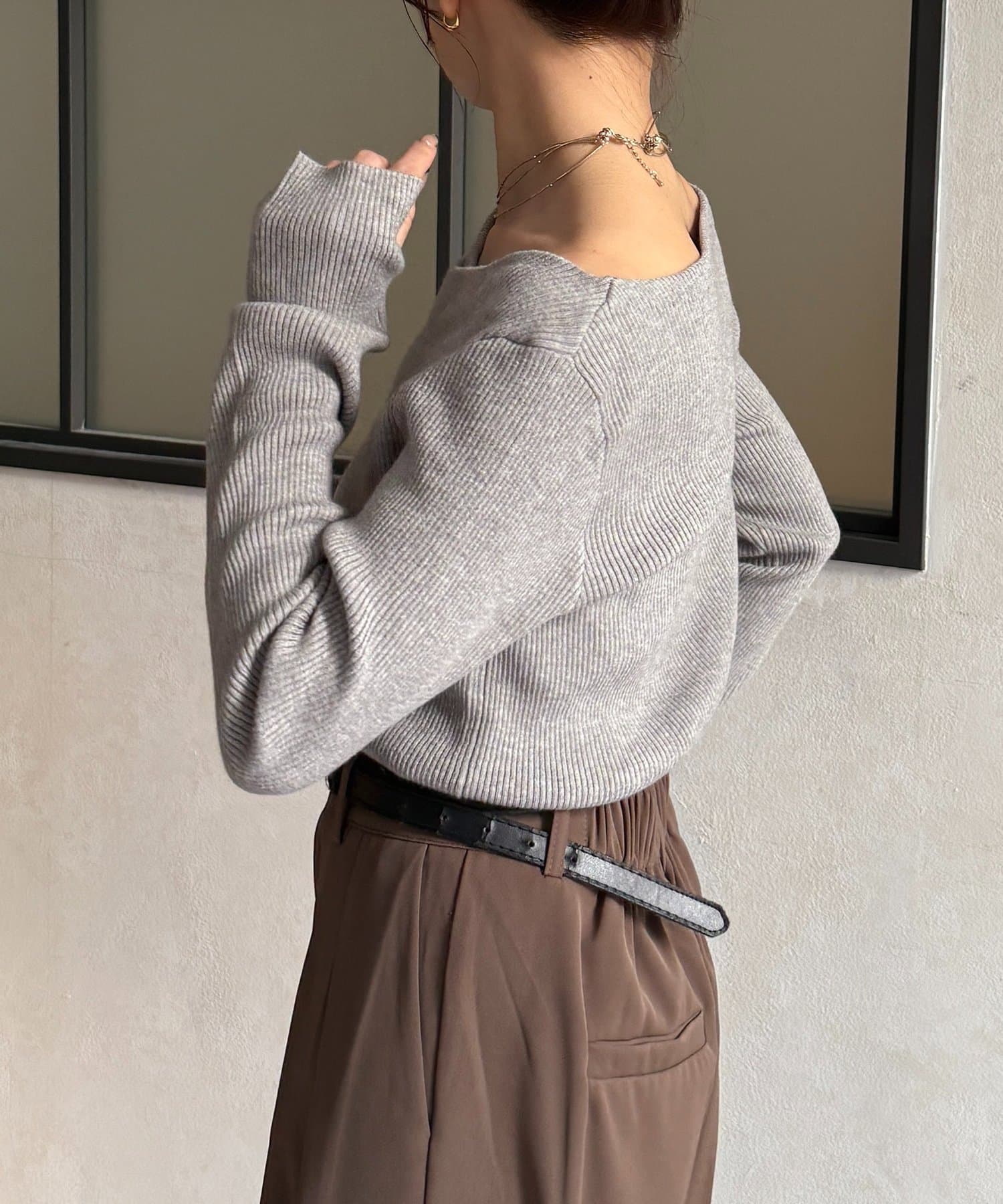 #ドレープネックニット #プルオーバー #ドレープ #リブニット
