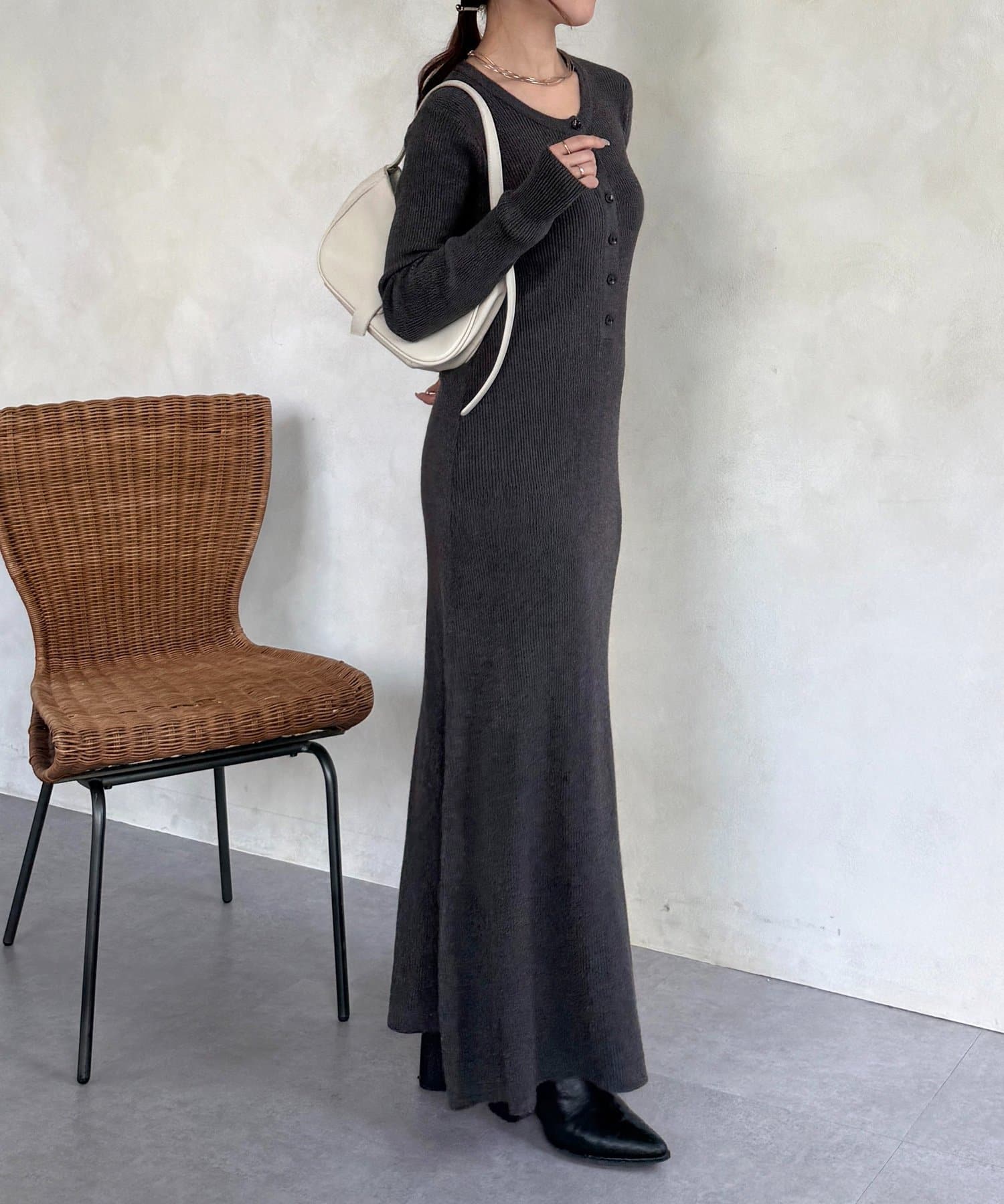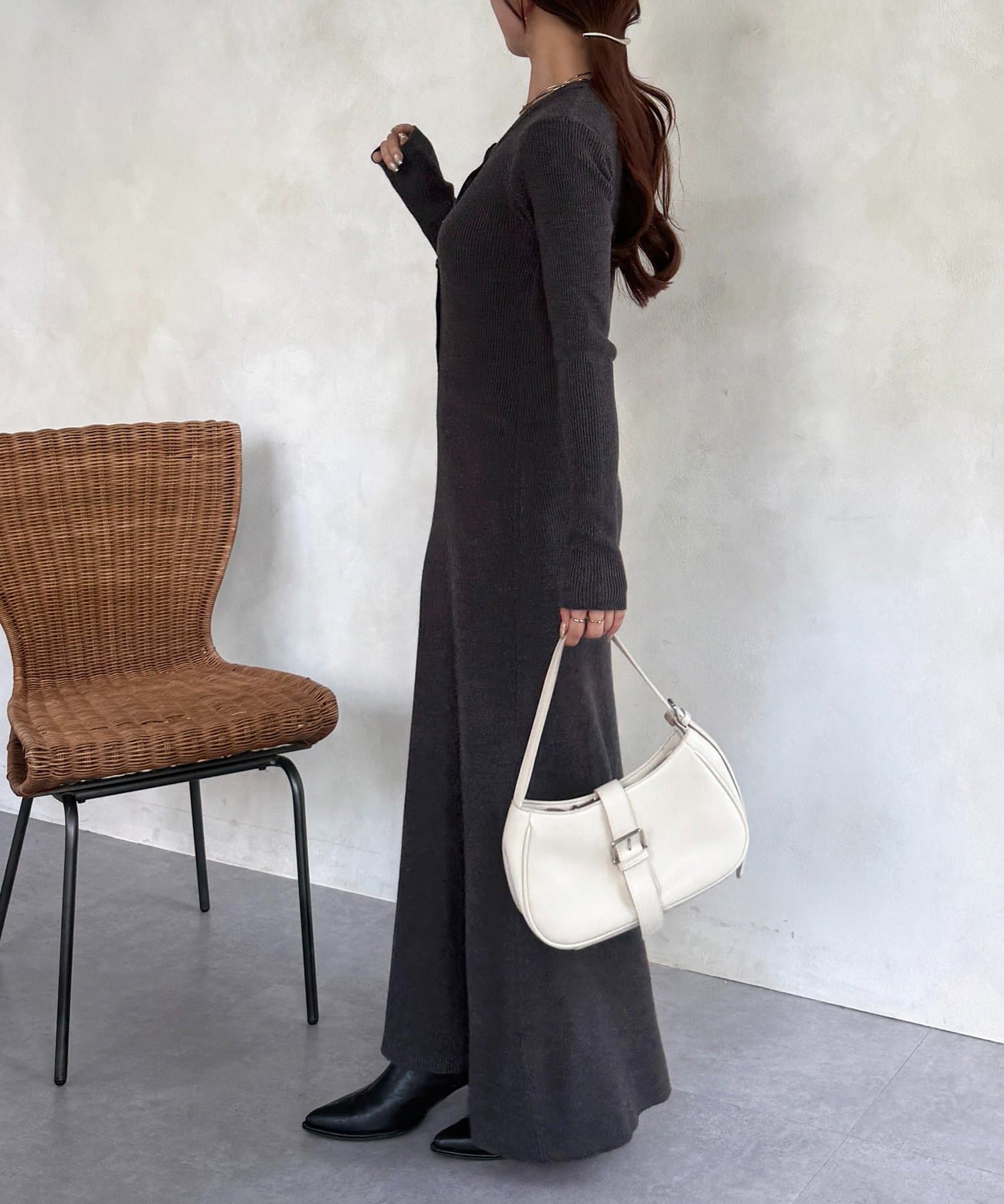 #ニットワンピース #ヘンリーネック #リブニット #ワンピース#きれいめ