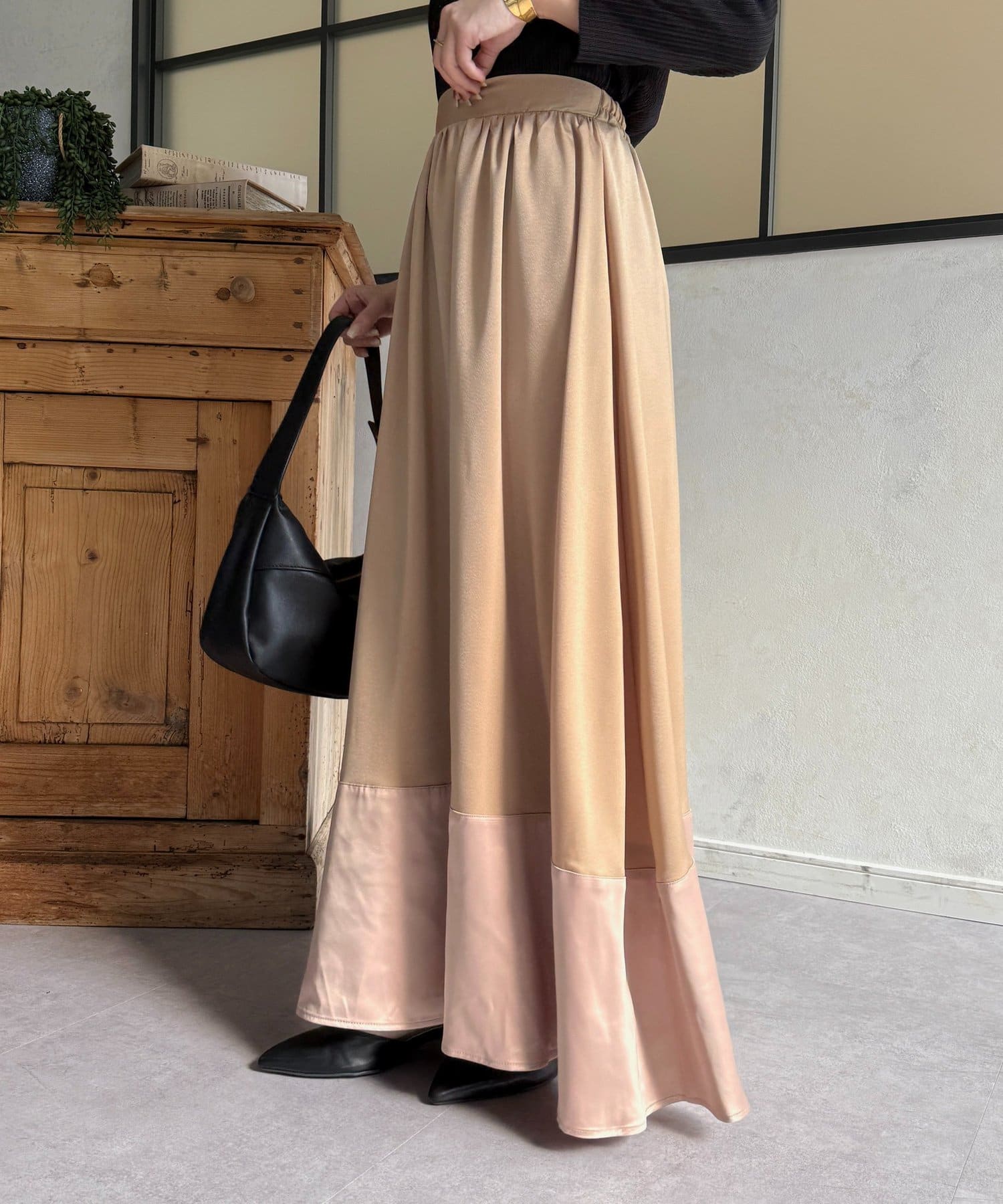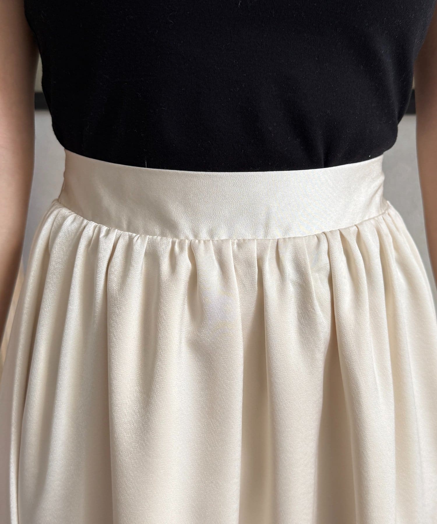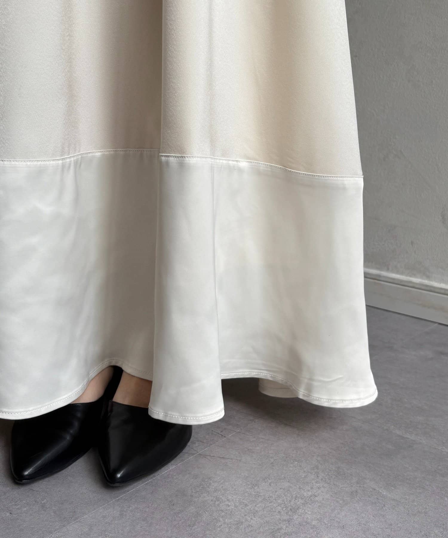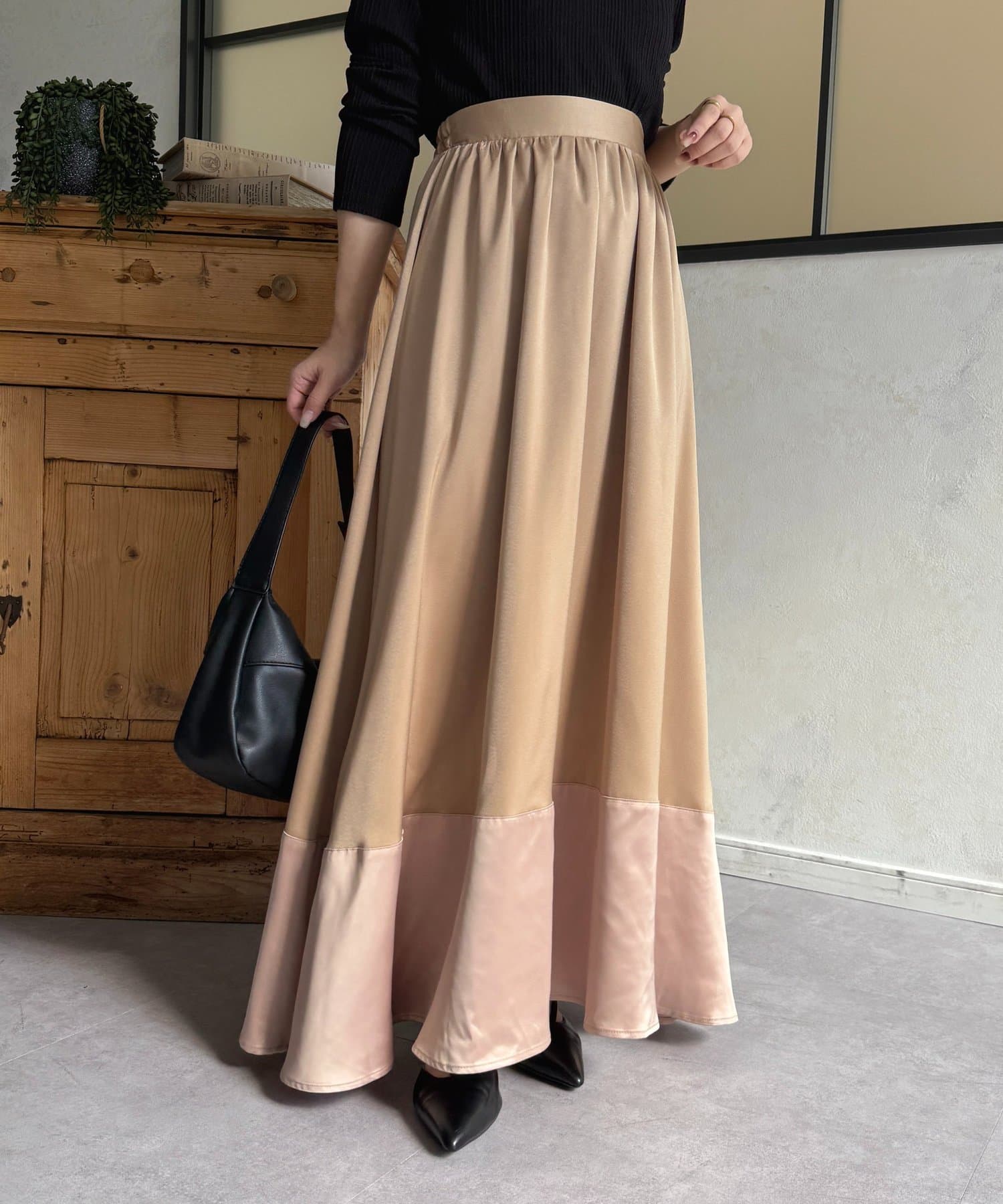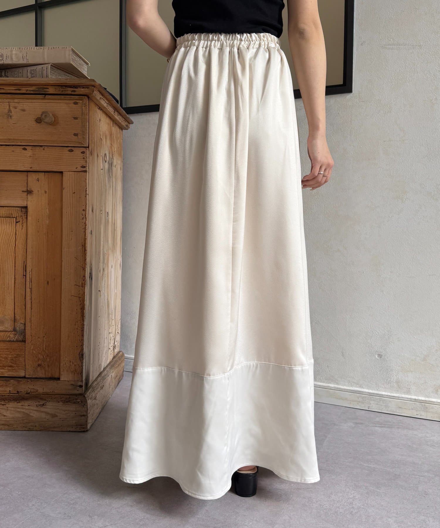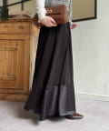 裾切替マットサテンギャザーフレアスカート