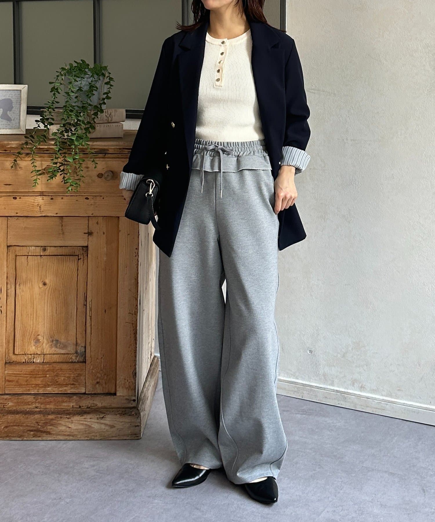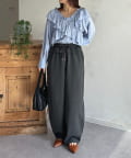 ・フリルがアクセントになるパンツなので、トップスはシンプルな