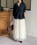 ボトムスは、上品なフレアスカートを合わせれば、大人の抜け感を演出できます。