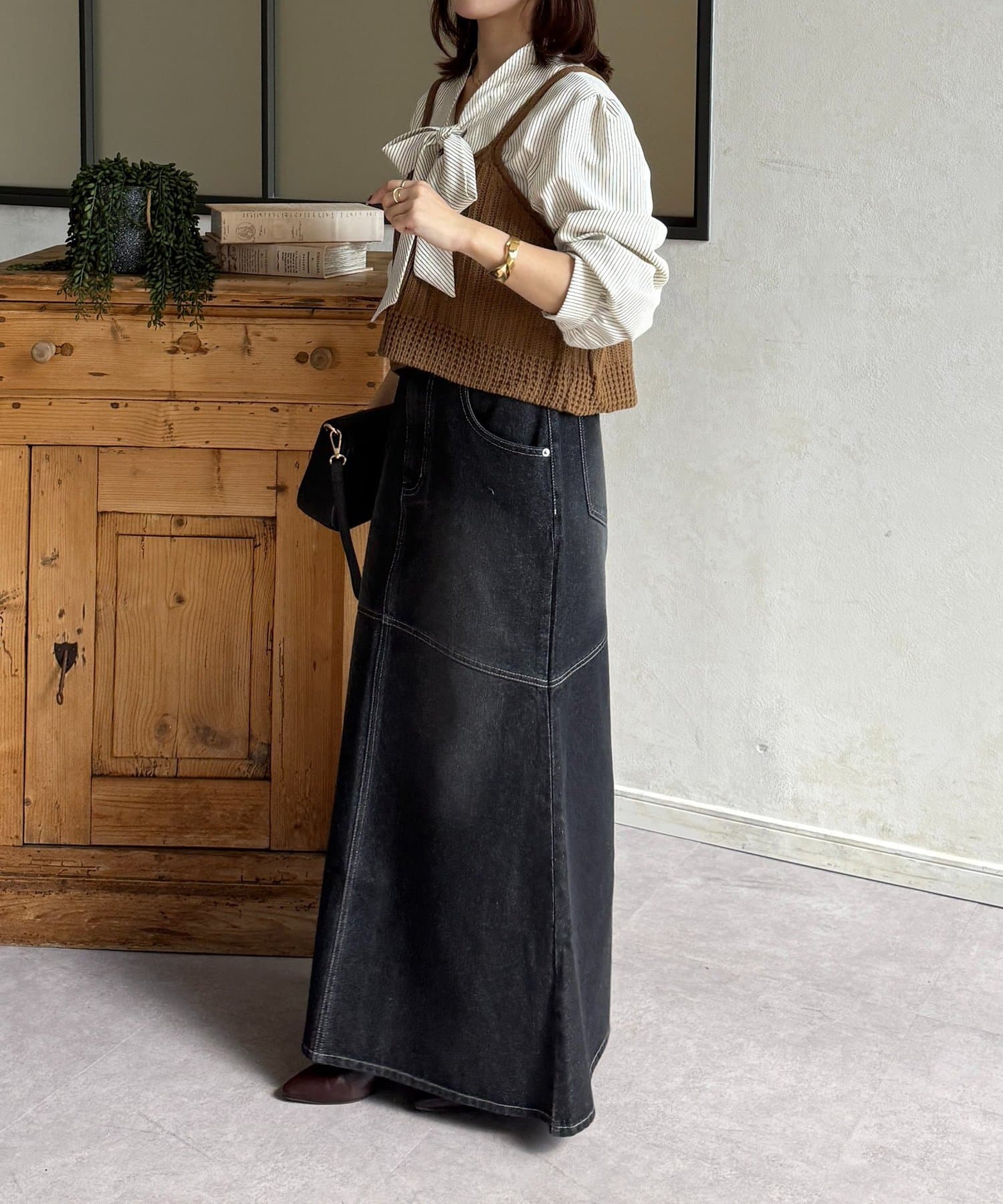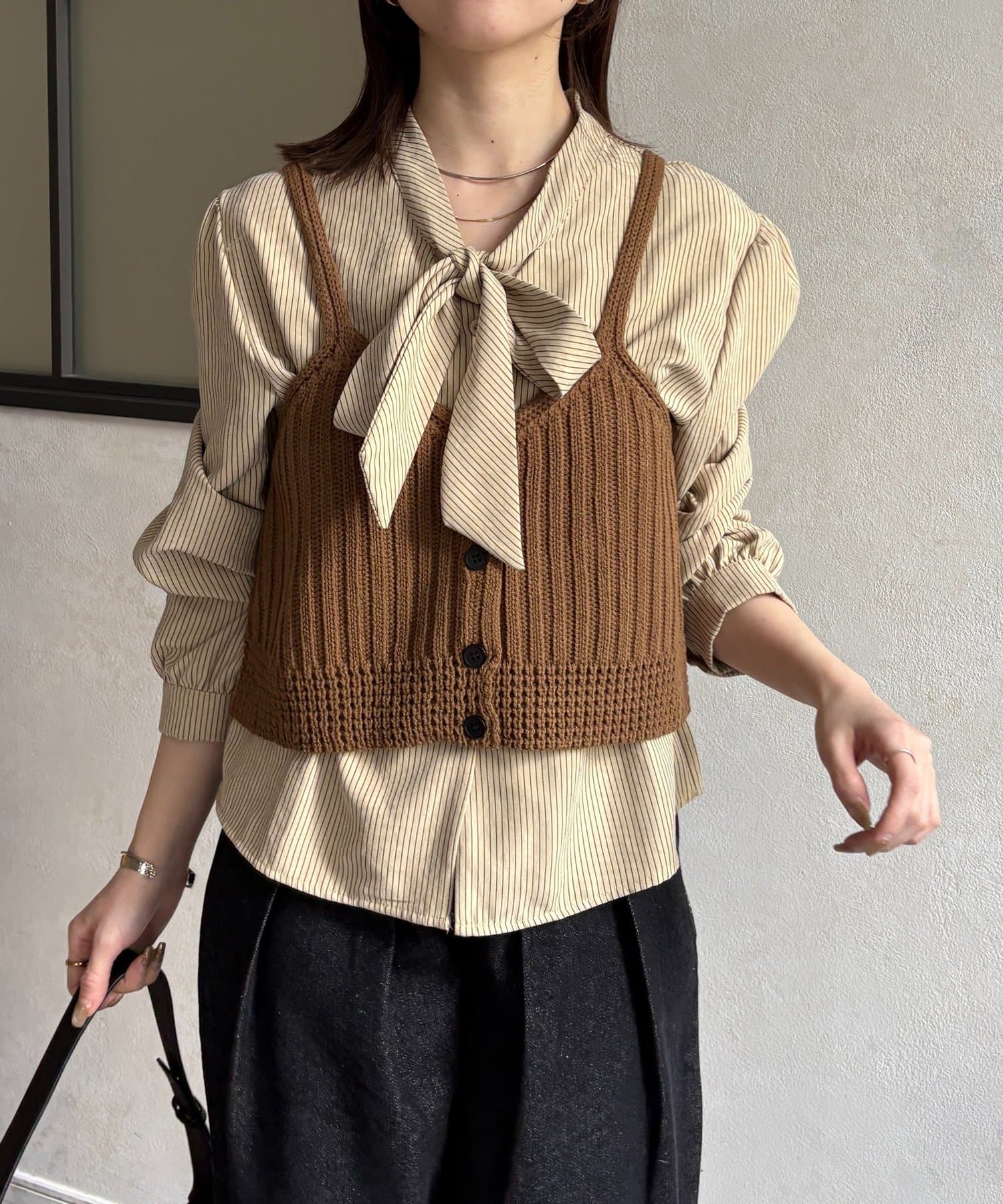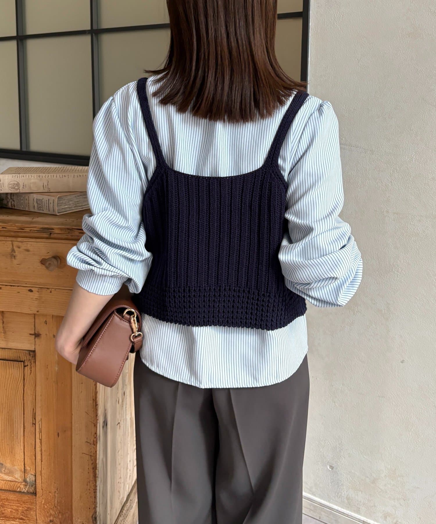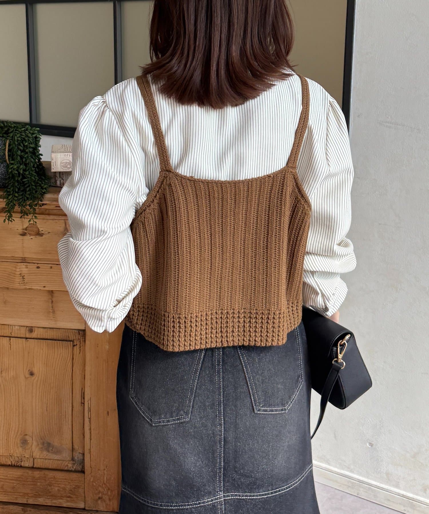 ・ビスチェの編地がコーデにメリハリをプラス
