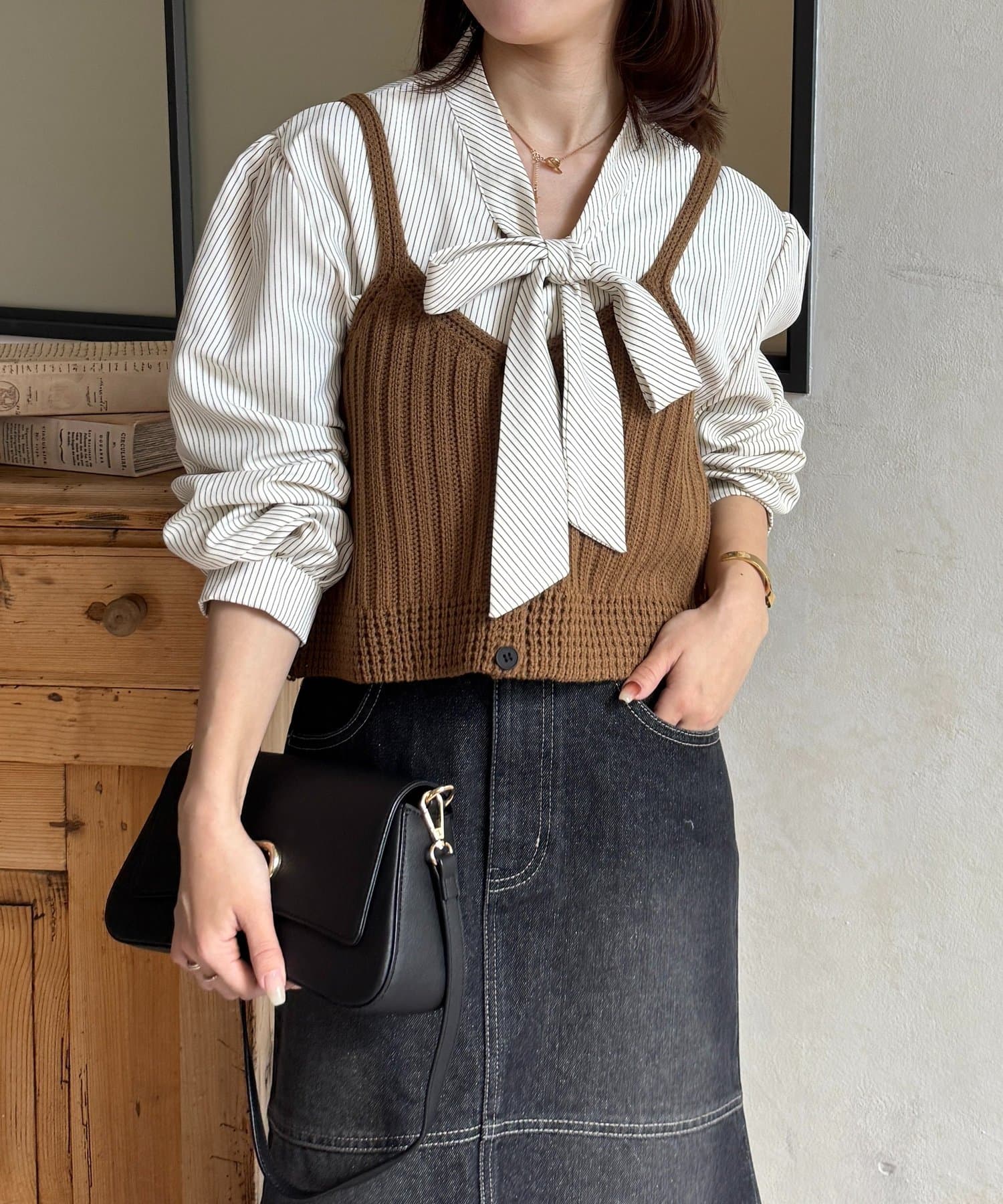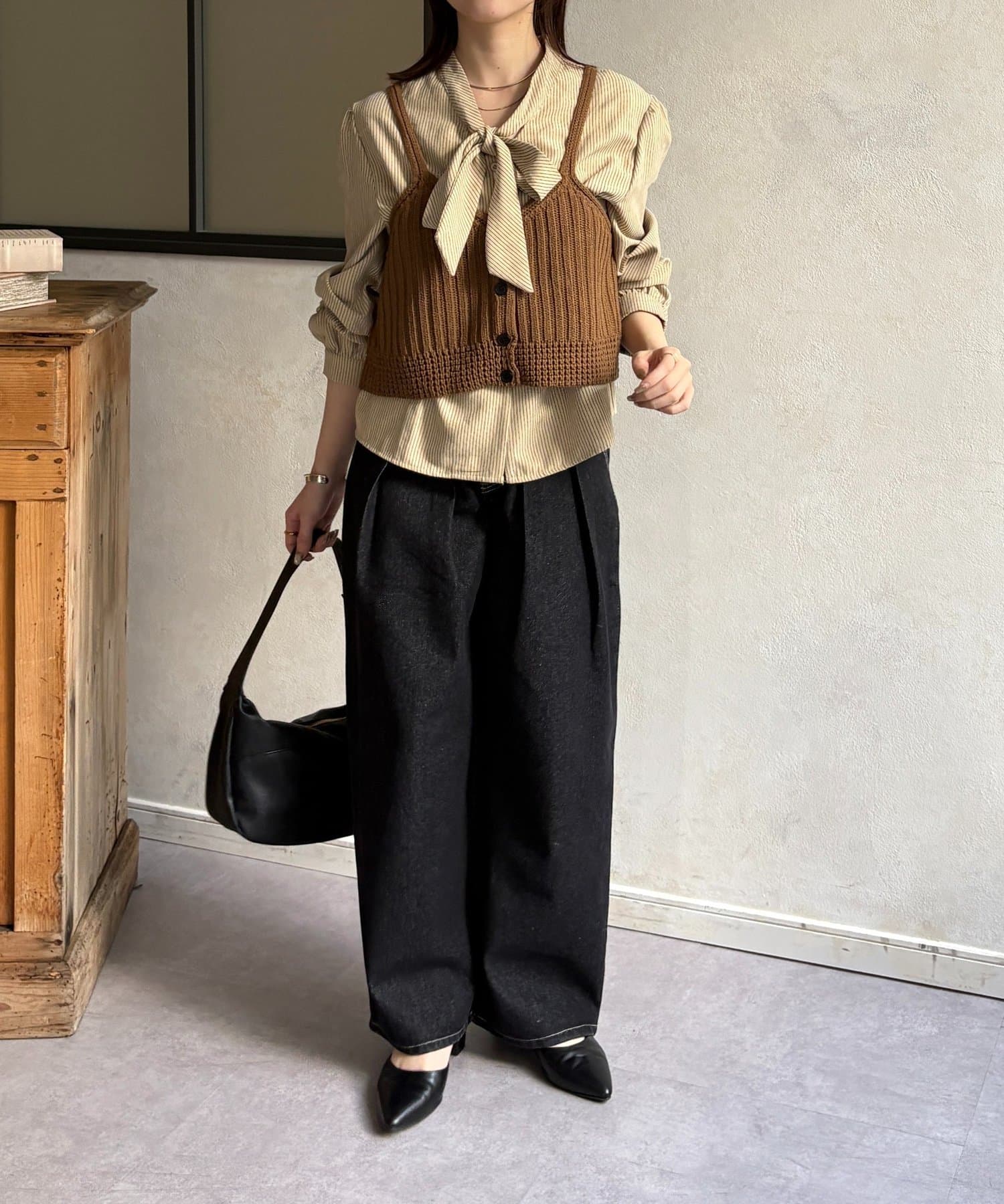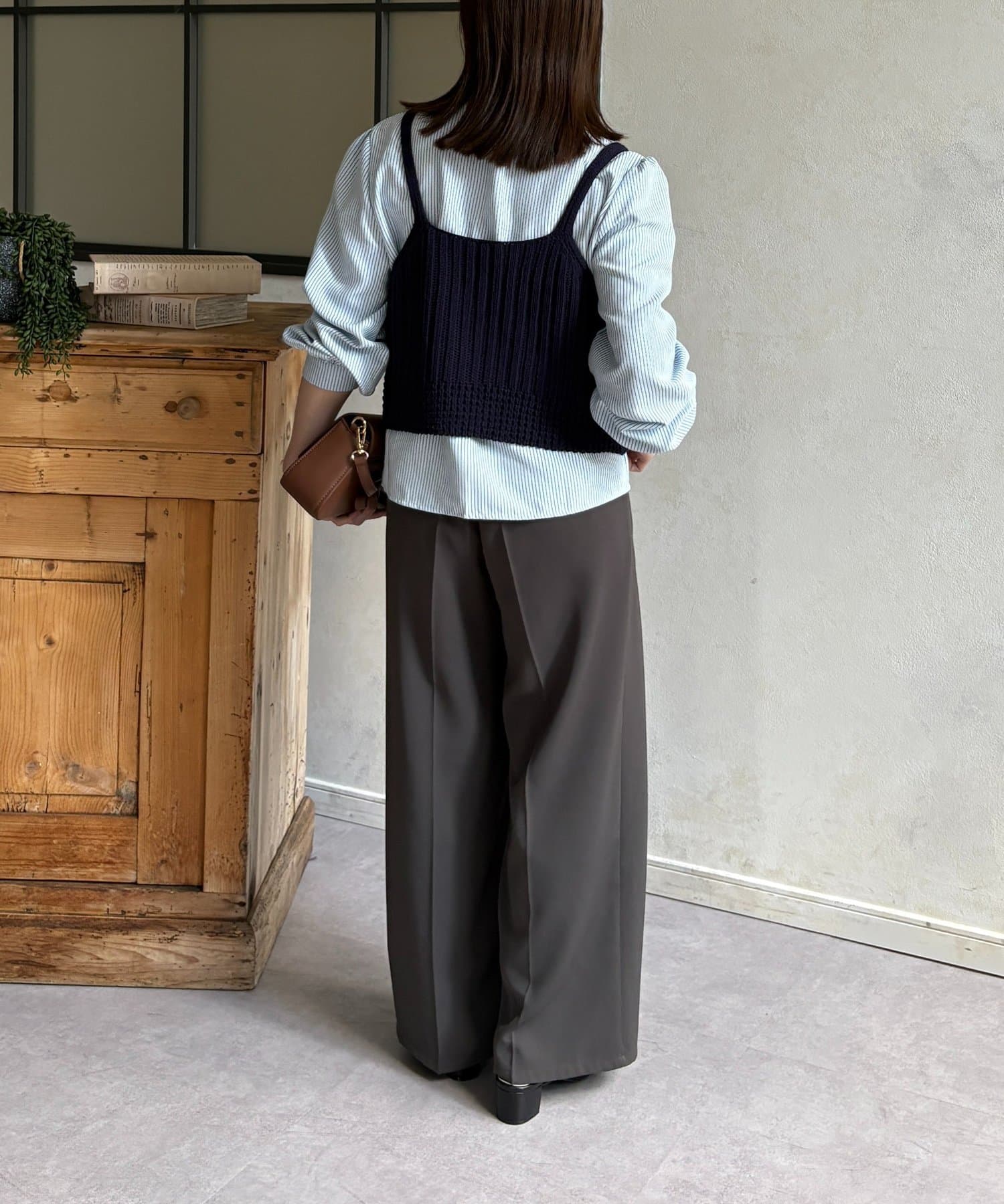 ・ビスチェの編地がコーデにメリハリをプラス