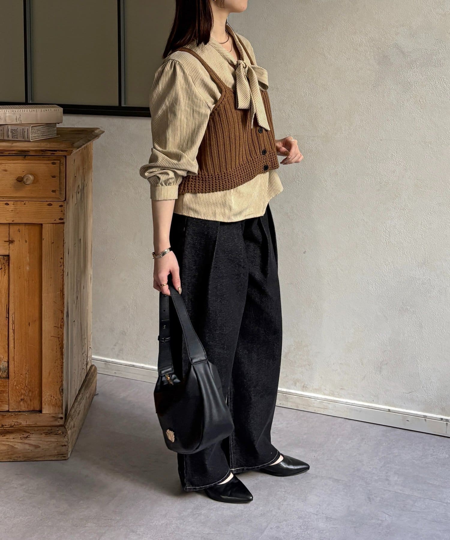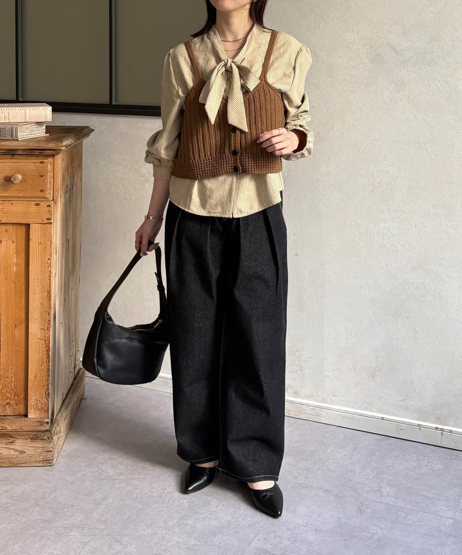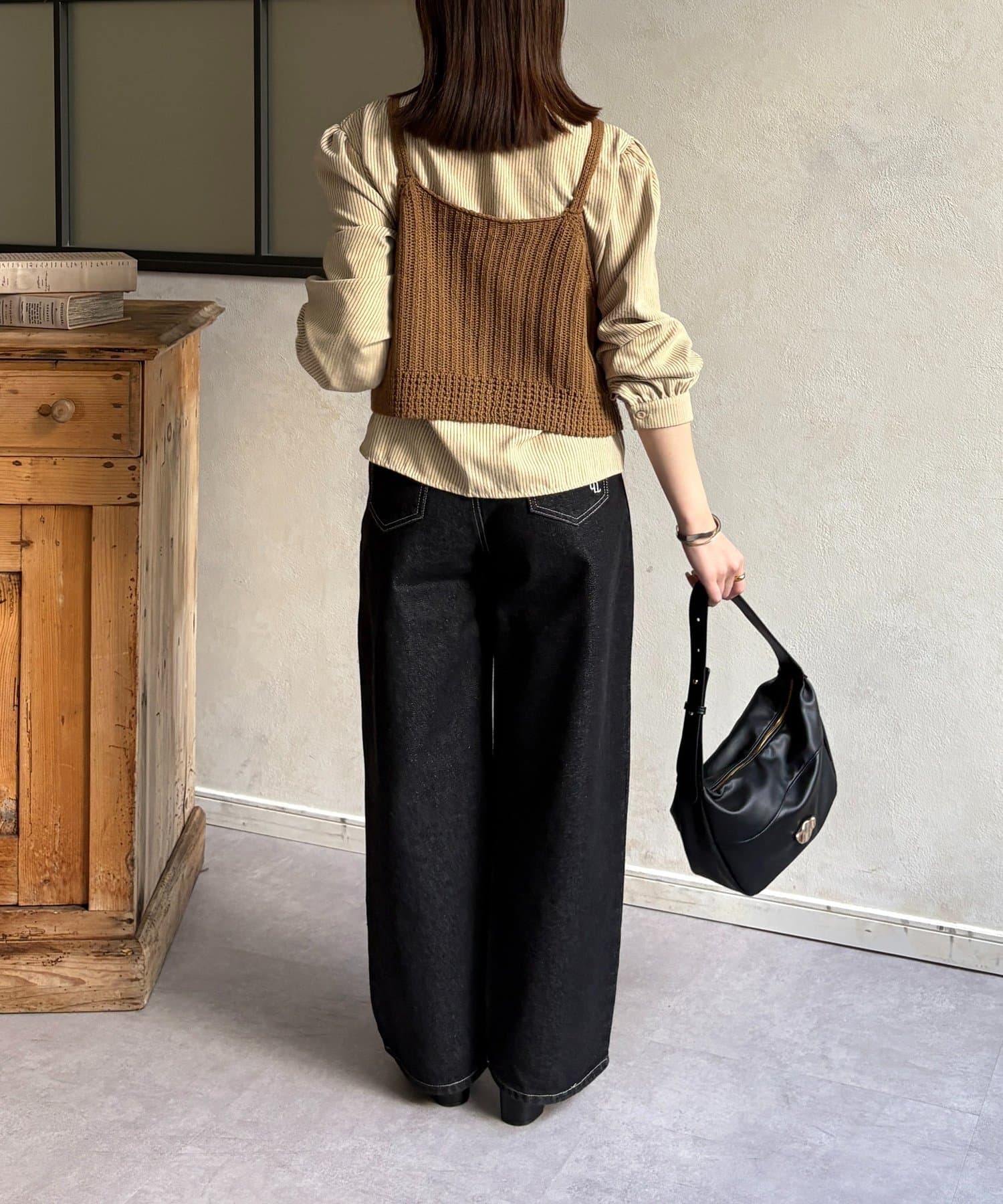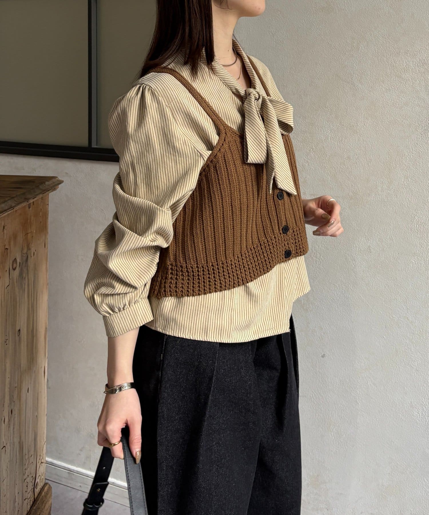 ・ビスチェの編地がコーデにメリハリをプラス