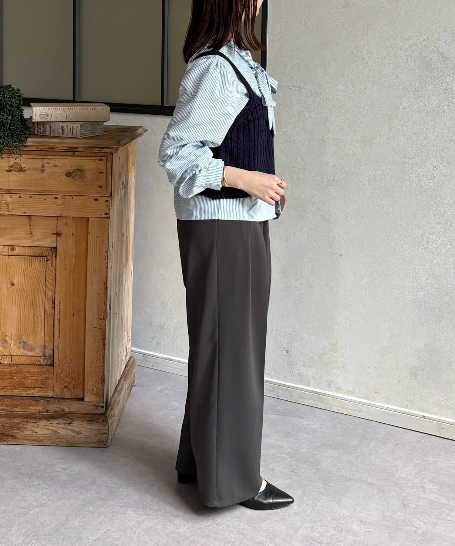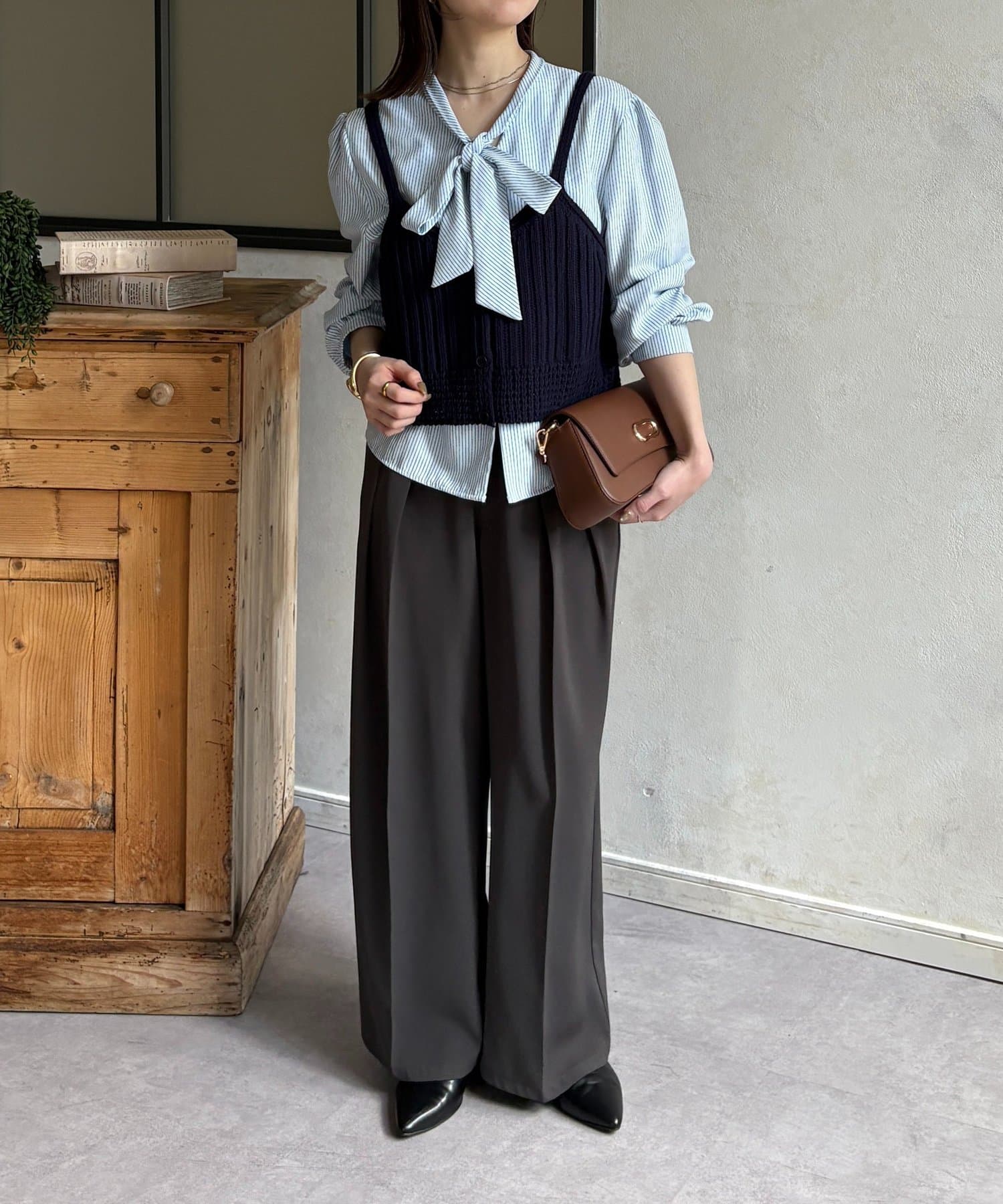 ・ブラウスとビスチェに、スラックスを合わせて、オフィスにも