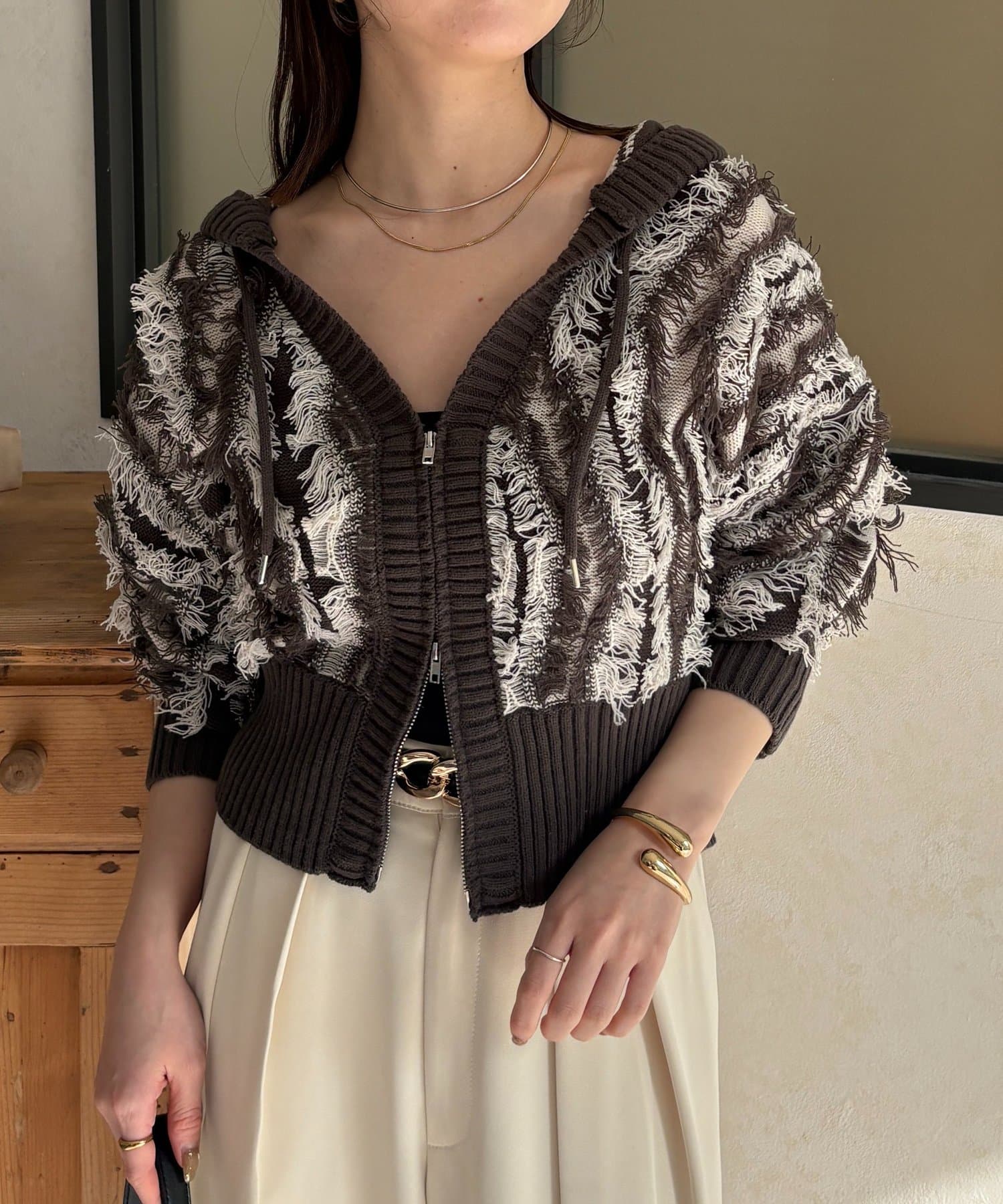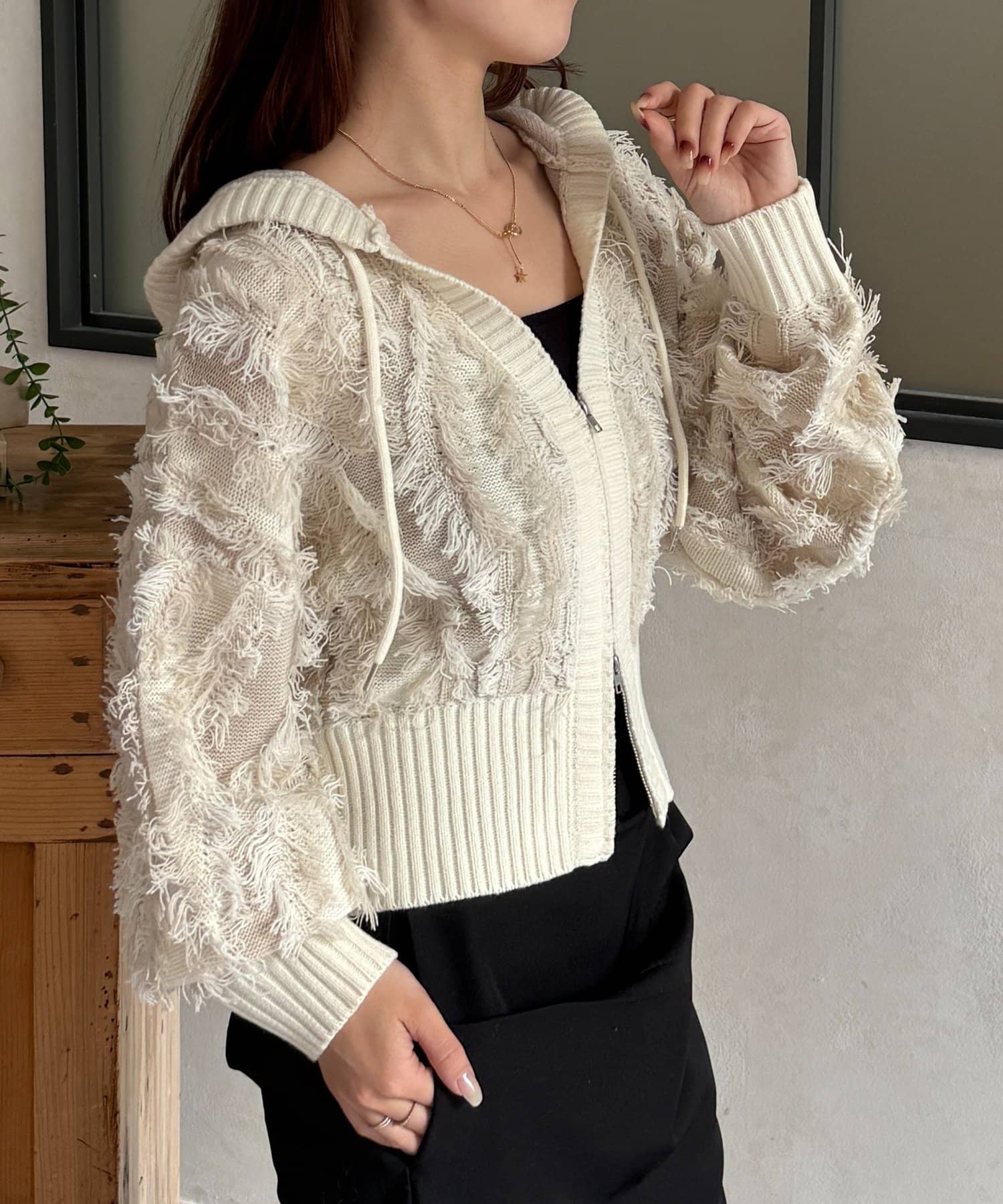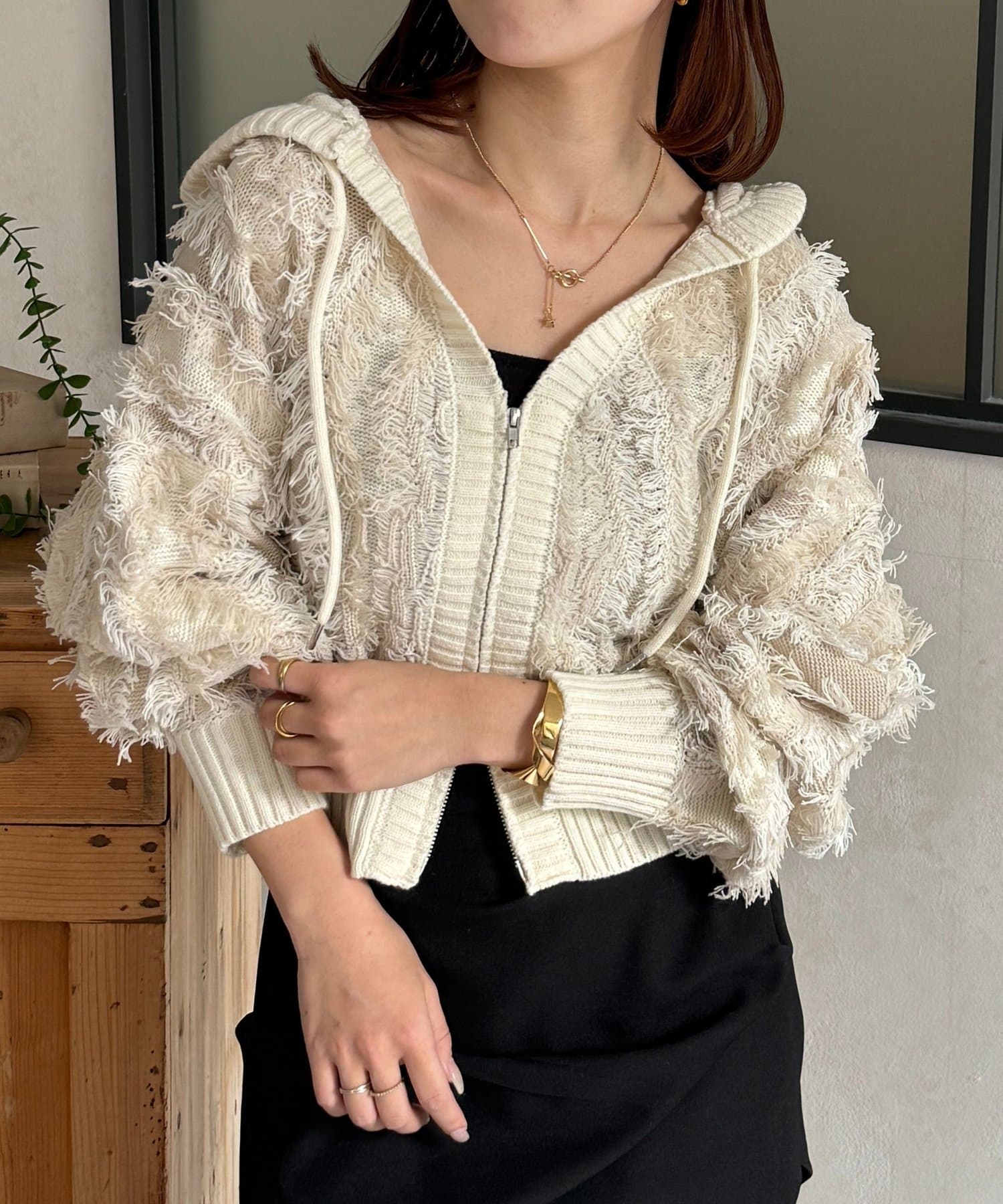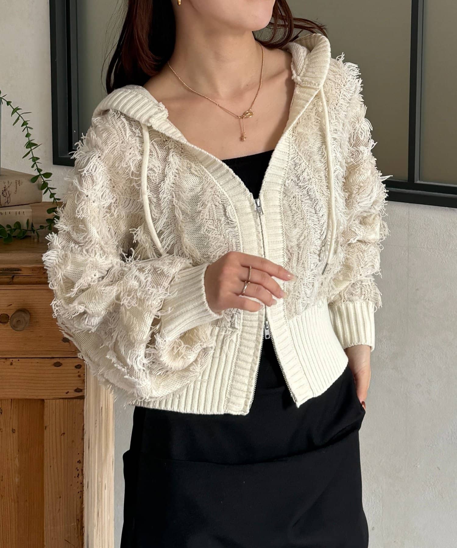 TOP > Thevon. > レディース > トップス > カーディガン/ボレロ > フリンジWジップフードカーディガン