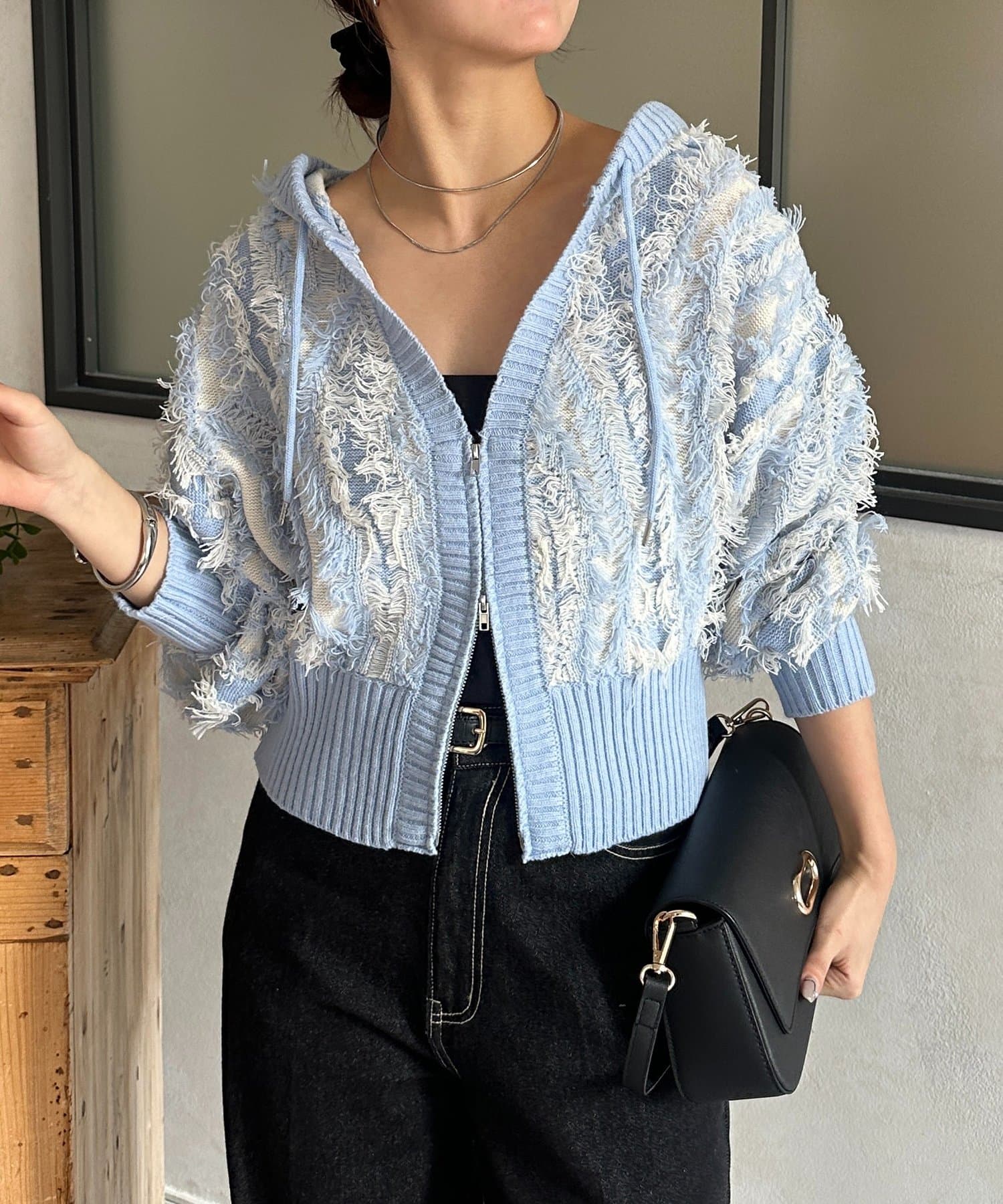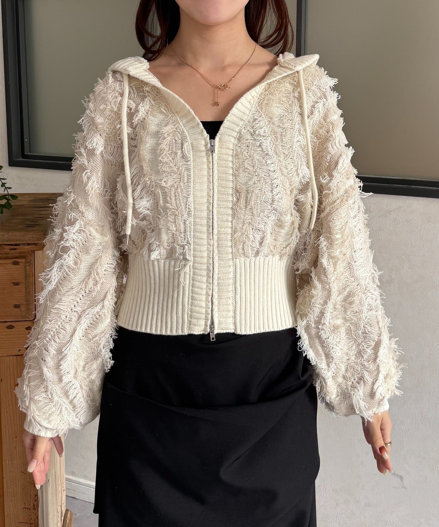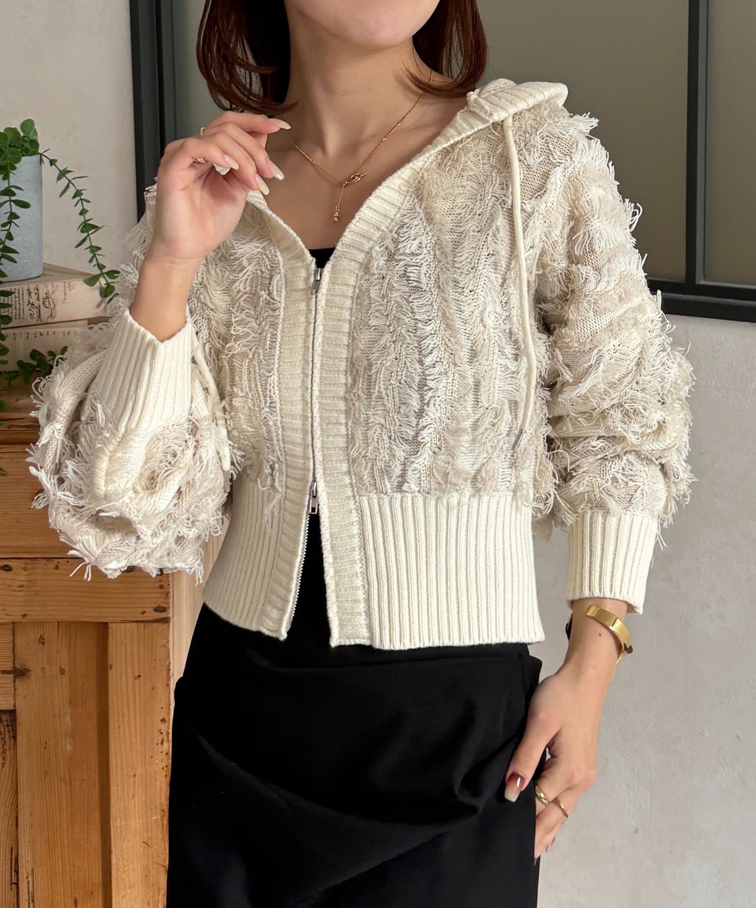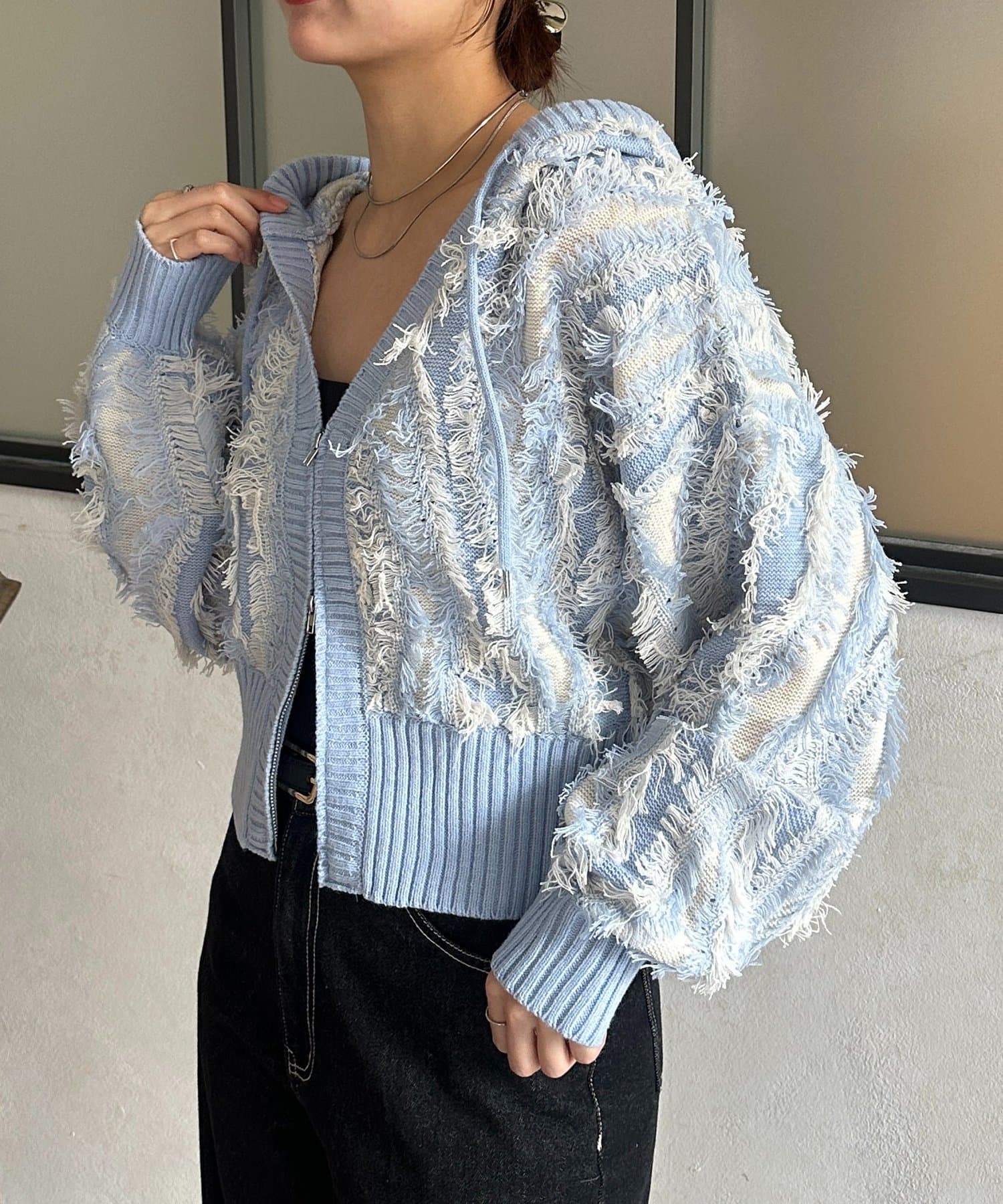 TOP > Thevon. > レディース > トップス > カーディガン/ボレロ > フリンジWジップフードカーディガン