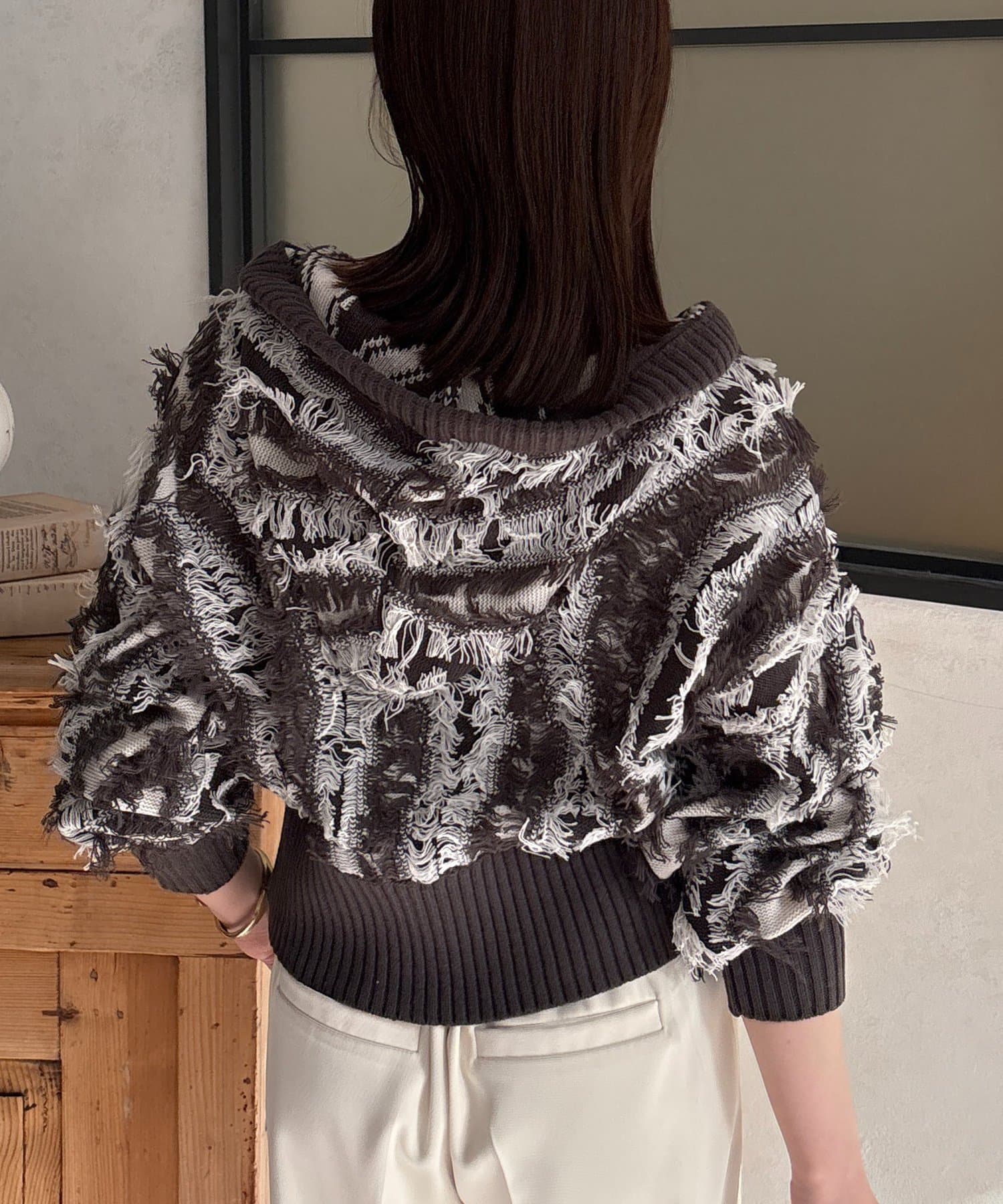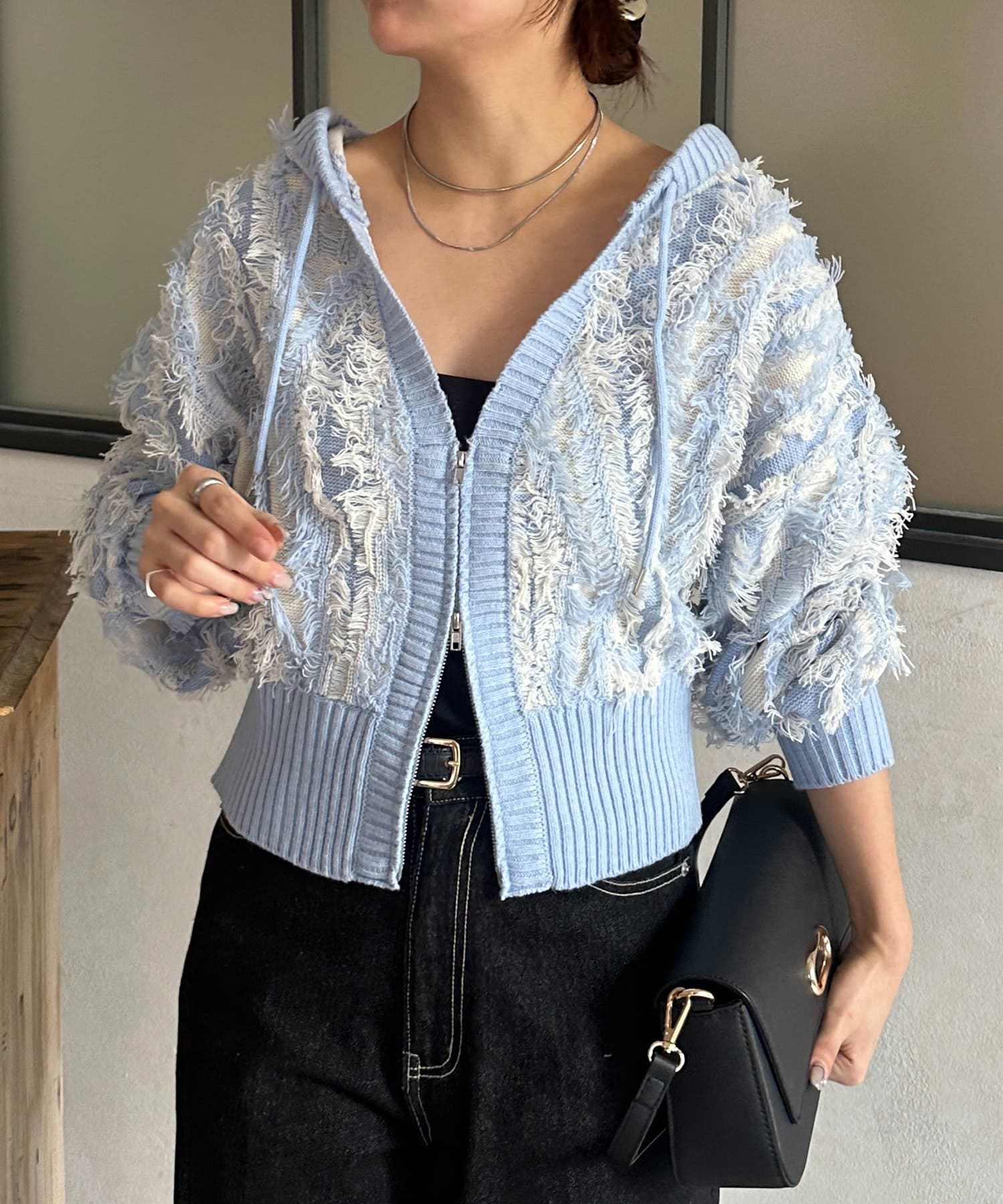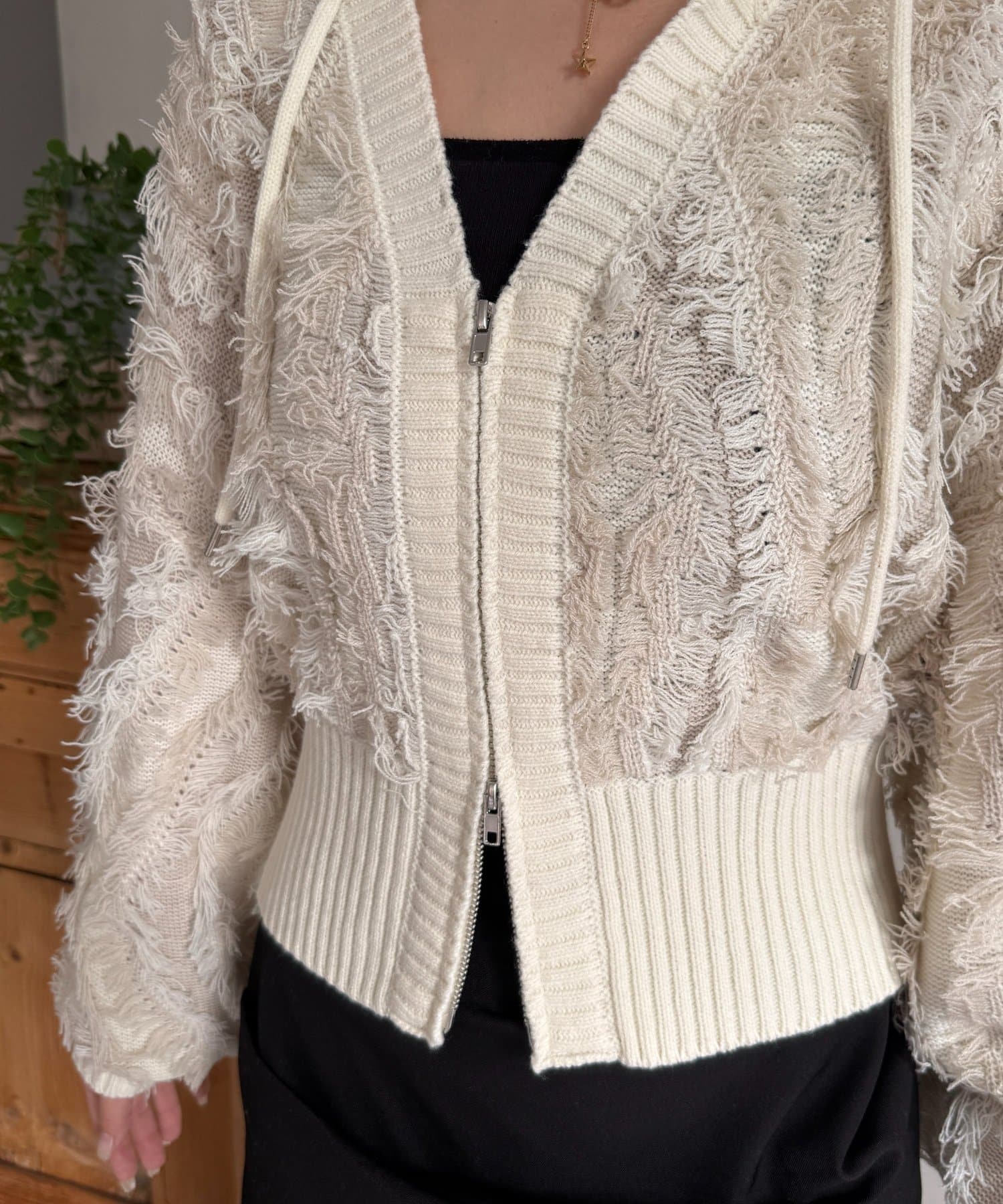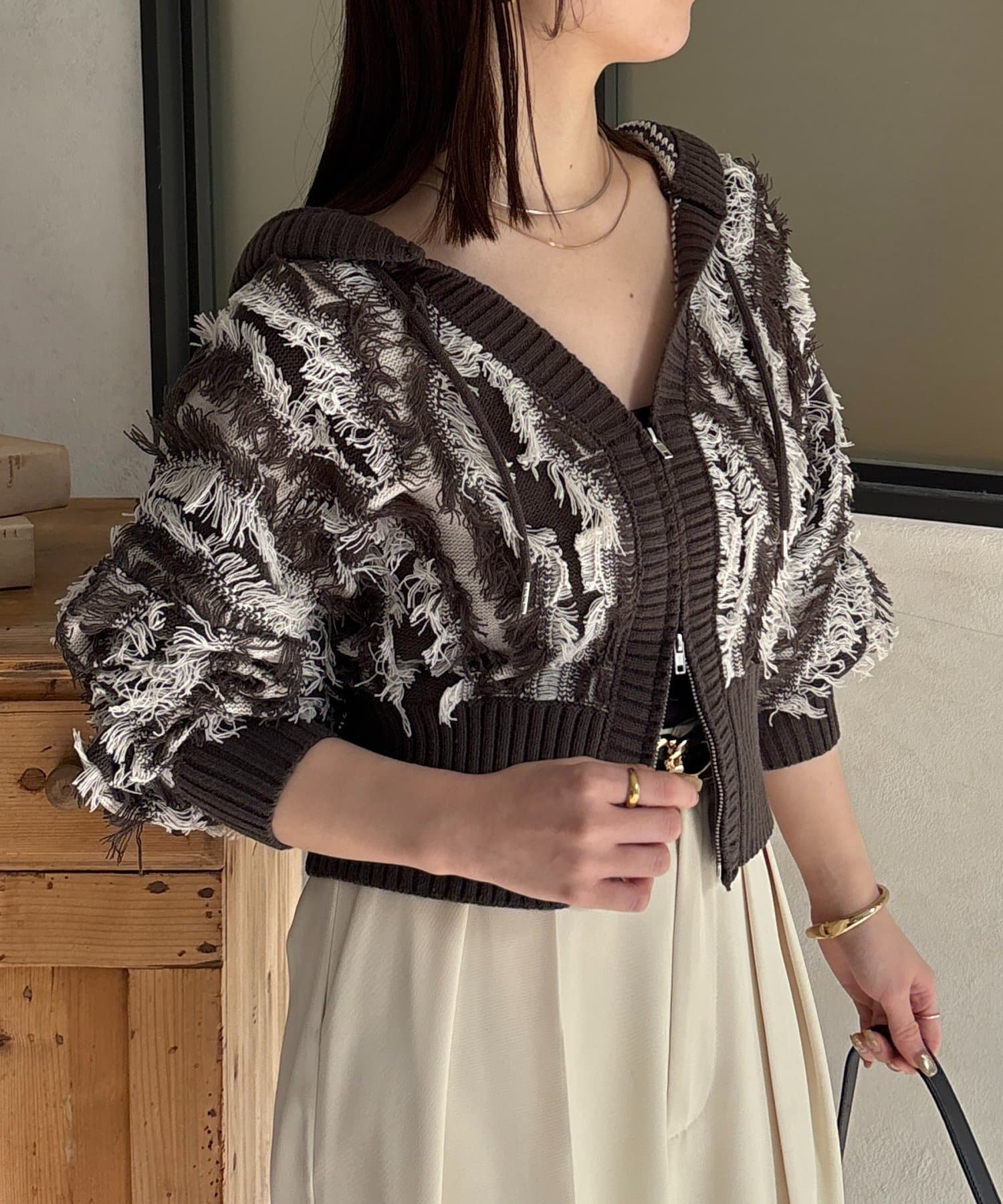 TOP > Thevon. > レディース > トップス > カーディガン/ボレロ > フリンジWジップフードカーディガン