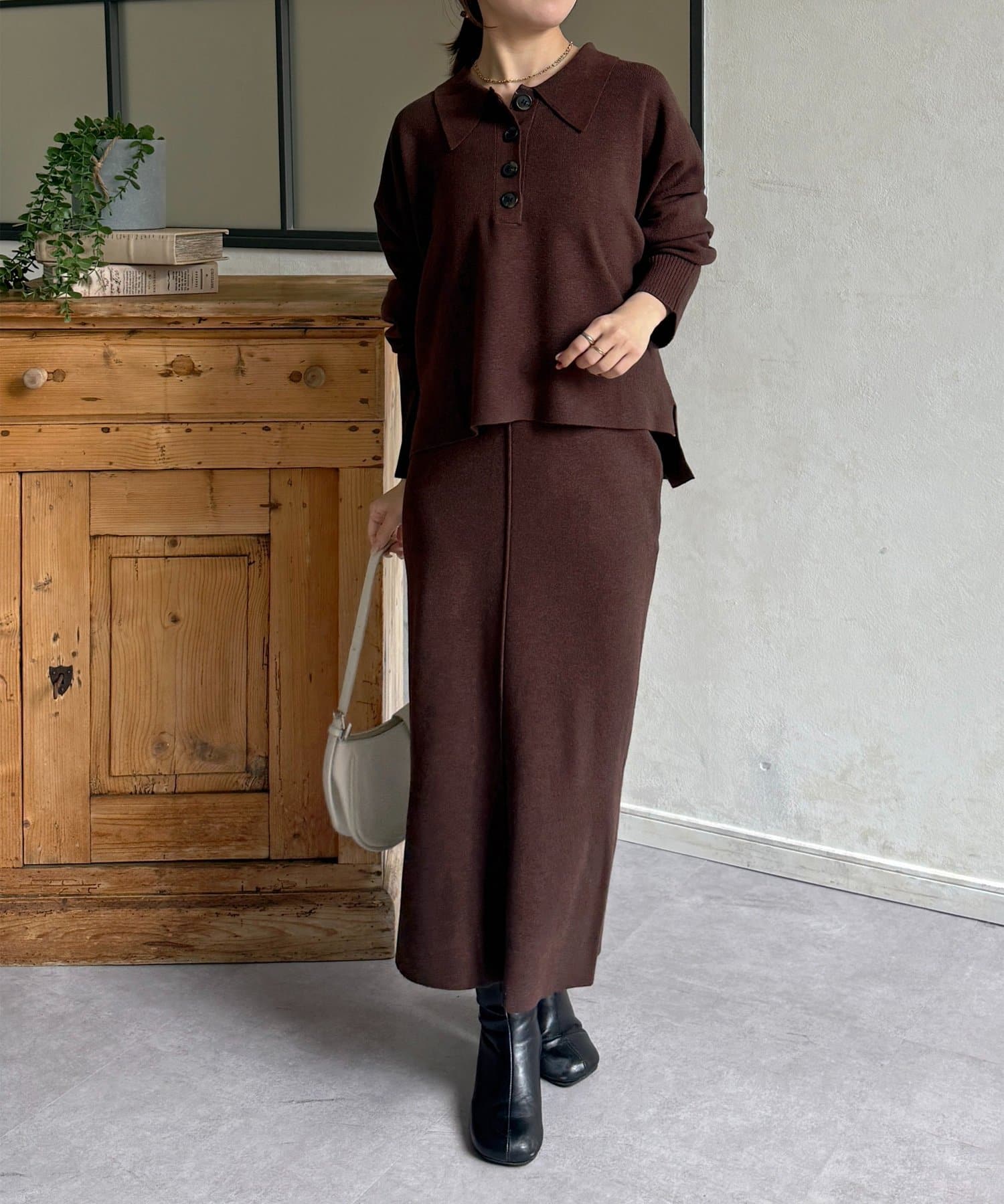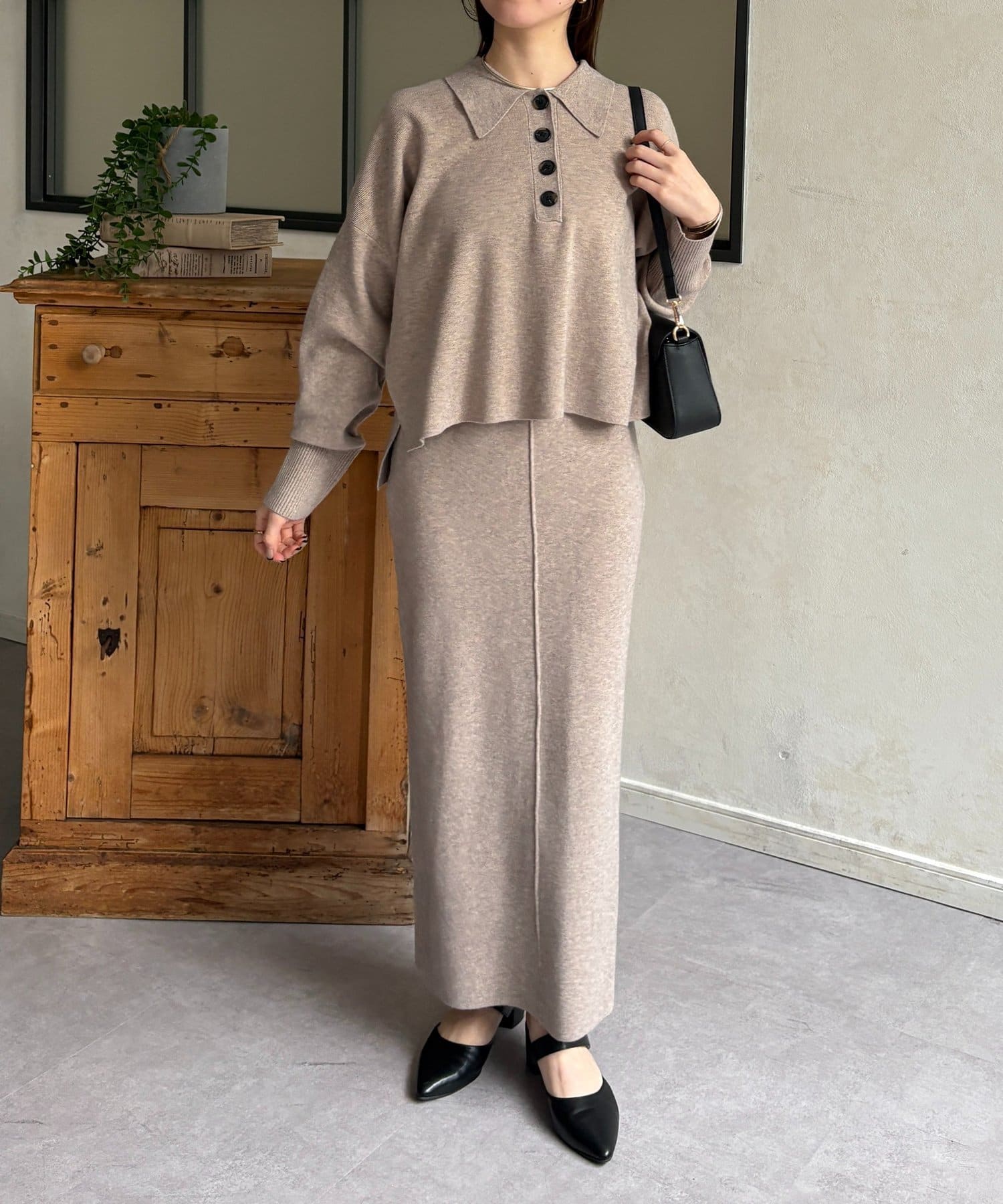 • Thevon.(ゼヴォン) 襟付きニットスカート/セットアップ