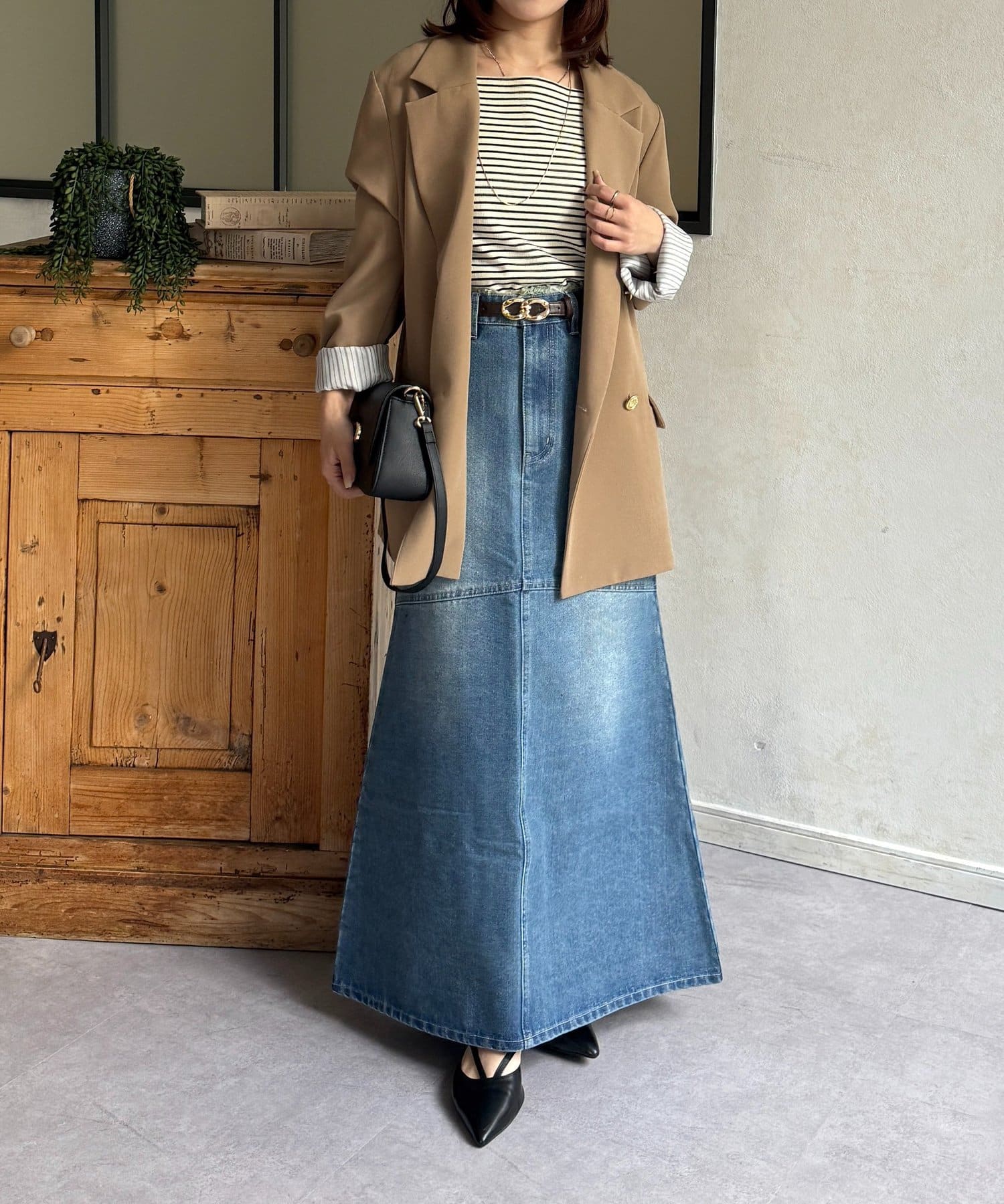 ・カジュアルにもきれいめにも着こなせるデニム素材