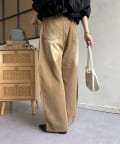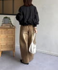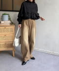 ・ブラウスやシャツをタックインして、ベルトでウエストマーク。