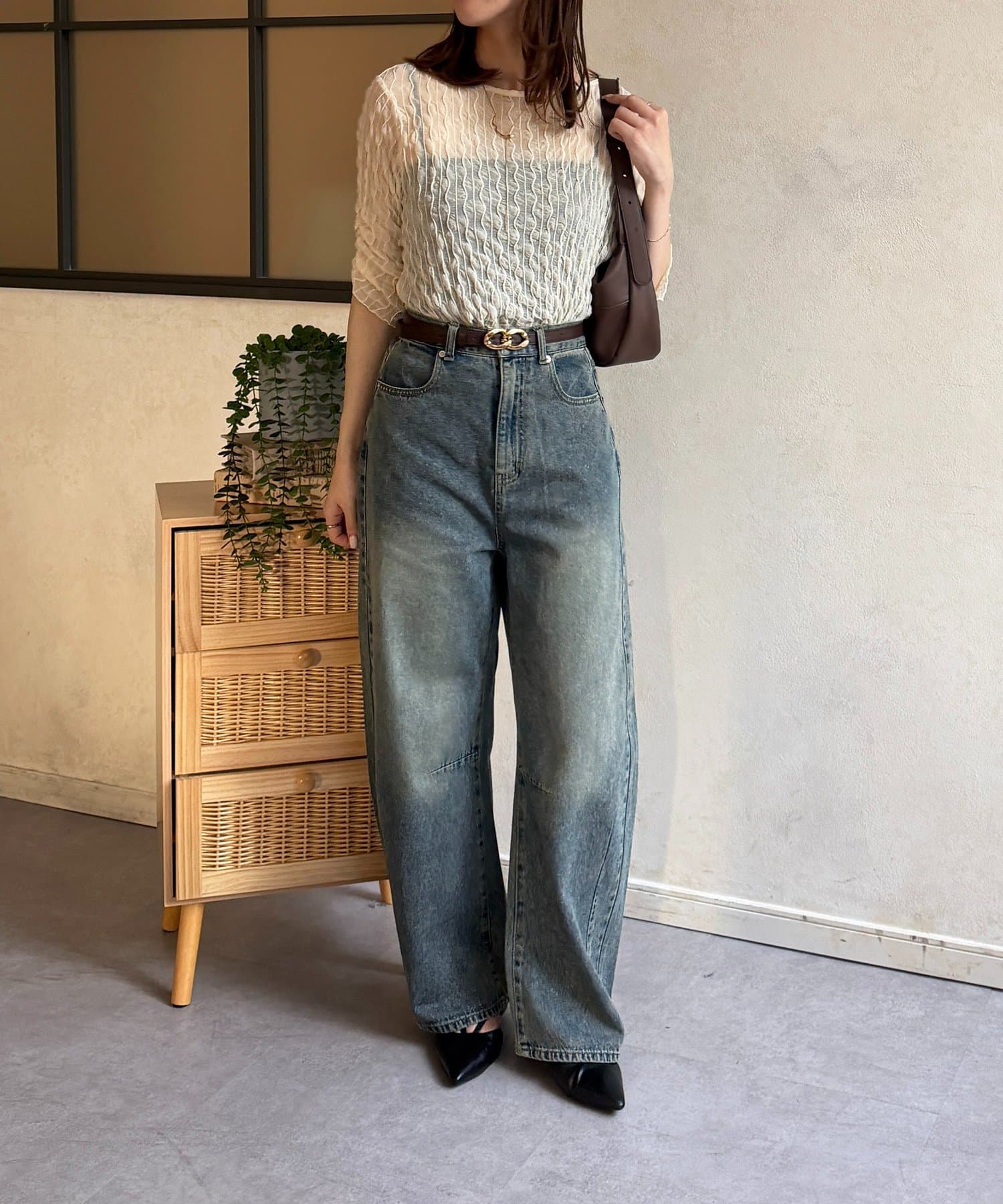 #デニム#パンツ#カーブデニム#オーバーダイデニム#着回し#カジュアル#おでかけ