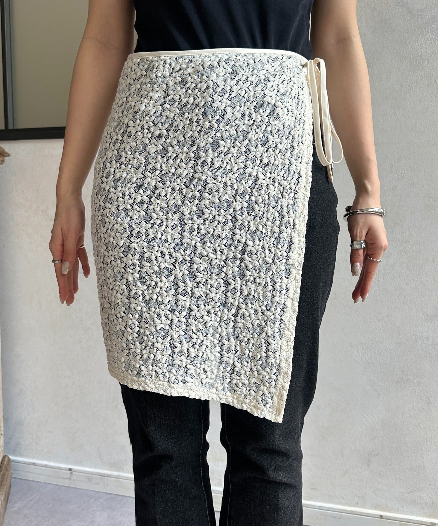 Thevon.(ゼヴォン) レースラップスカートレイヤードパンツ