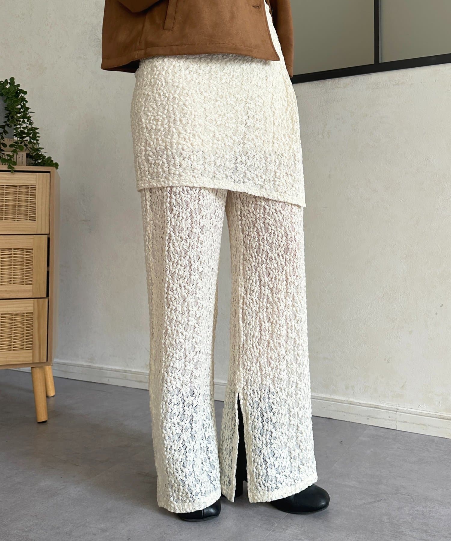 • Thevon.(ゼヴォン) レースラップスカートレイヤードパンツ