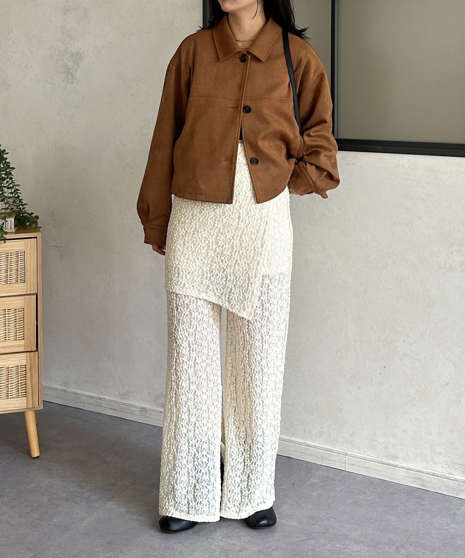 ・ ラップスカートがポイントになるパンツなので、