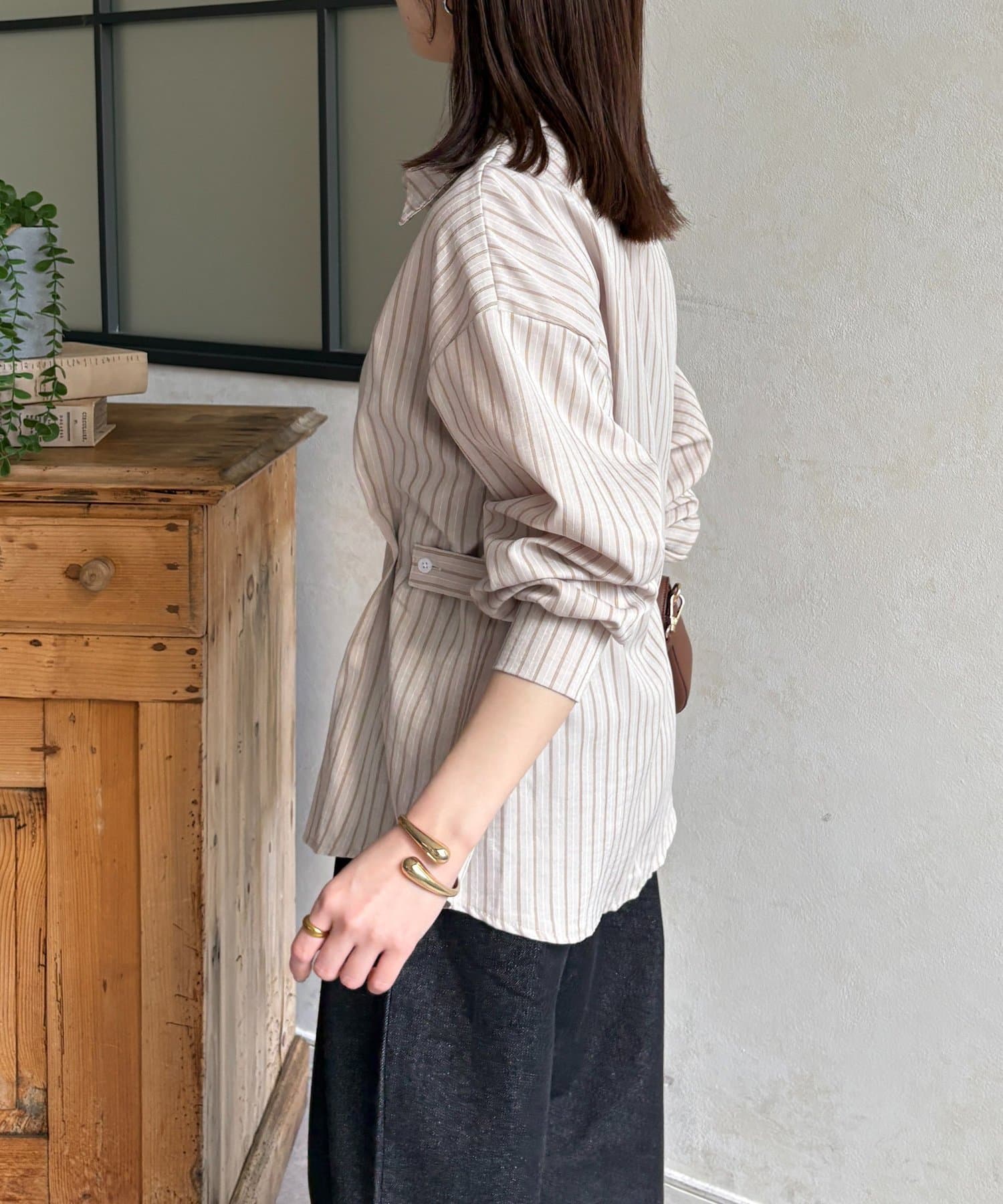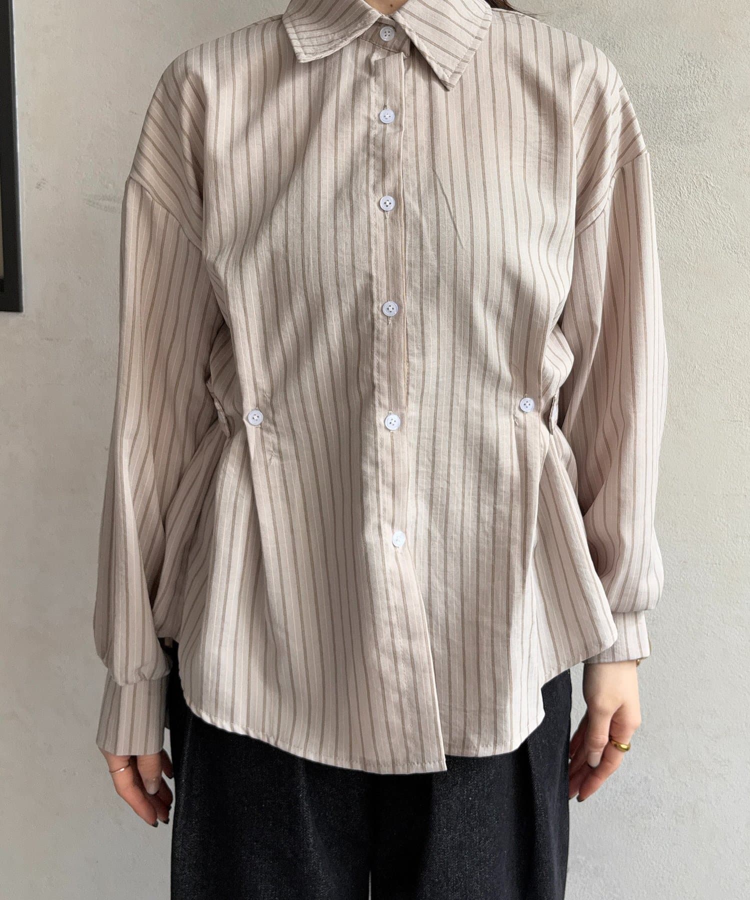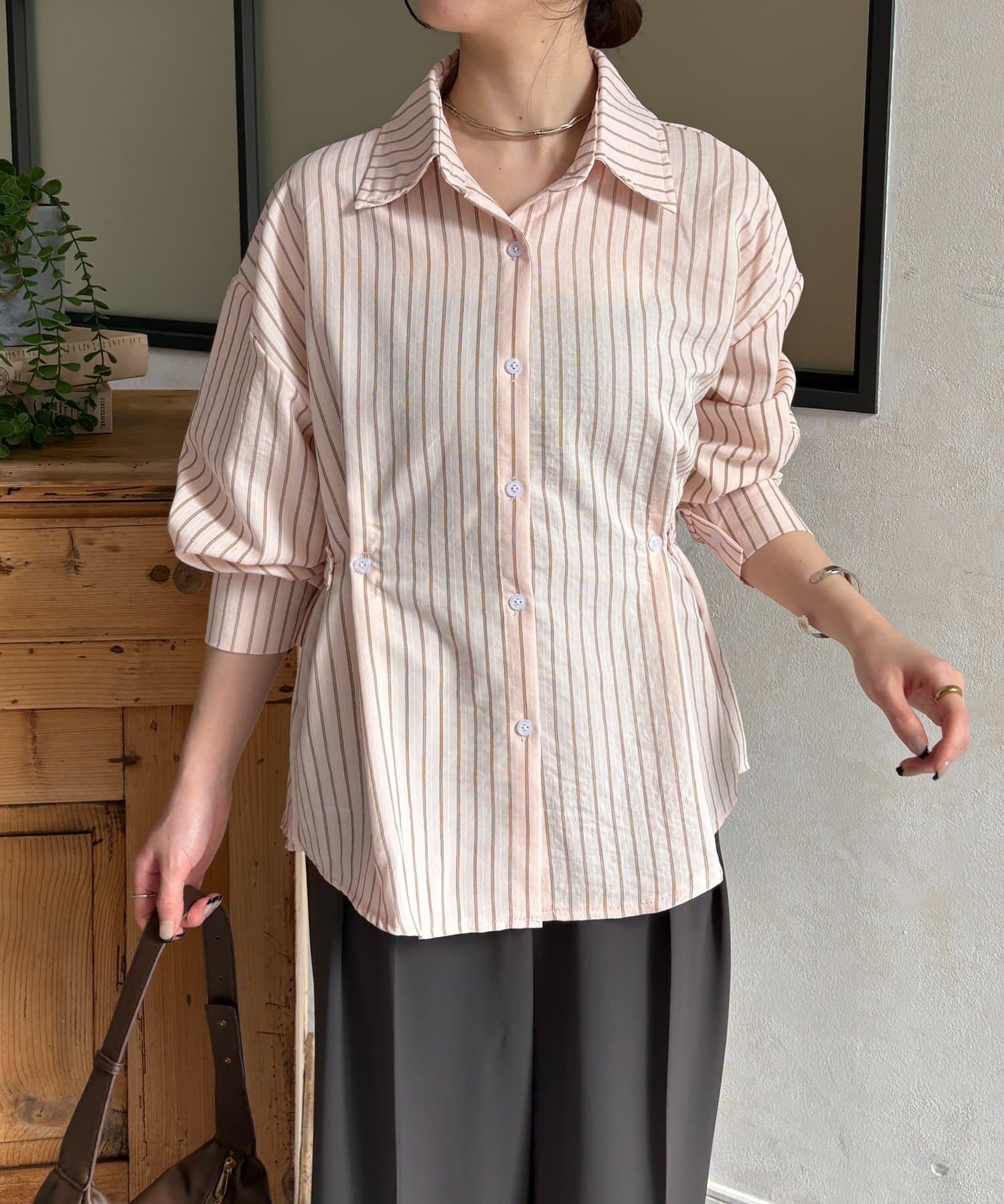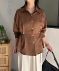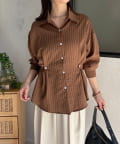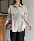 ウエストベルトストライプシャツ