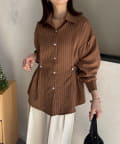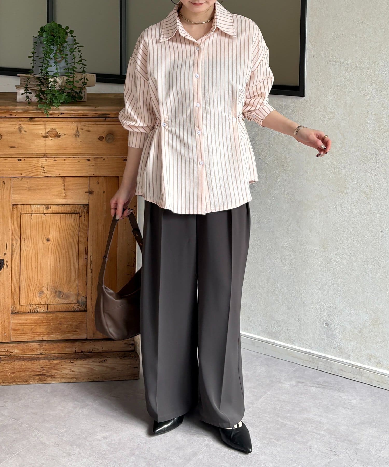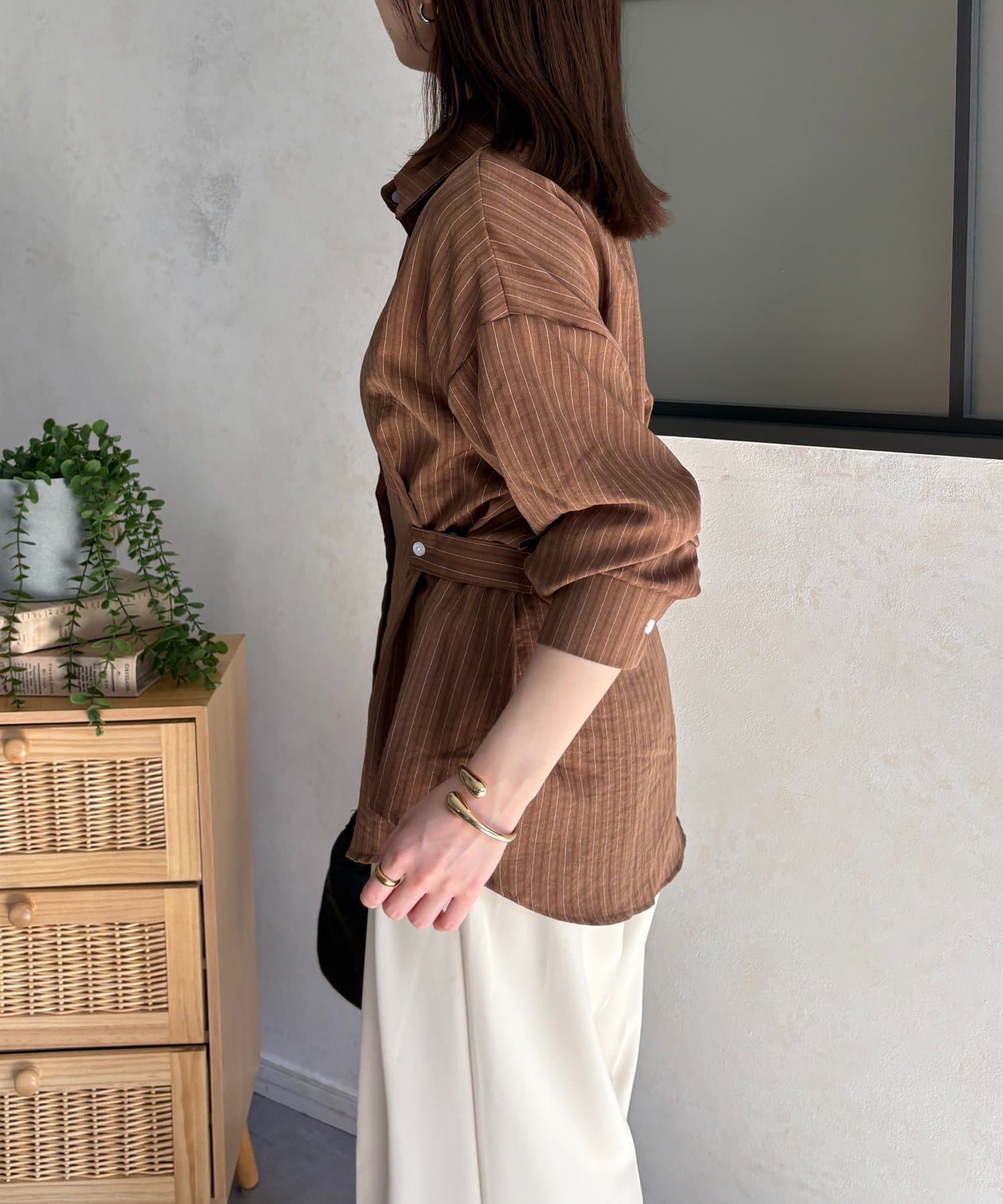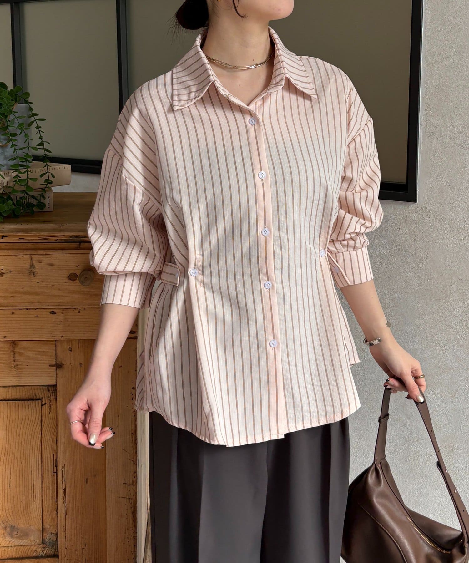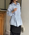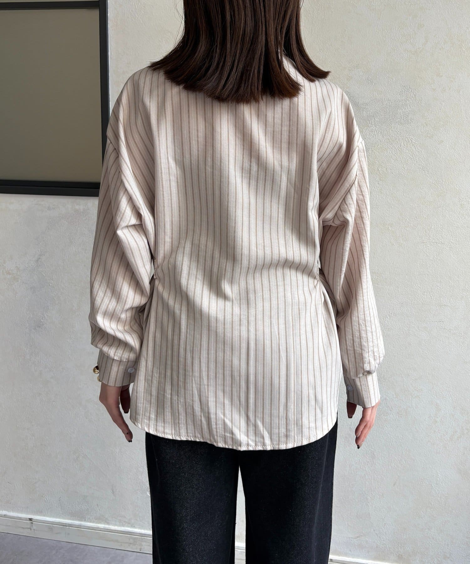 ウエストベルトストライプシャツ