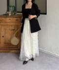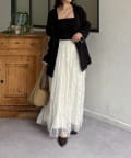 ・ブラウスとフレアスカートを合わせて、オフィスにもぴったりの上品スタイルに。