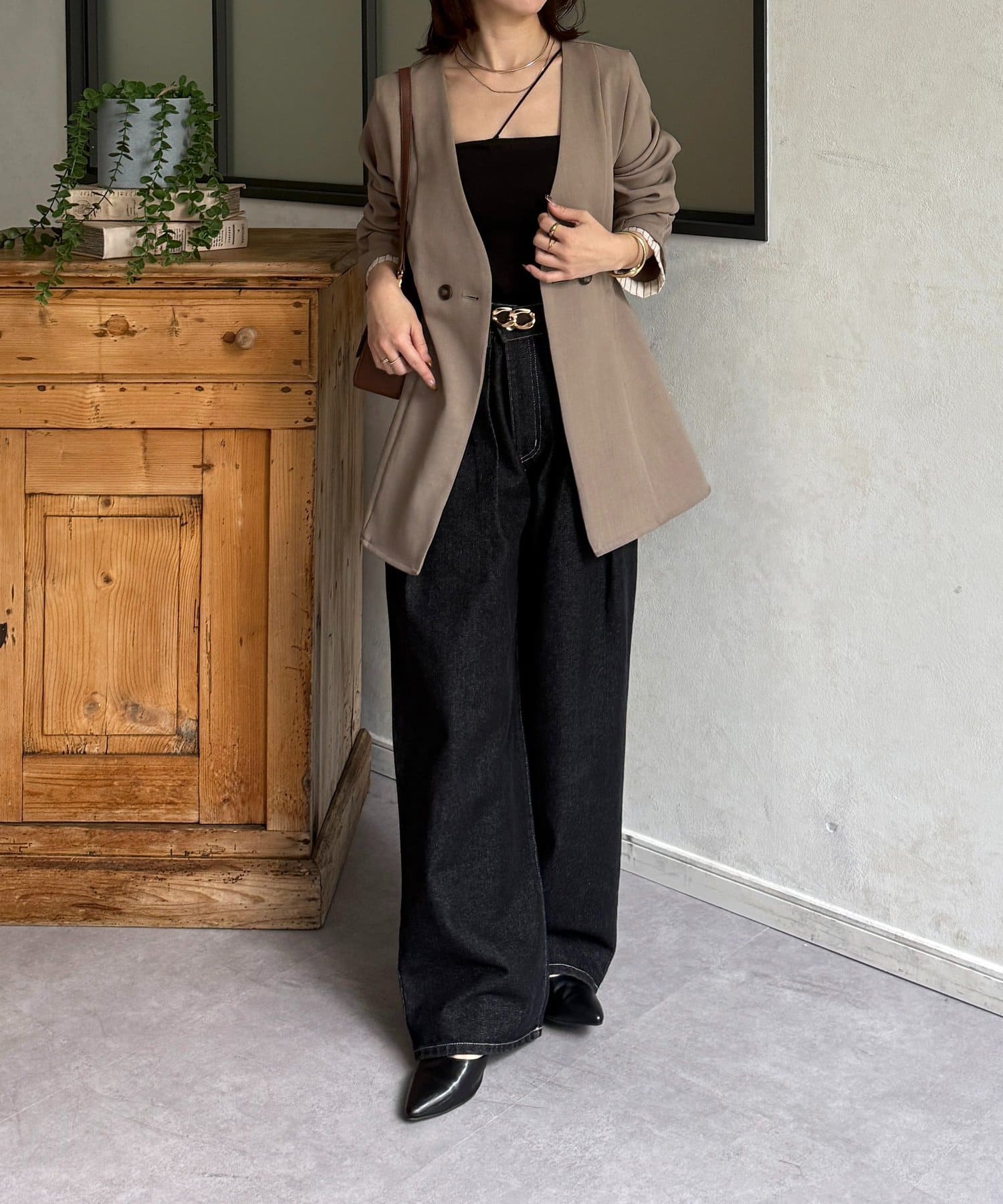 ・デニムとTシャツに羽織って、カジュアルだけど女性らしいスタイルに。