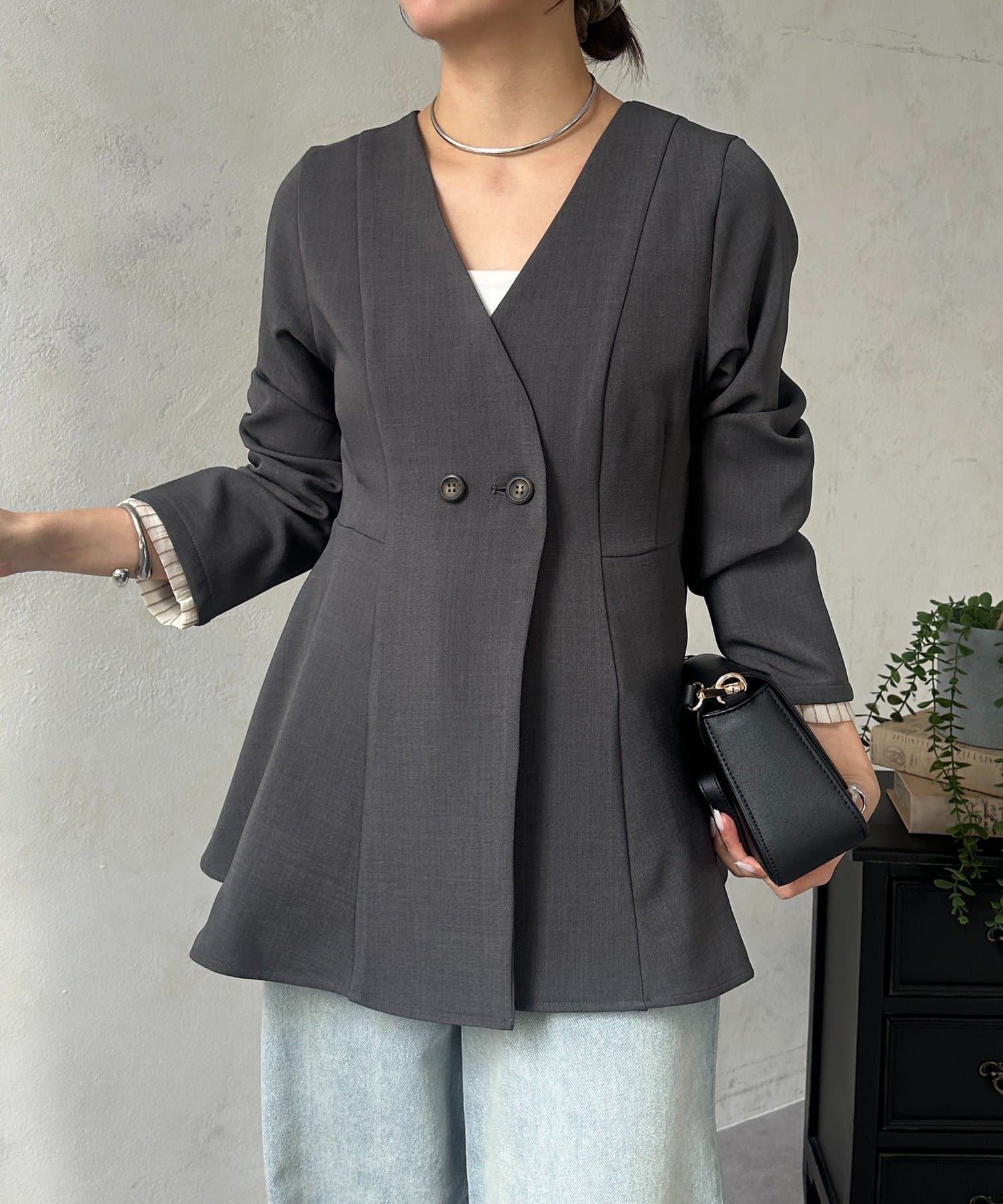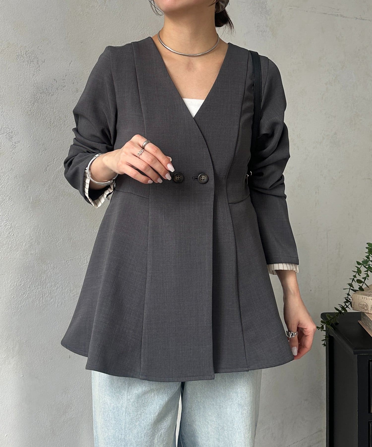 TOP > Thevon. > レディース > ジャケット/アウター > テーラードジャケット > Vネックペプラムジャケット