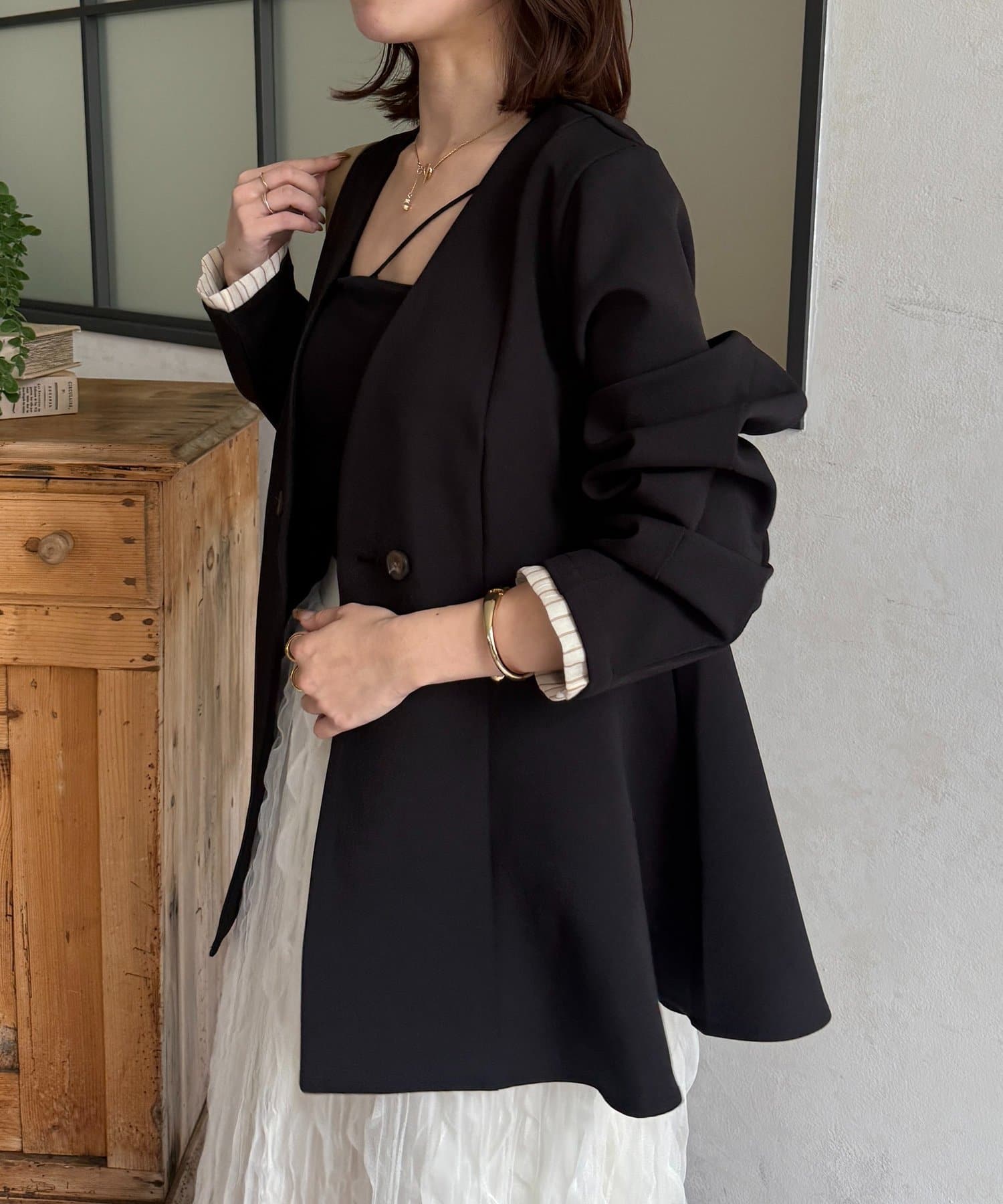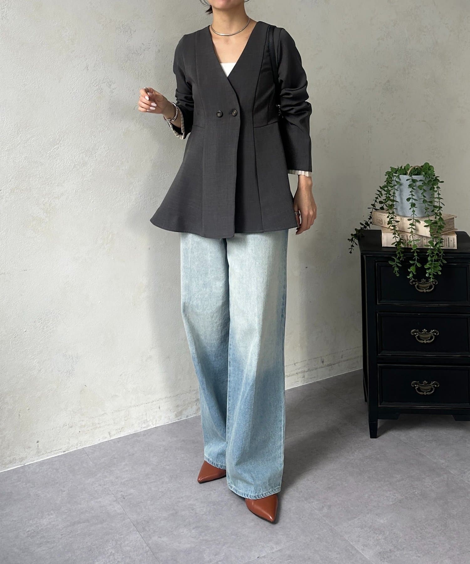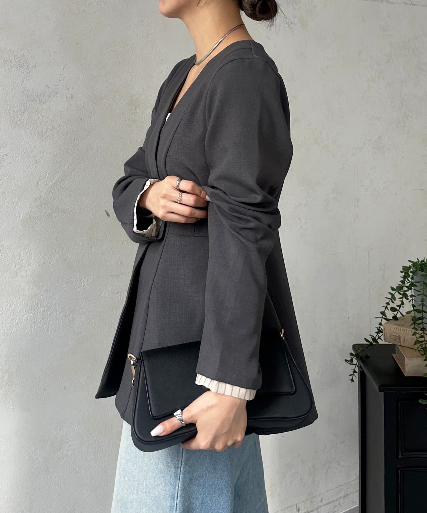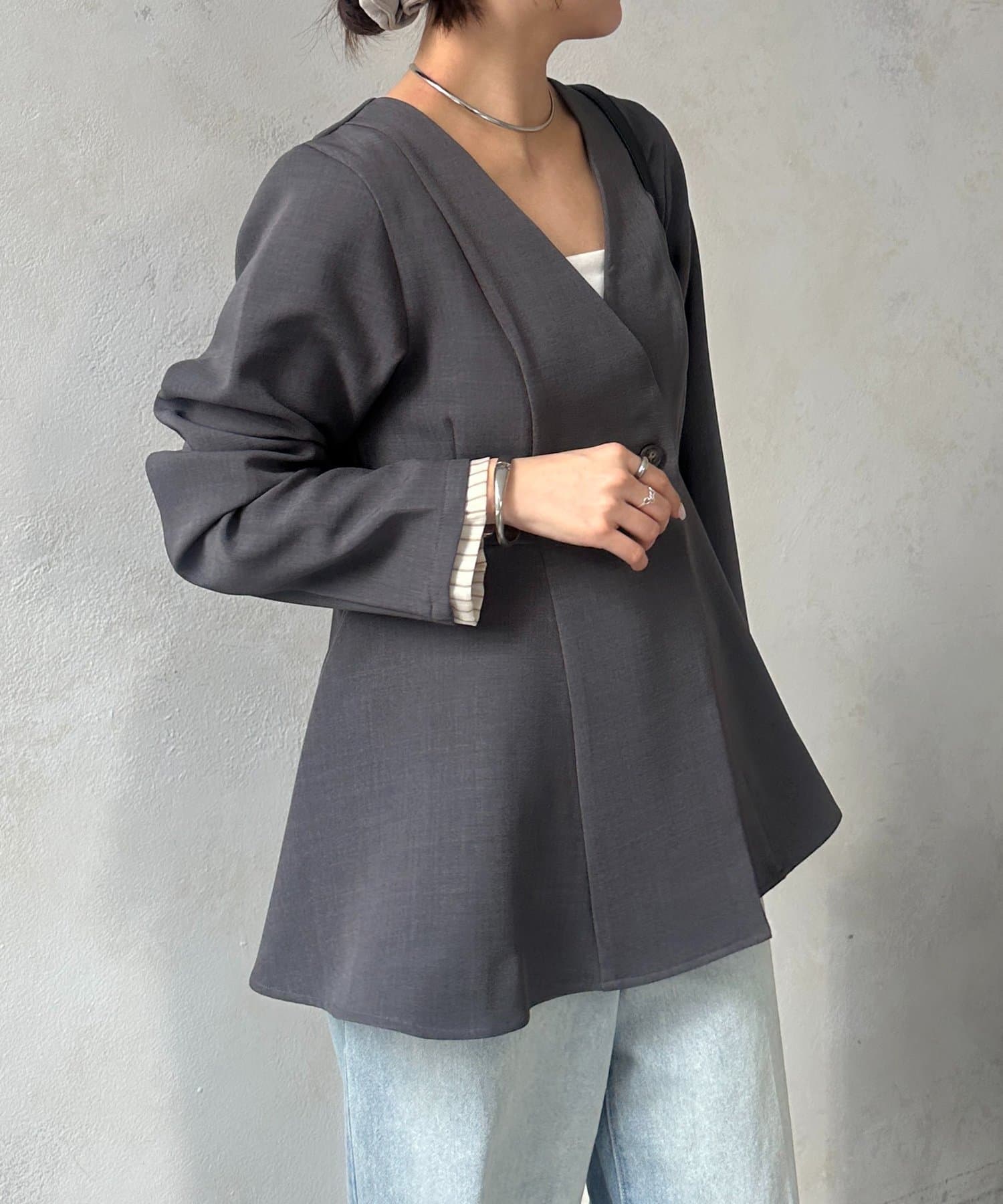 #ジャケット #Vネック#ペプラム #シンプル #着回し #きれいめ#カジュアル