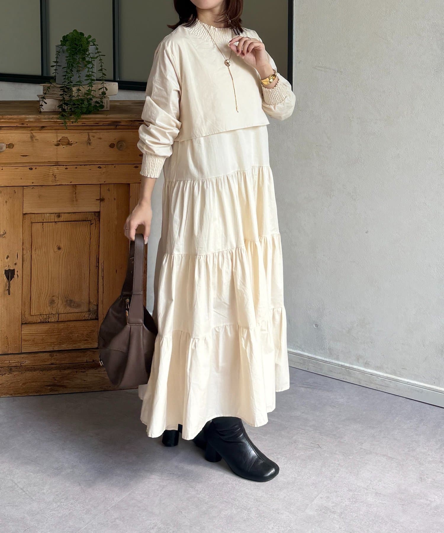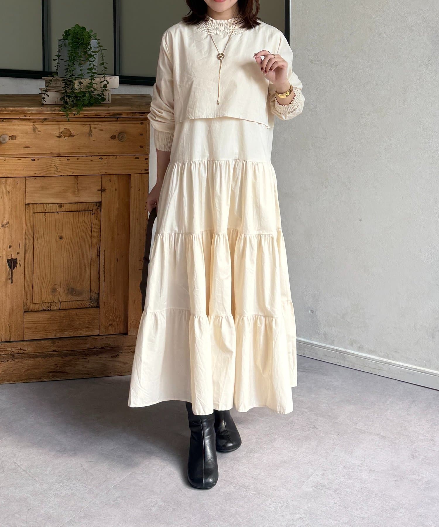 TOP > Thevon. > レディース > ワンピース > ワンピース > シャーリングネックティアードワンピース