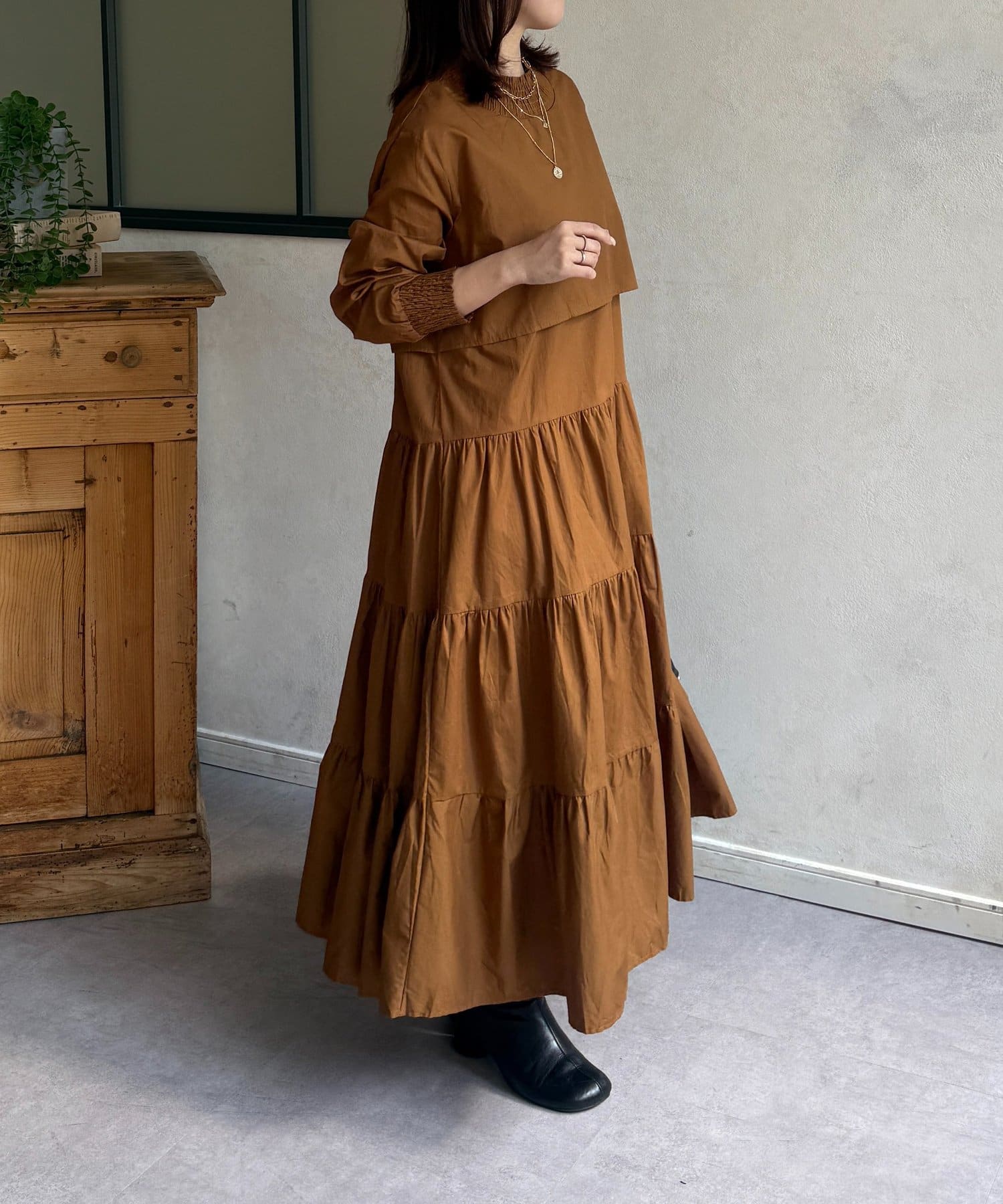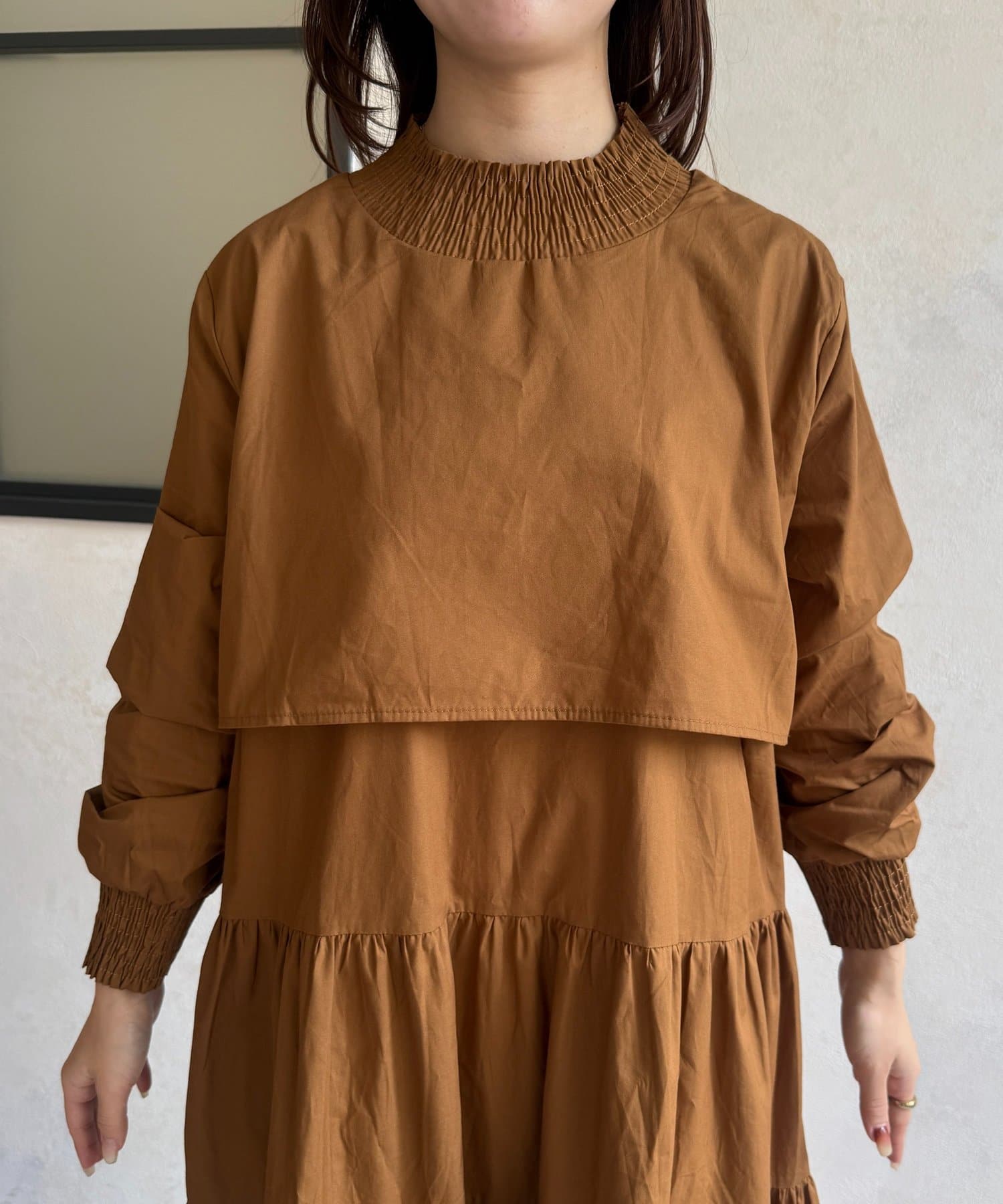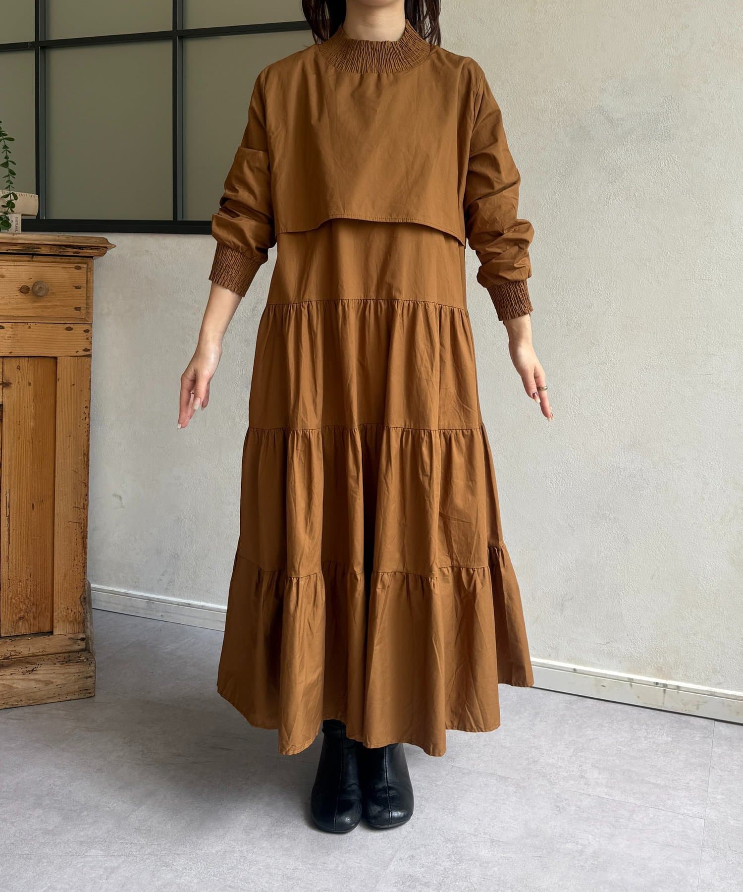 Thevon.(ゼヴォン) シャーリングネックティアードワンピース