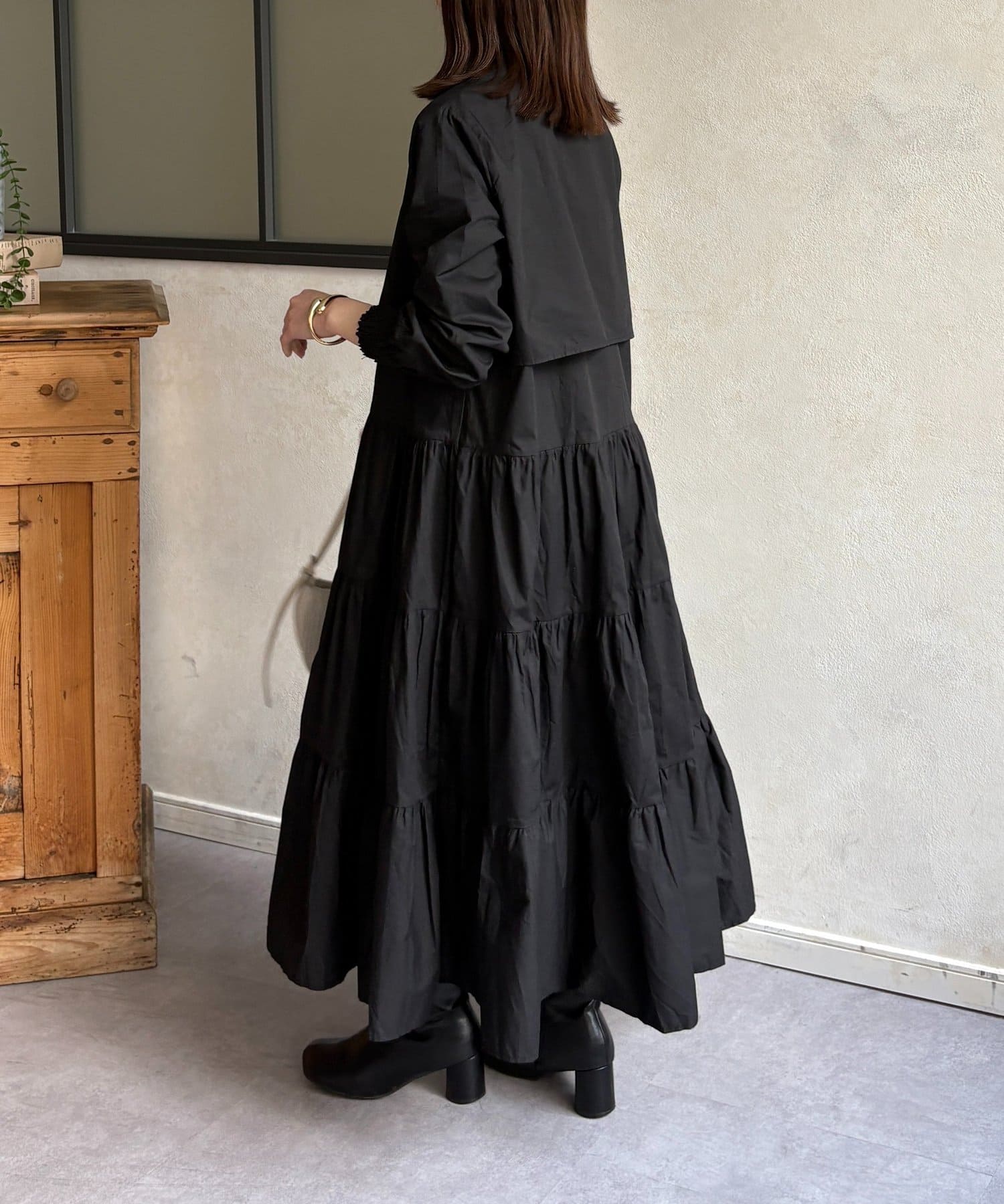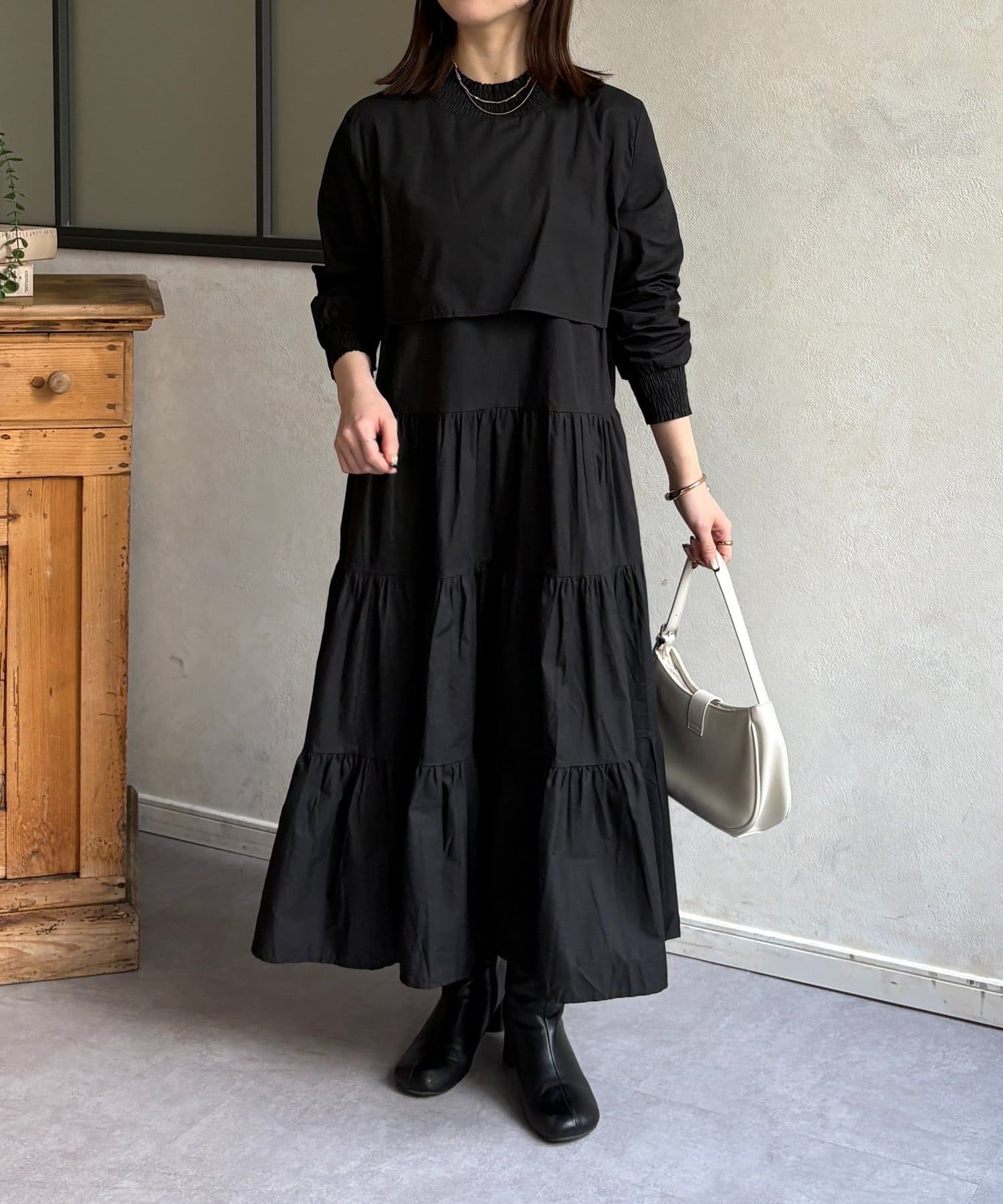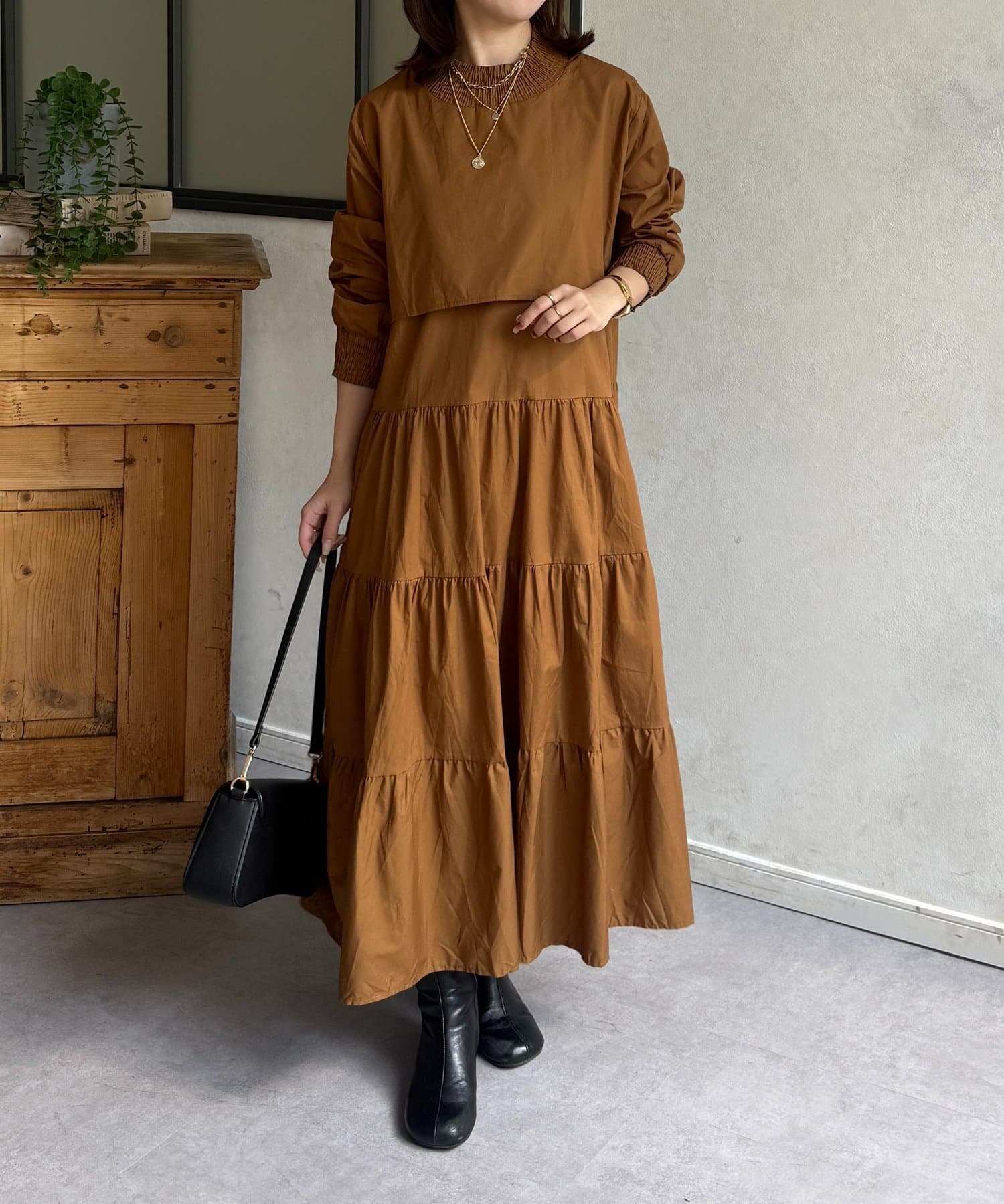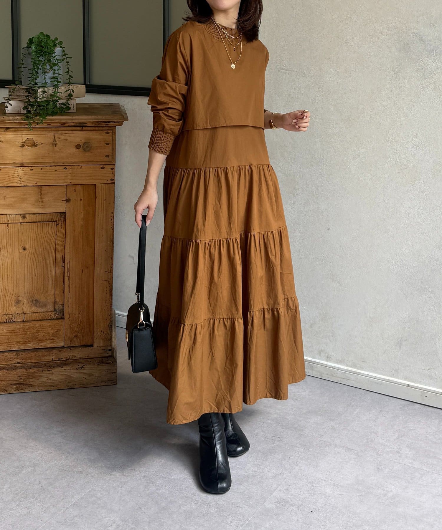 Thevon.(ゼヴォン) シャーリングネックティアードワンピース